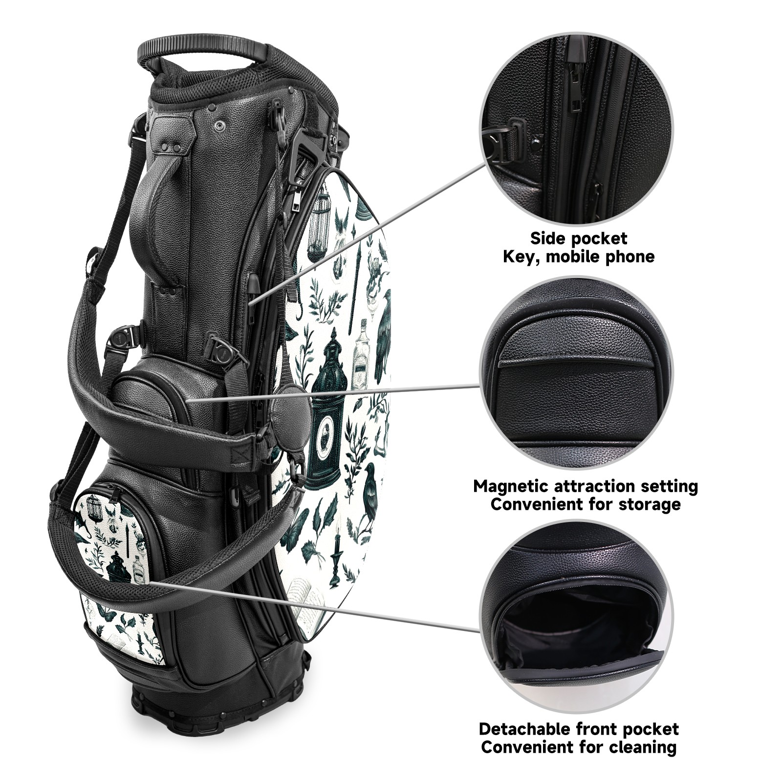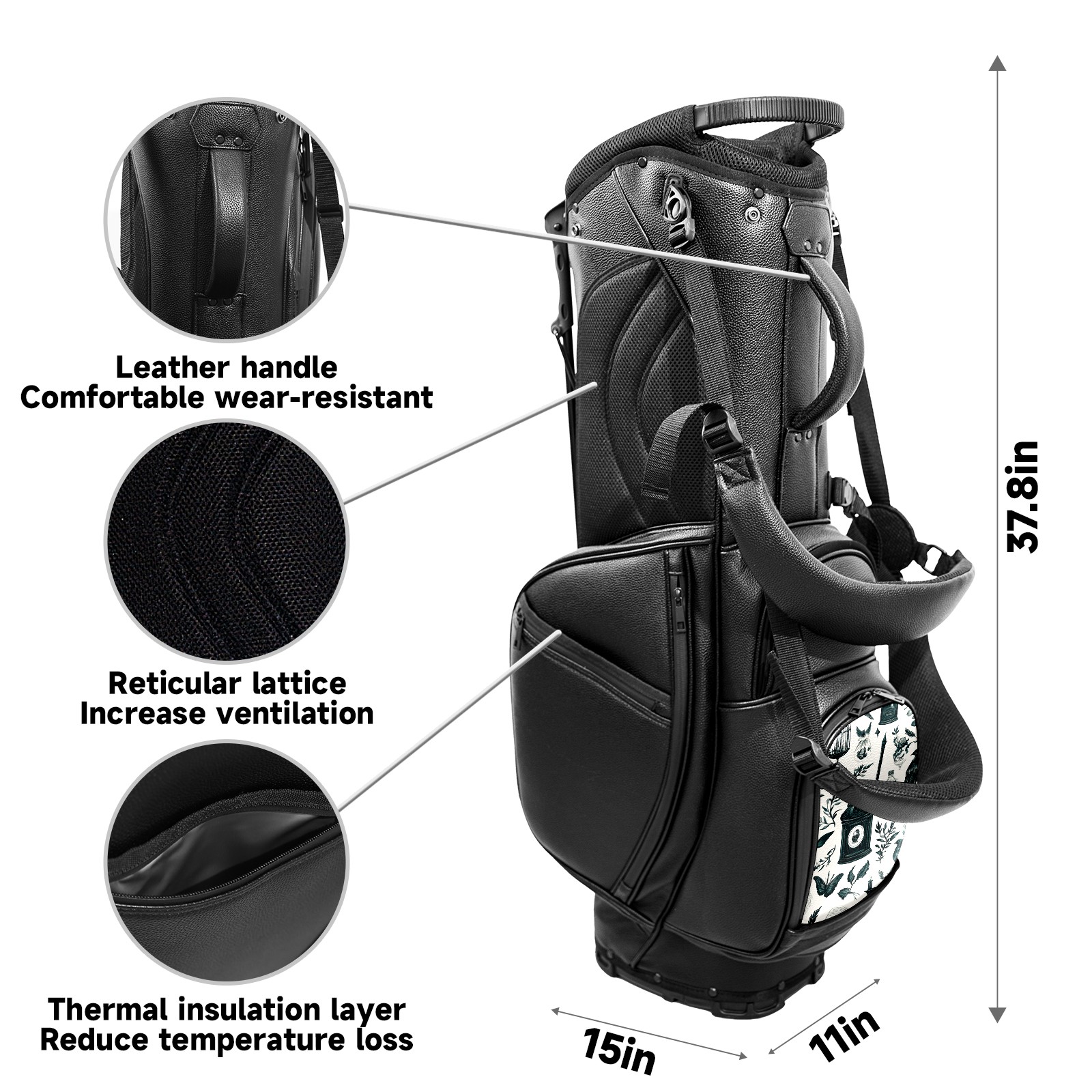 <p>This golf cart bag combines versatility with durability, providing comprehensive protection and convenient access for your clubs. The five-way top compartments provide strategic zoning for easily storing a variety of clubs and protecting them from impacts and wear. The PU fabric and sturdy plastic base combine premium quality with durability. The versatile storage system includes multiple zippered pockets and a separate cooler compartment for storing equipment, accessories, and drinks. The portable rear handle allows for easy transport. The ergonomic, padded shoulder straps are adjustable and removable to fit your shoulder and reduce weight. A built-in rain cover effectively keeps out moisture, ensuring your clubs stay dry and protected in wet weather. This is the ideal golf bag for your golfing adventure.<br></p>