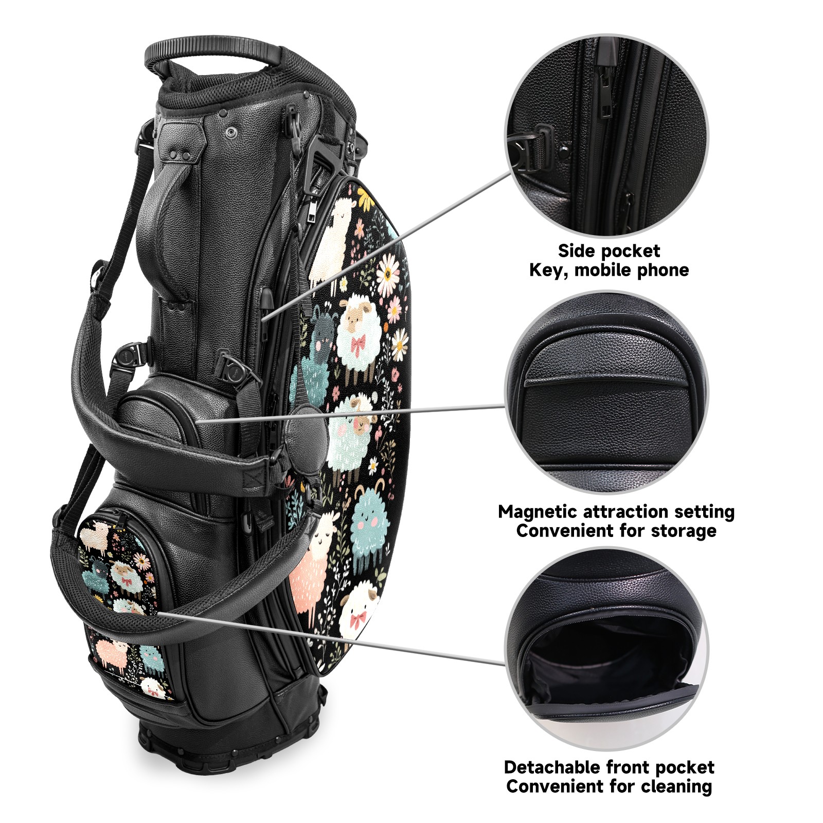 Lightweight Golf Stand Bag - 5-Way Top Divider, Golf Club Carry Bag with Adjustable Double Shoulder Straps, Zipper Storage Pockets, Rain Cover, Ideal for Golfers Sheep Pattern