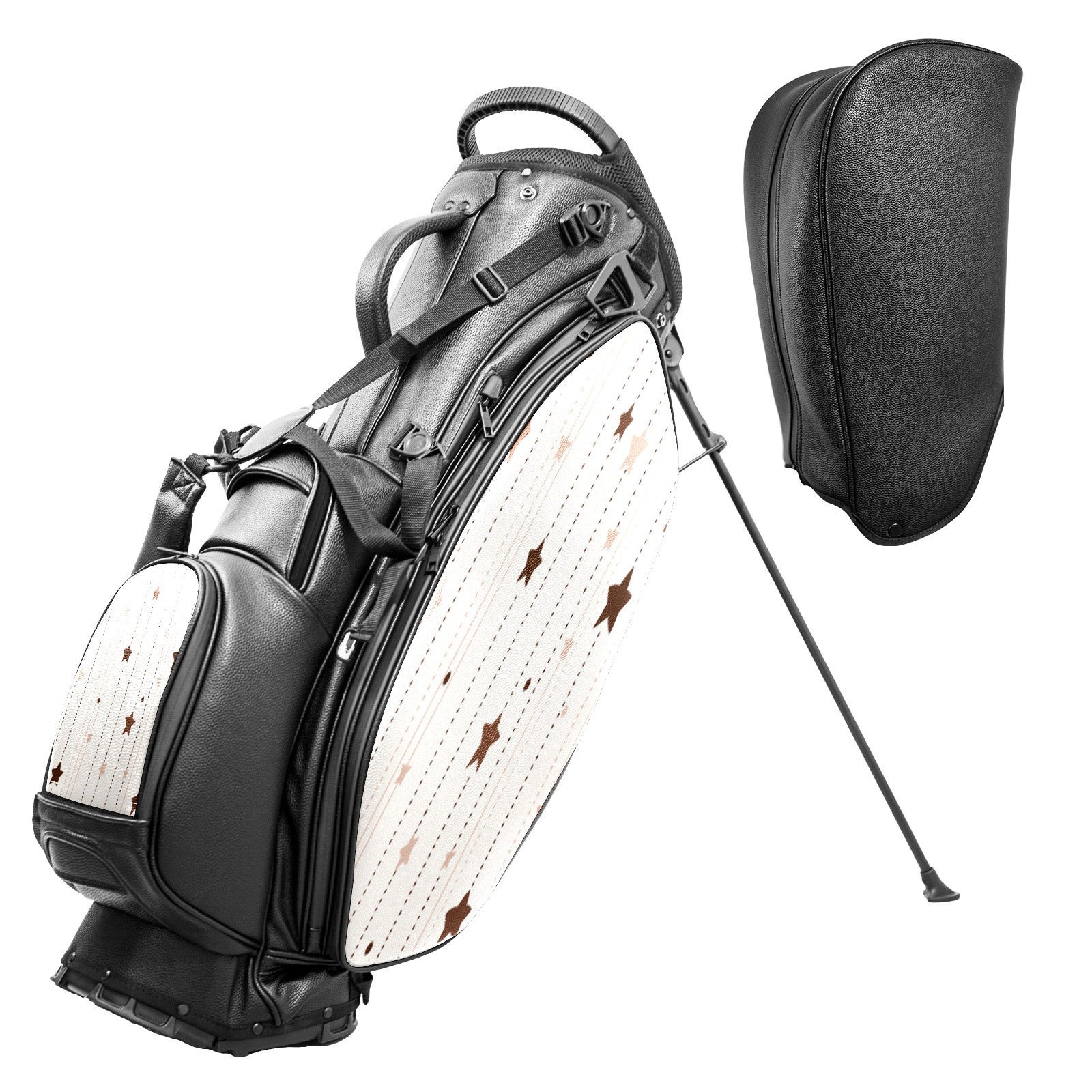 Lightweight Golf Stand Bag - 5-Way Top Divider, Golf Club Carry Bag with Adjustable Double Shoulder Straps, Zipper Storage Pockets, Rain Cover, Ideal for Golfers Brown Star Pattern