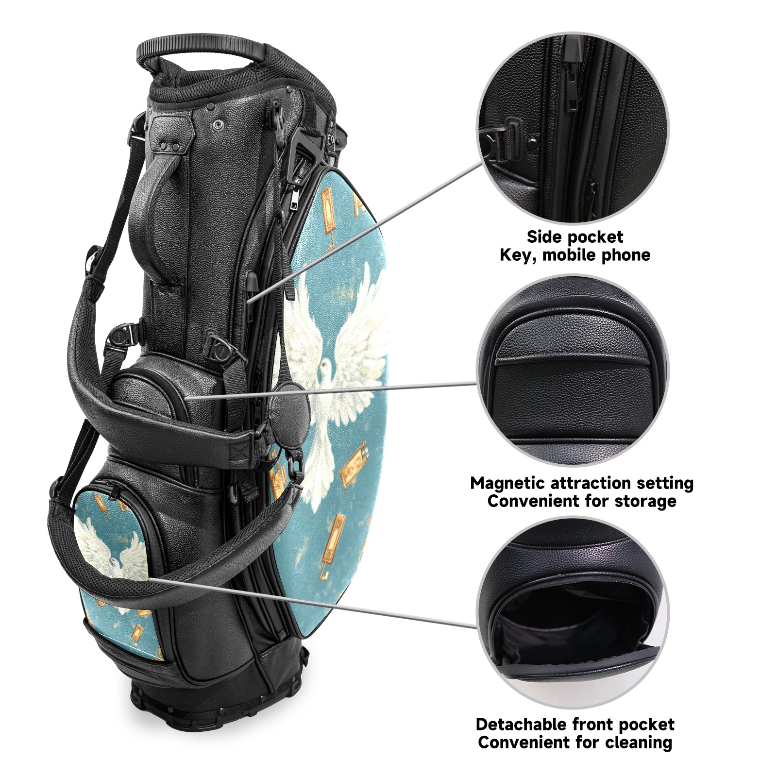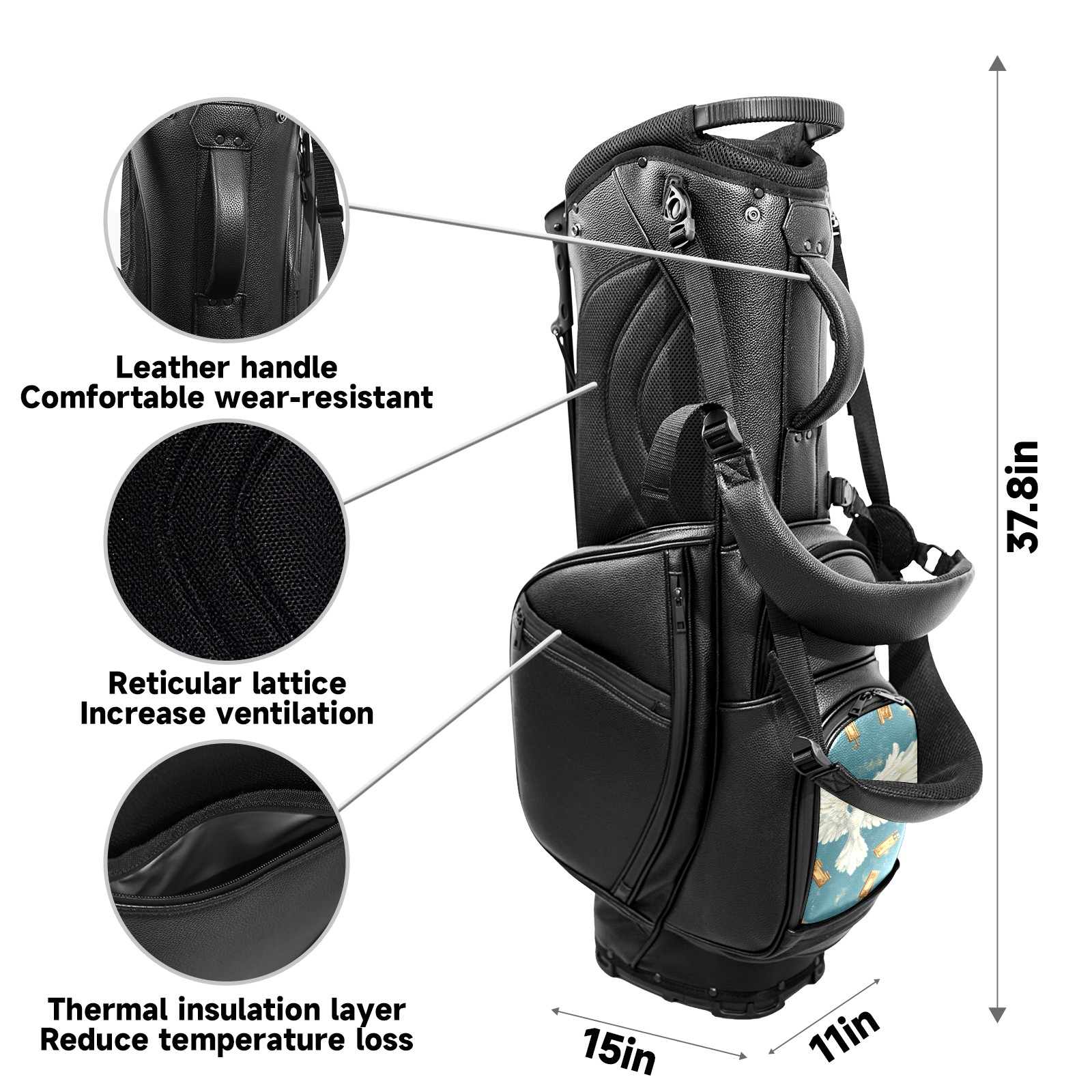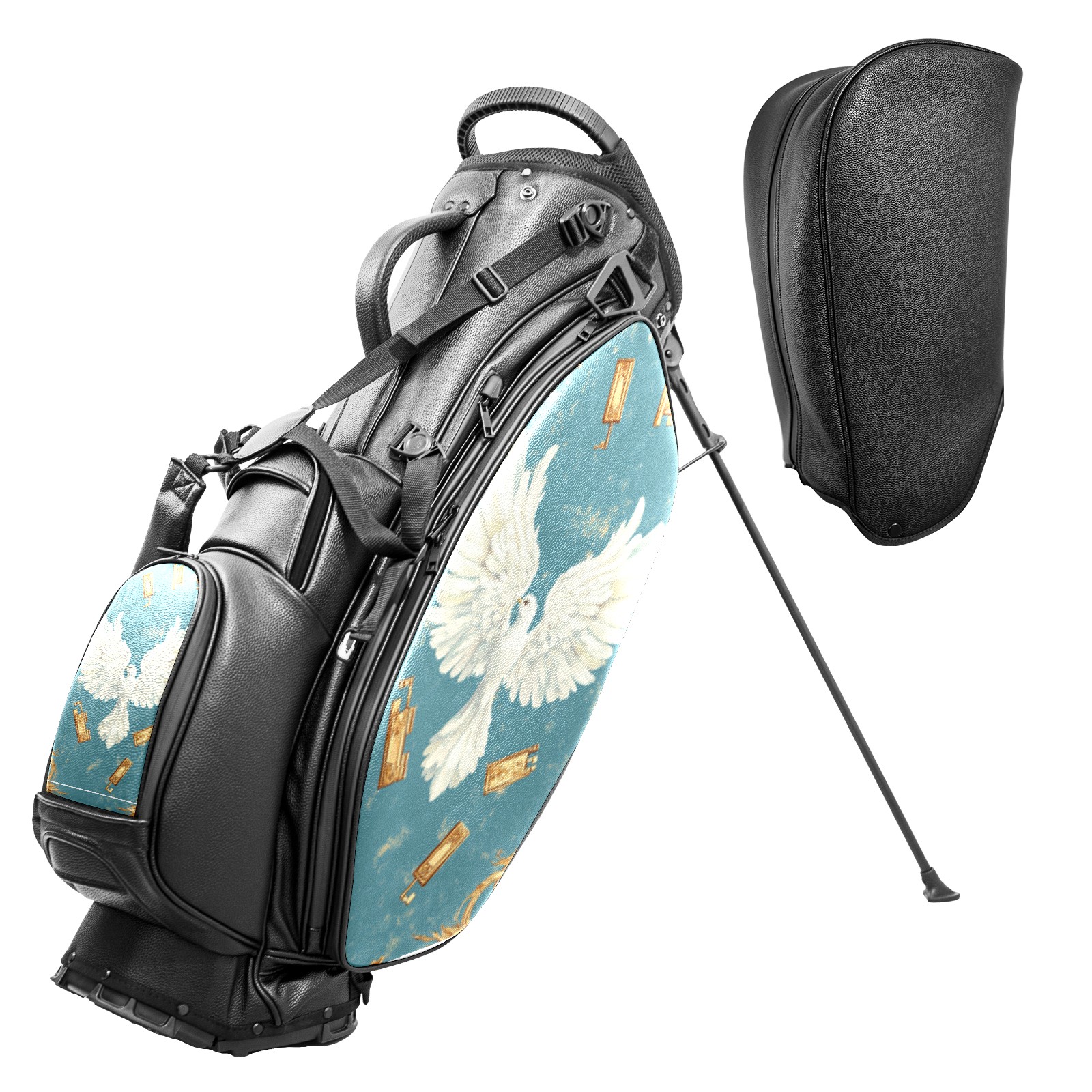 Lightweight Golf Stand Bag - 5-Way Top Divider, Golf Club Carry Bag with Adjustable Double Shoulder Straps, Zipper Storage Pockets, Rain Cover, Ideal for Golfers White Flying Bird Pattern