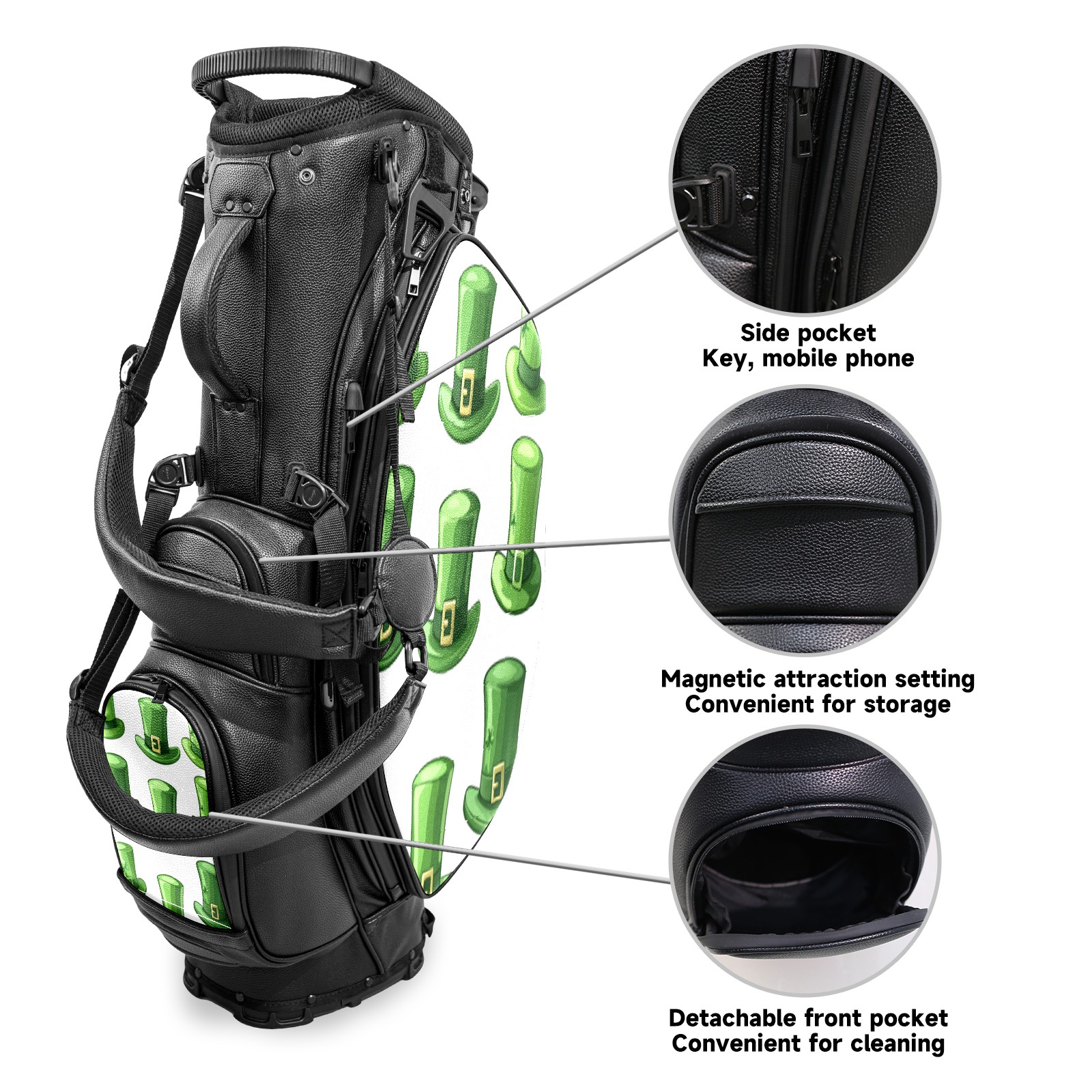 Lightweight Golf Stand Bag - 5-Way Top Divider, Golf Club Carry Bag with Adjustable Double Shoulder Straps, Zipper Storage Pockets, Rain Cover, Ideal for Golfers Green Magic Hat Pattern