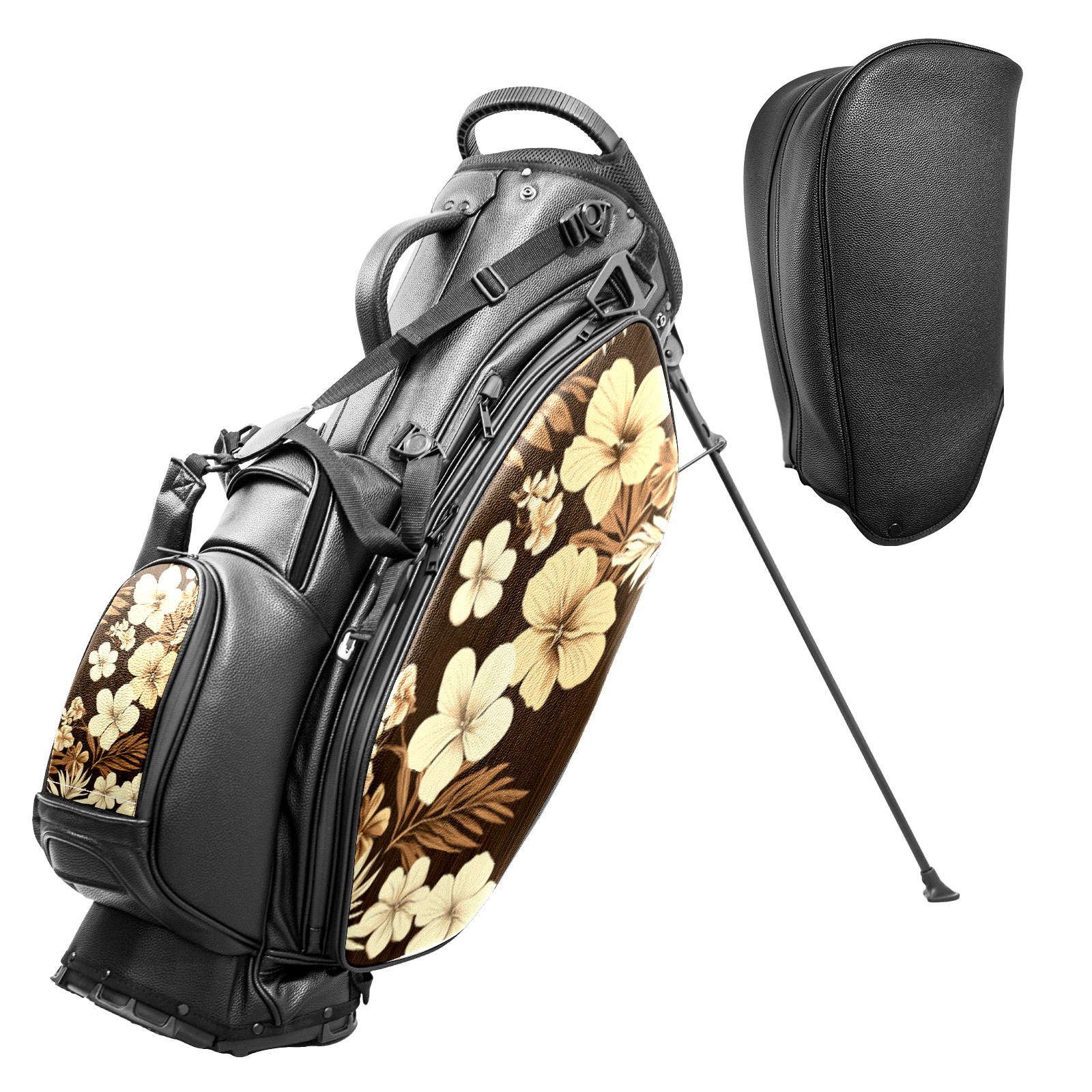 Lightweight Golf Stand Bag - 5-Way Top Divider, Golf Club Carry Bag with Adjustable Double Shoulder Straps, Zipper Storage Pockets, Rain Cover, Ideal for Golfers Brown Floral Pattern