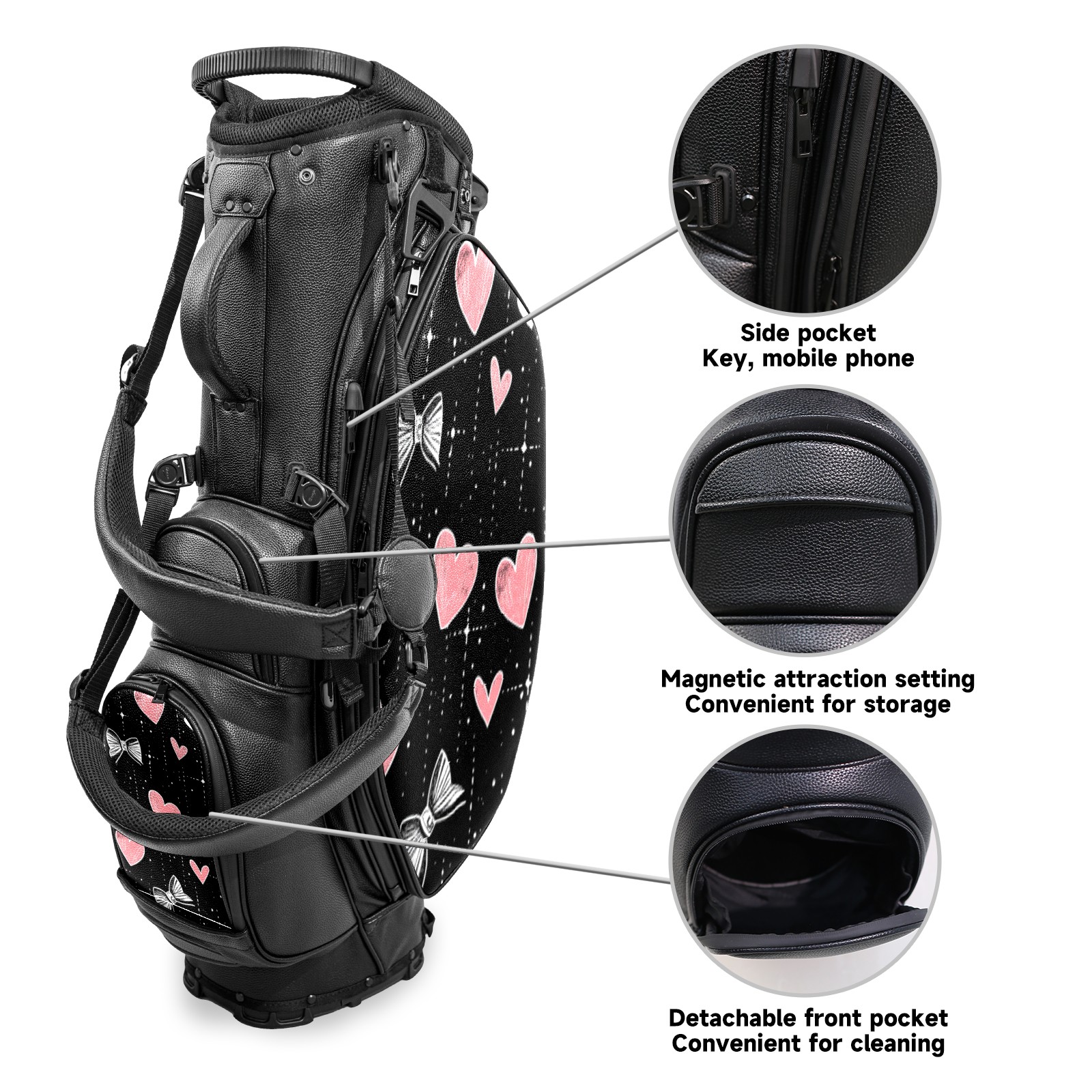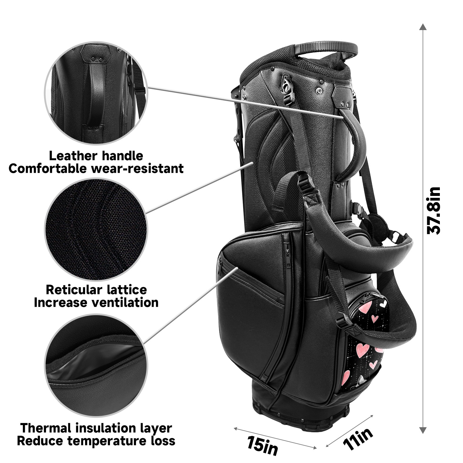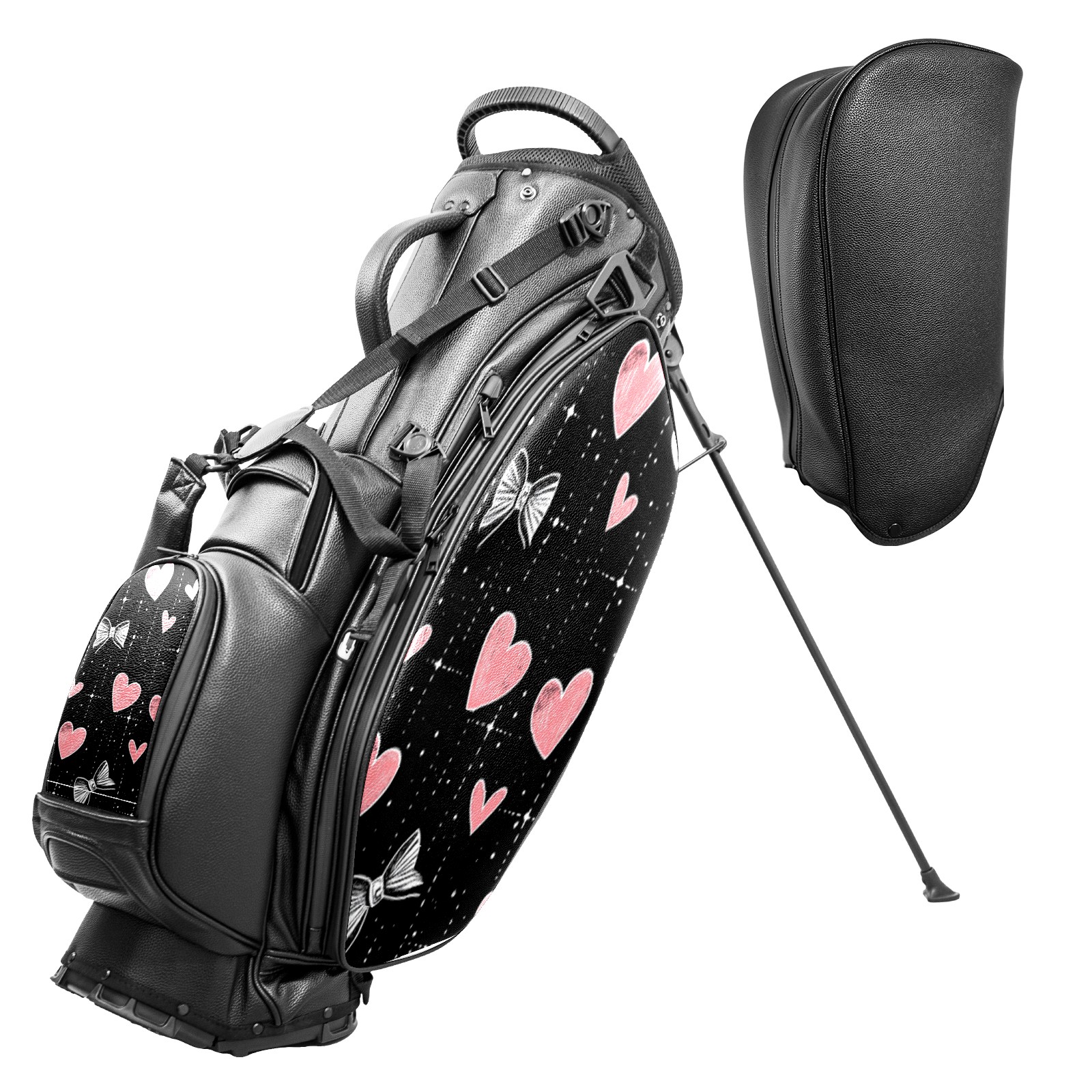 Lightweight Golf Stand Bag - 5-Way Top Divider, Golf Club Carry Bag with Adjustable Double Shoulder Straps, Zipper Storage Pockets, Rain Cover, Ideal for Golfers Black Pink Heart Pattern