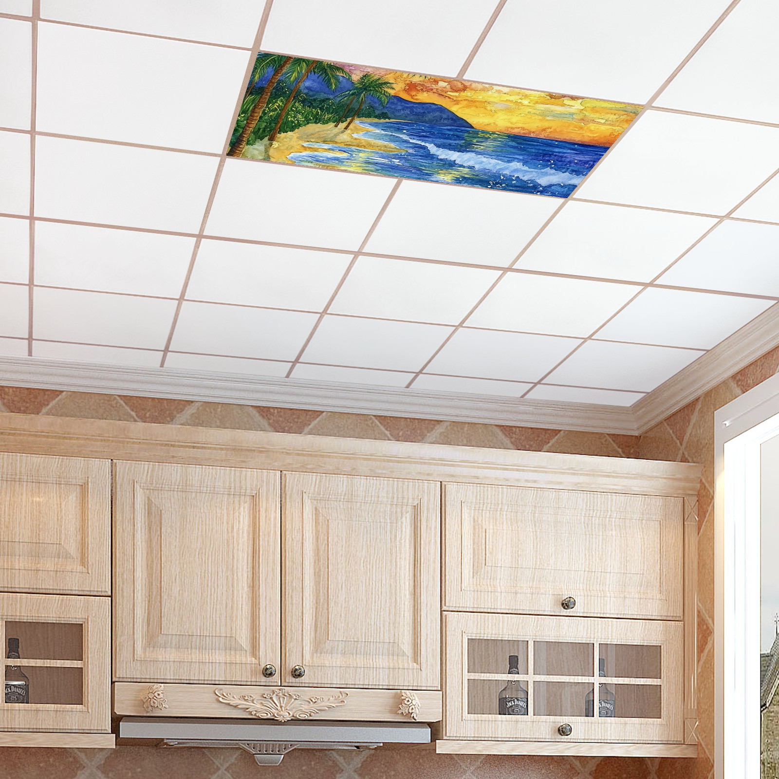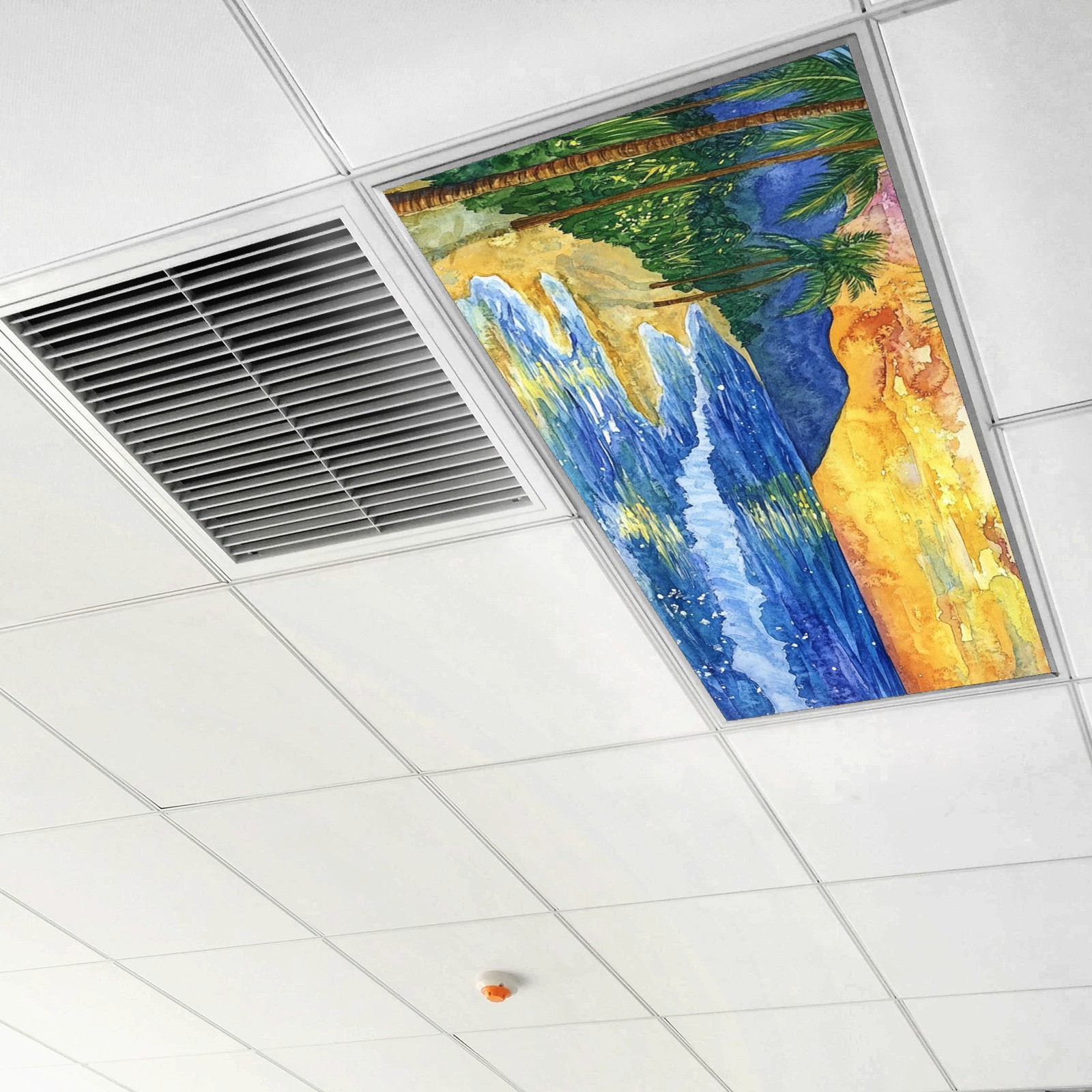 4 Pack Fluorescent Light Covers Green Blue Stained Glass Floral Pattern Light Filters 2ft x 4ft Office Classroom Hospital Home Kindergarten Clinics Decorations Drop Ceiling Light Covering Insert--Reduce Glare Flicker