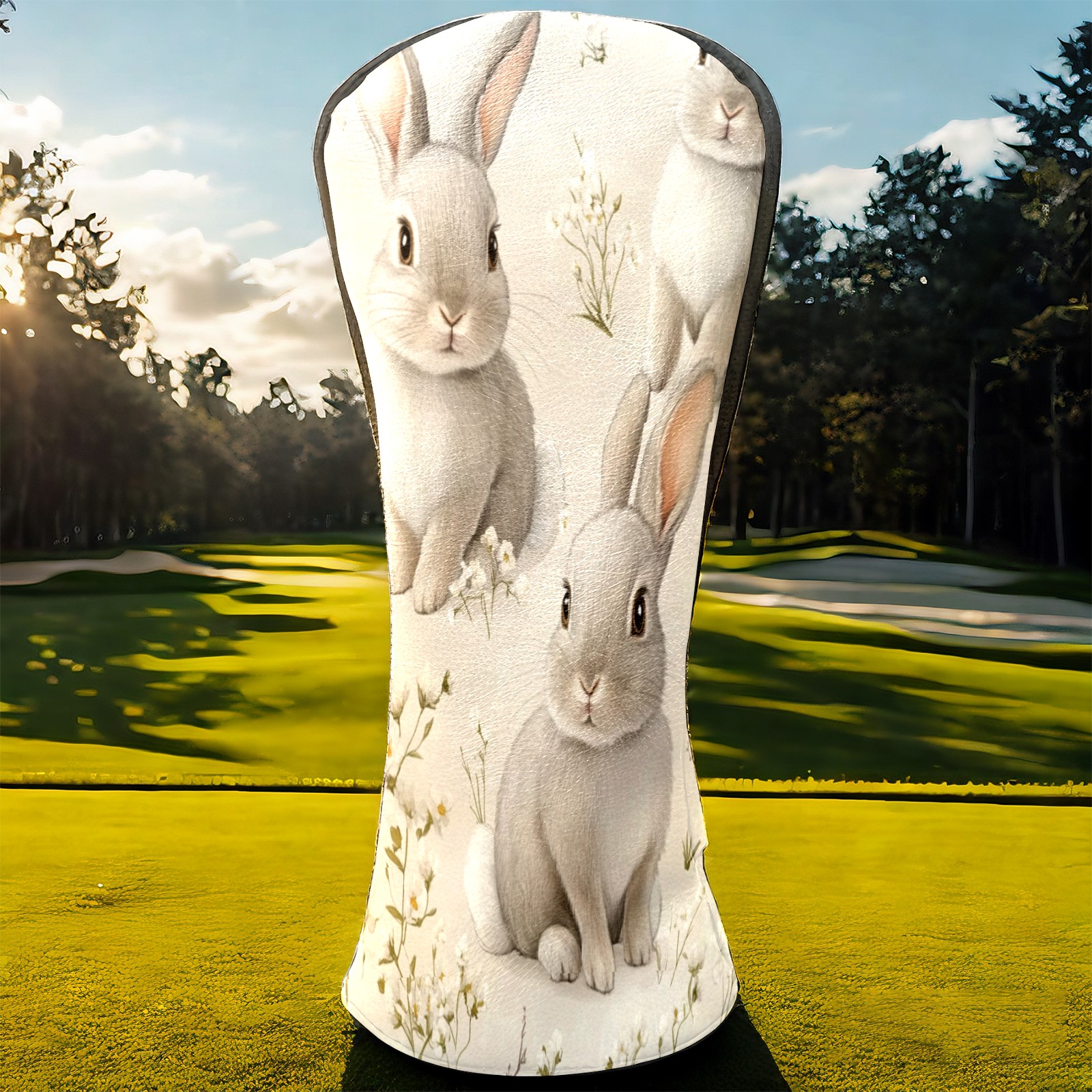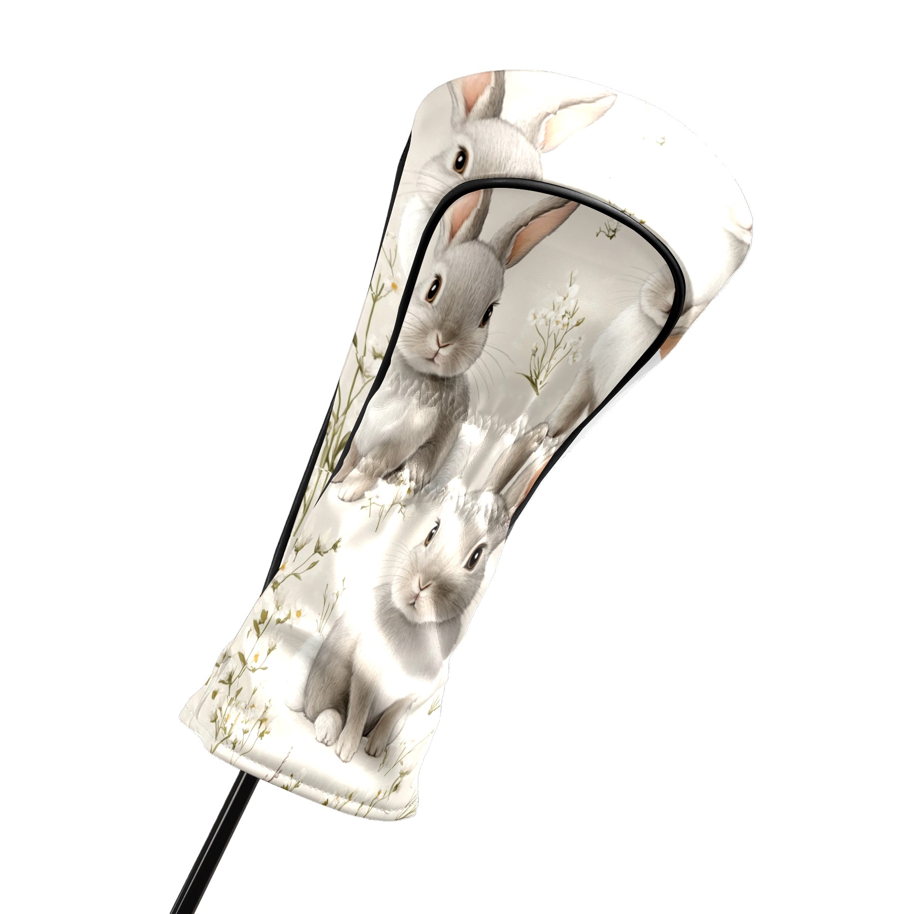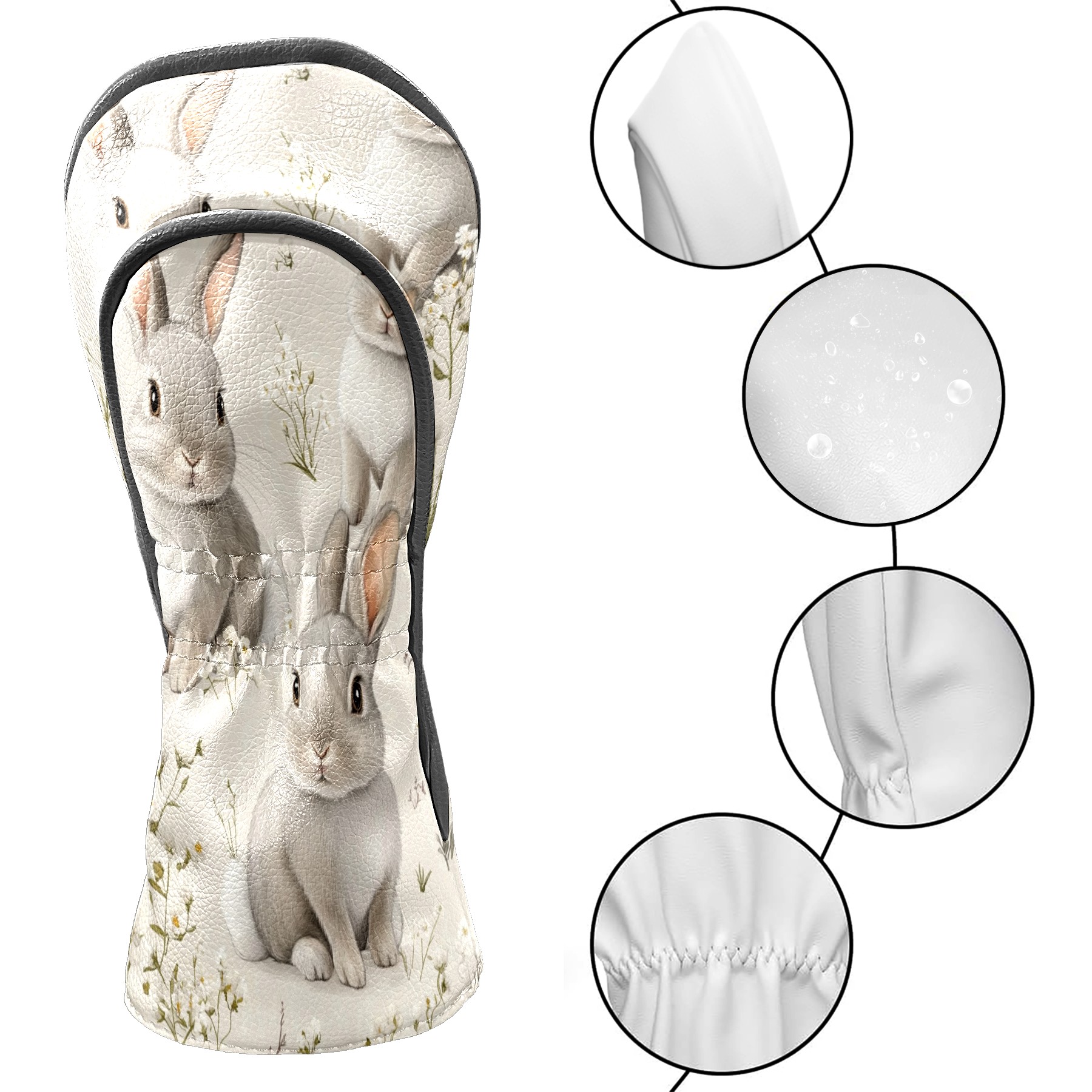 Golf Club Covers PU Leather Waterproof,Golf Club Head Covers for Fairway Woods and Hybrids Cute Gray Rabbit Unisex Suitable for Most Brands