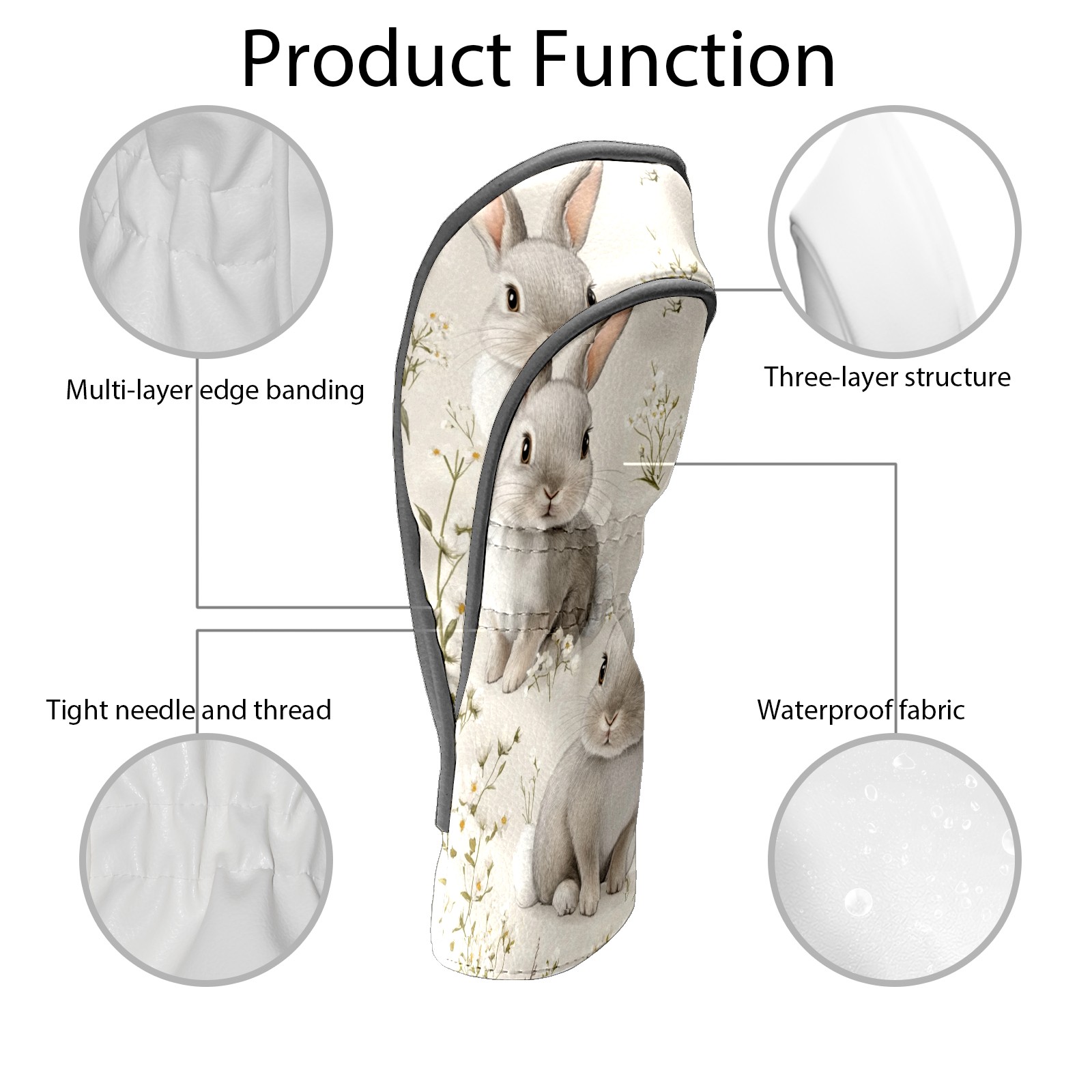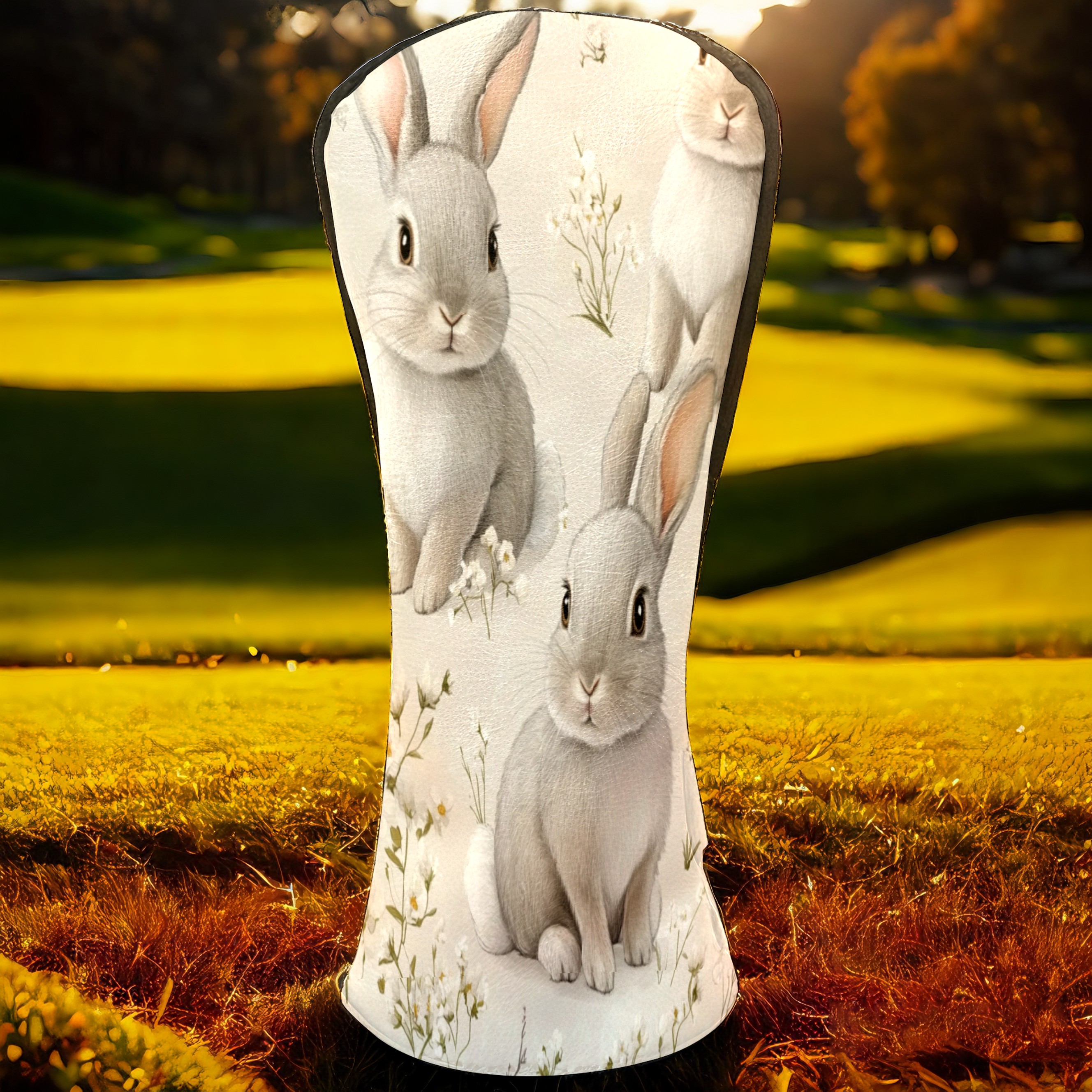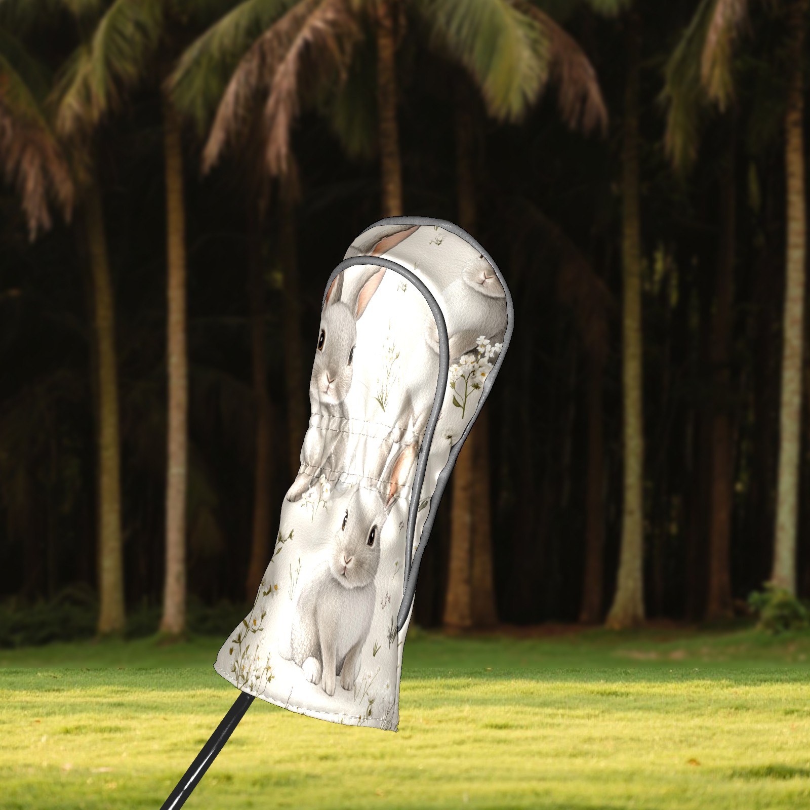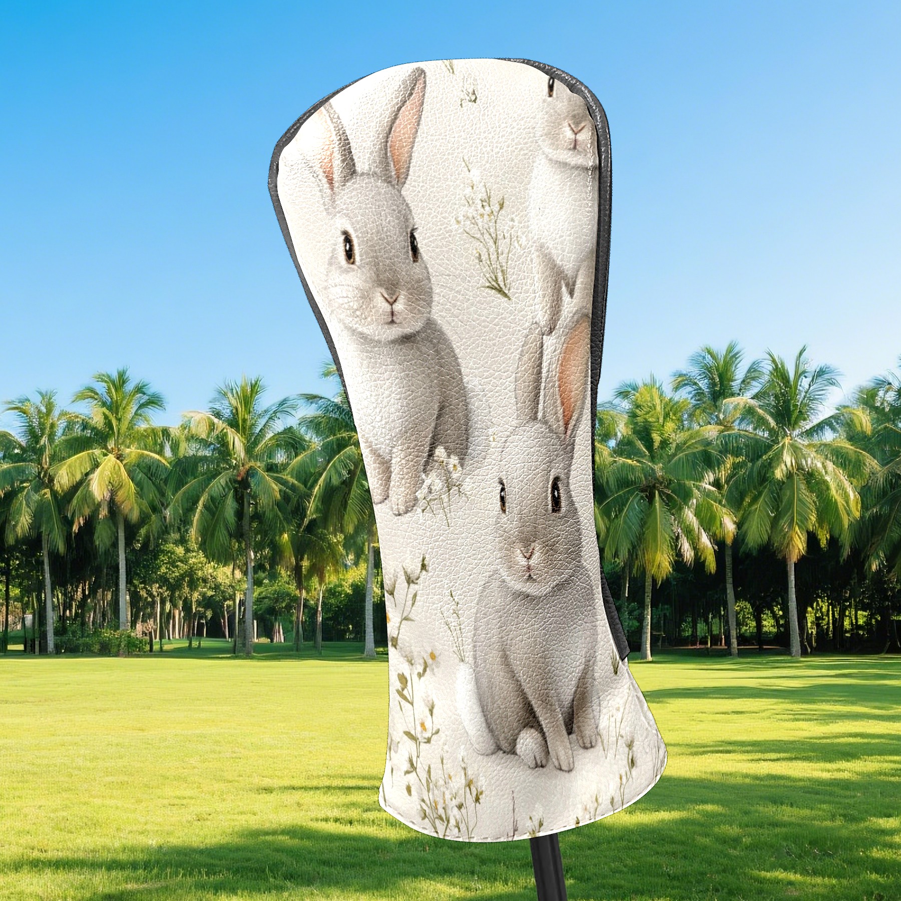Golf Club Covers PU Leather Waterproof,Golf Club Head Covers for Fairway Woods and Hybrids Cute Gray Rabbit Unisex Suitable for Most Brands