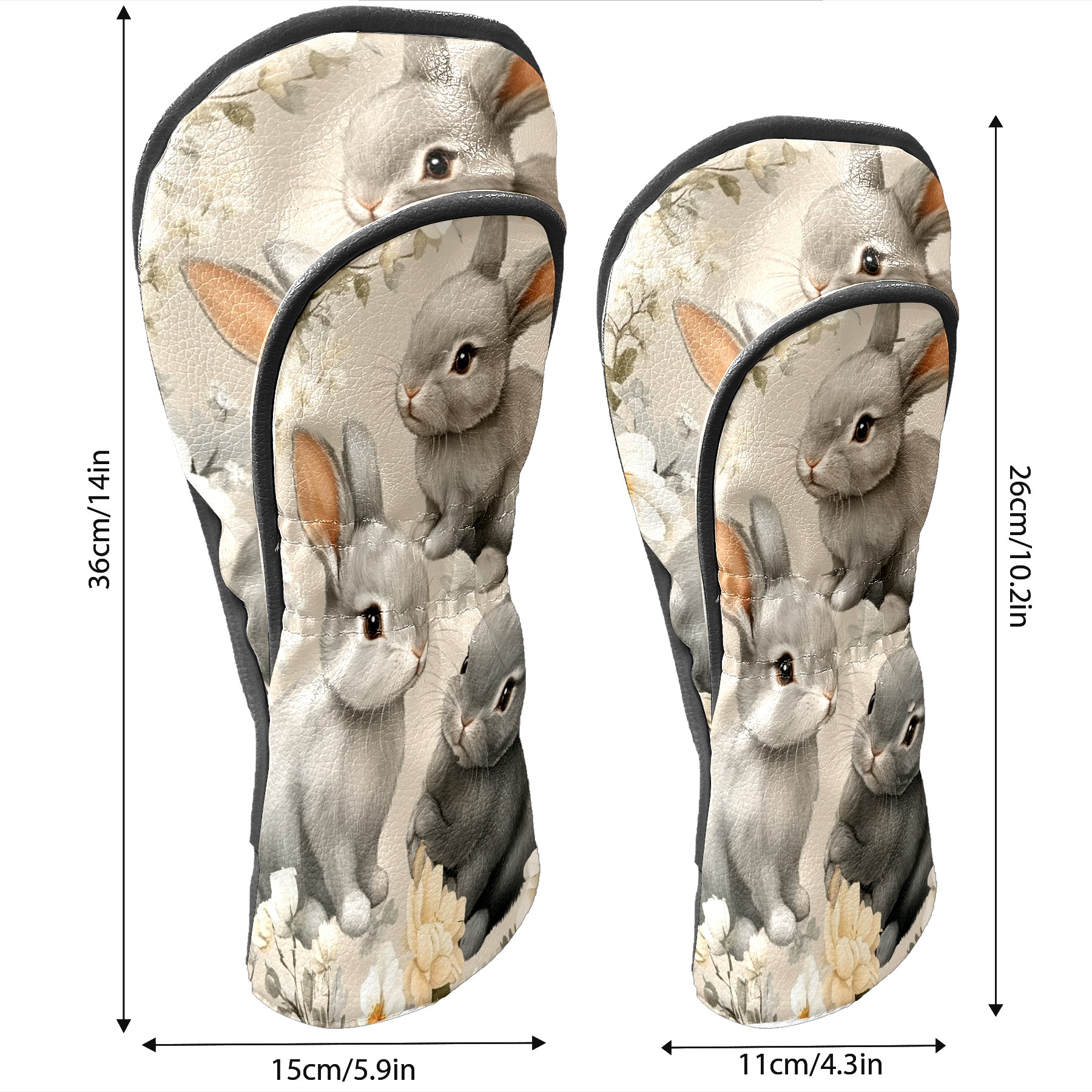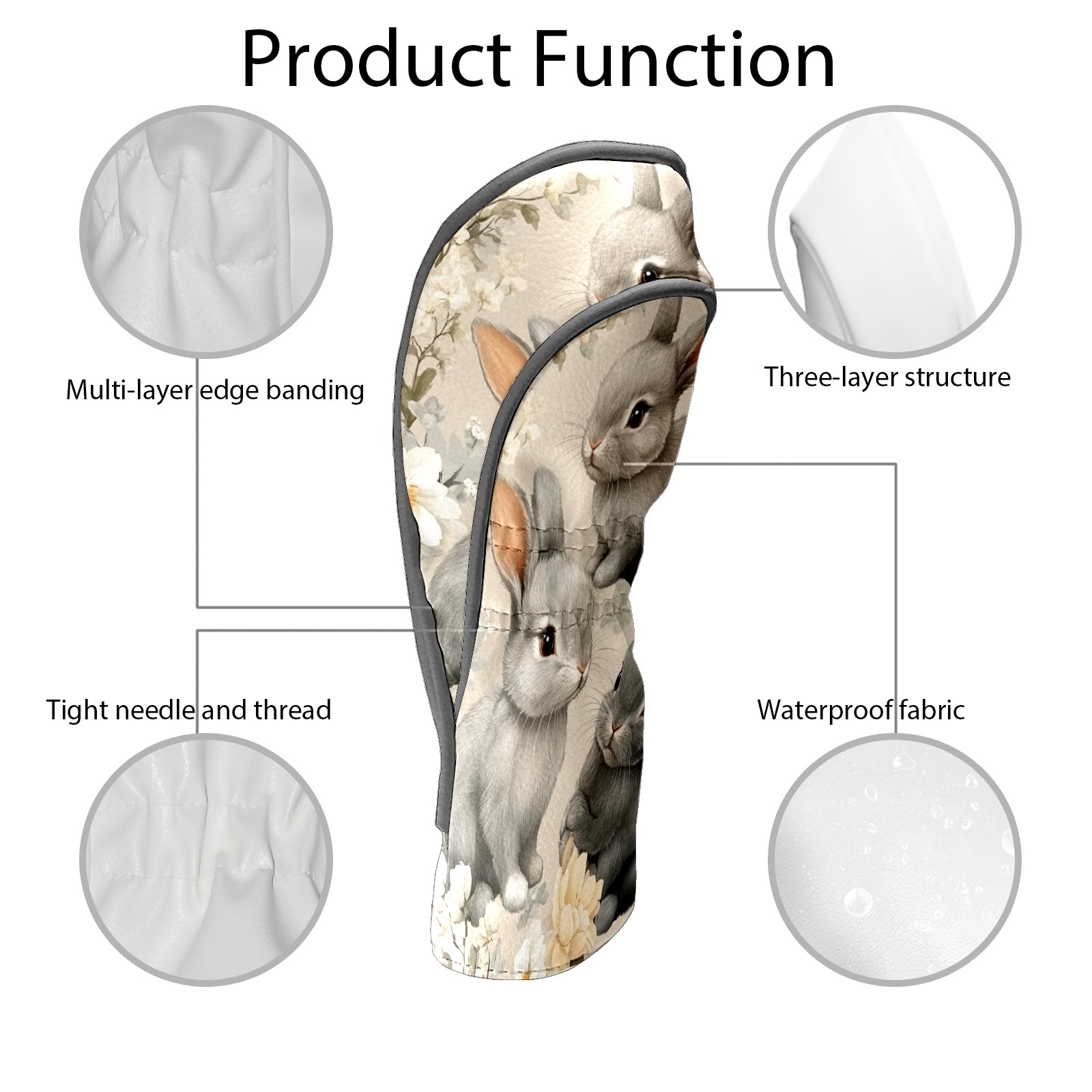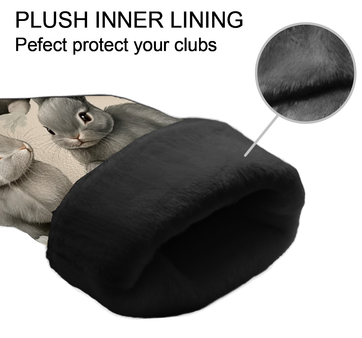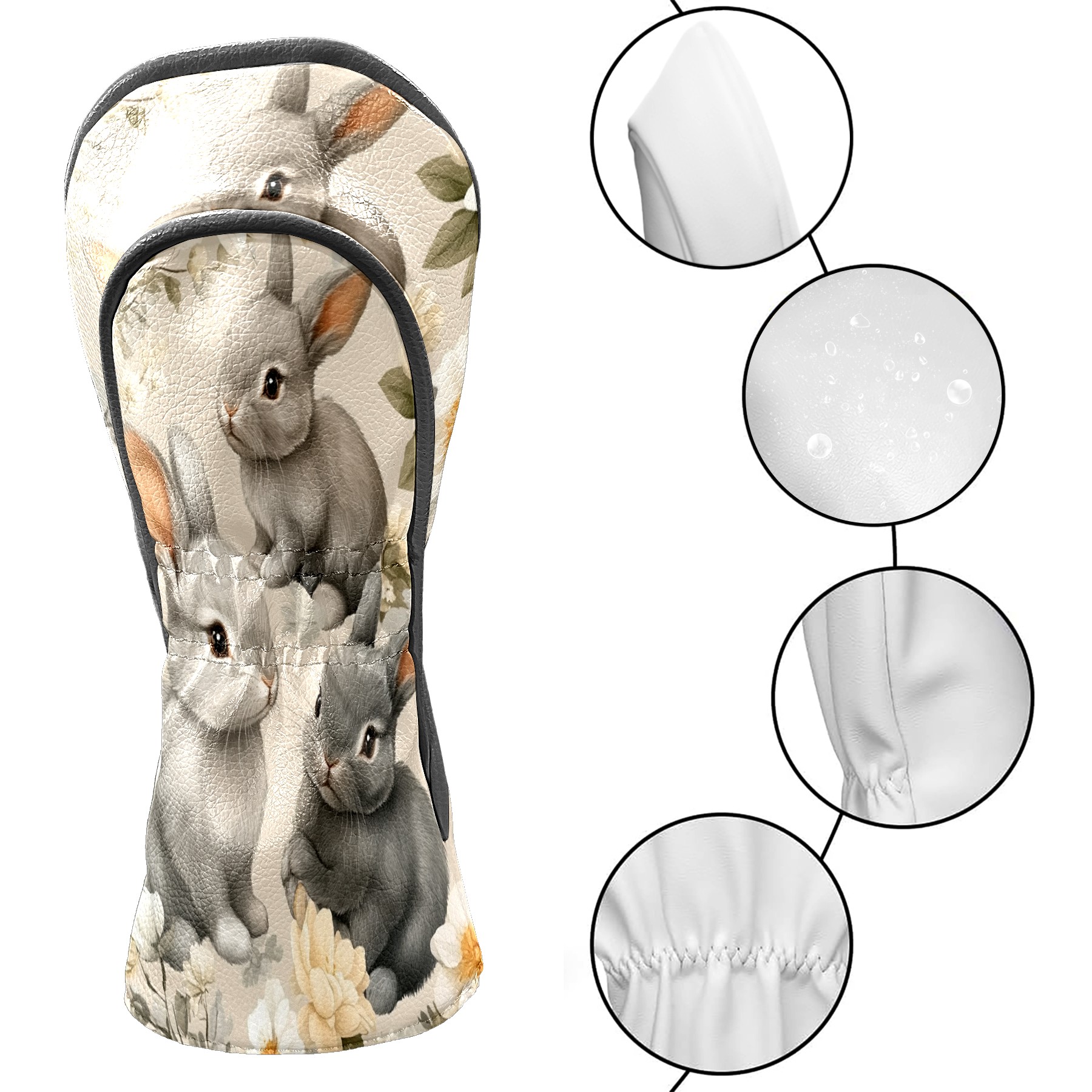 Golf Club Covers PU Leather Waterproof,Golf Club Head Covers for Fairway Woods and Hybrids Gray Rabbit Unisex Suitable for Most Brands