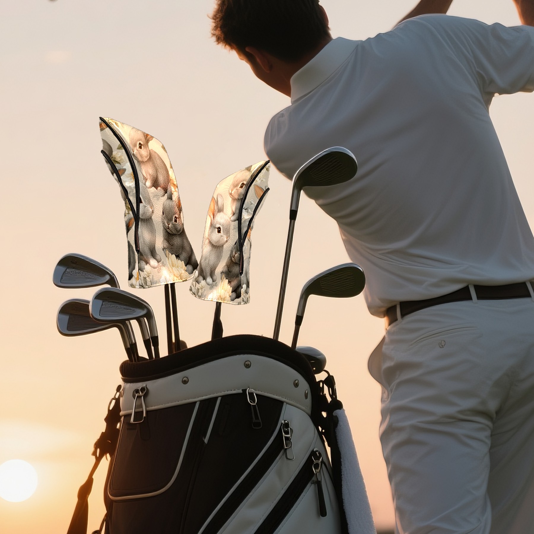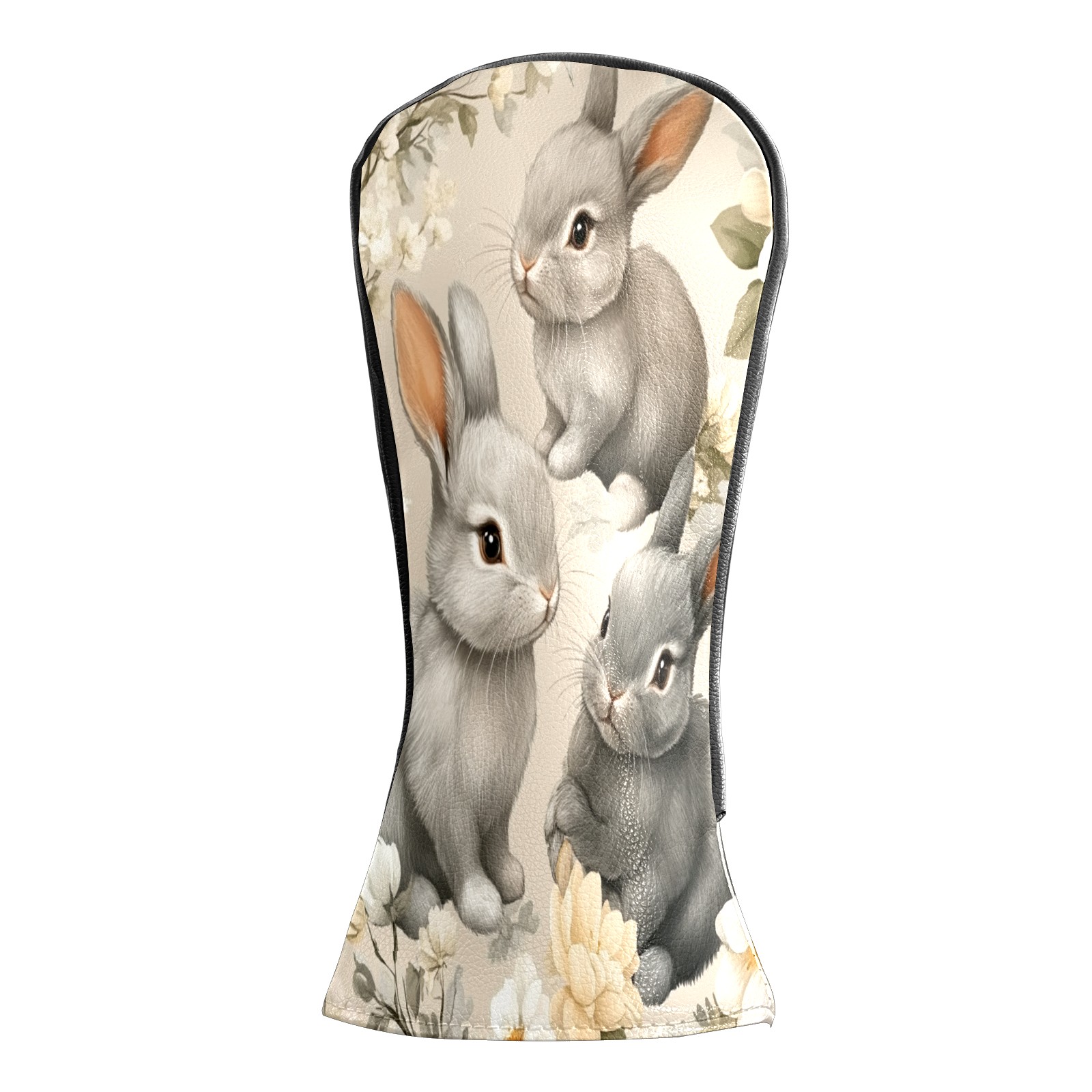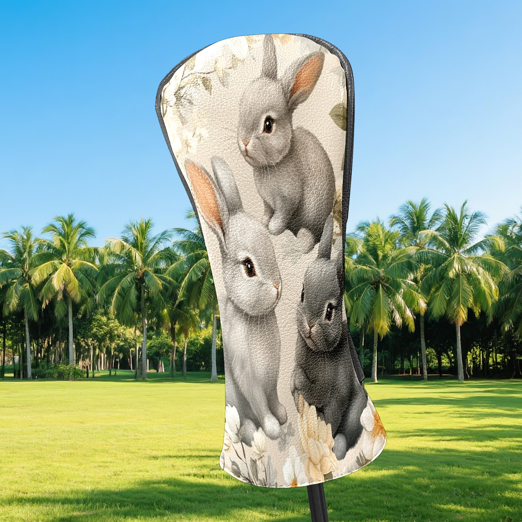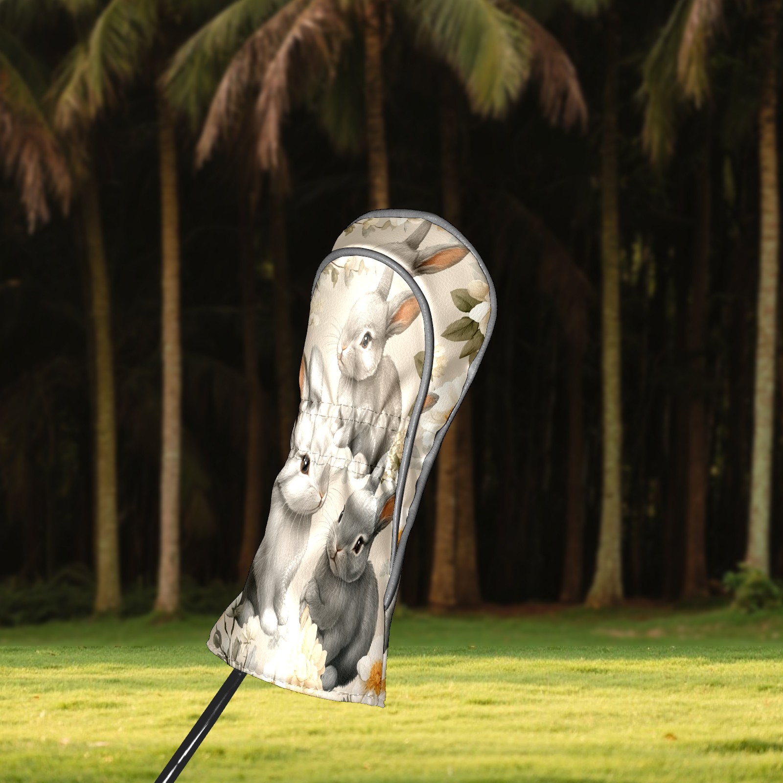 Golf Club Covers PU Leather Waterproof,Golf Club Head Covers for Fairway Woods and Hybrids Gray Rabbit Unisex Suitable for Most Brands
