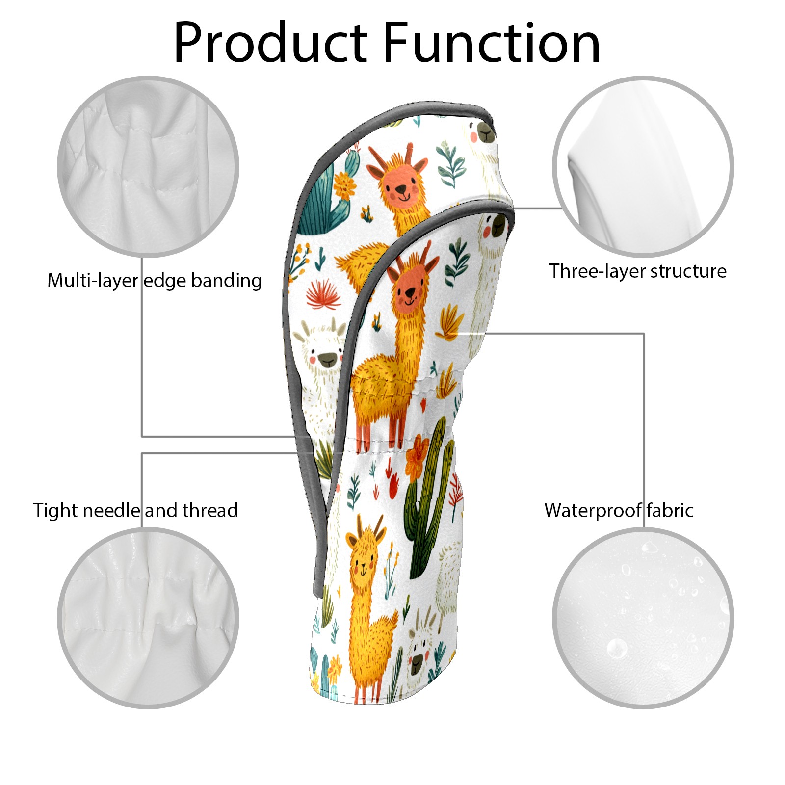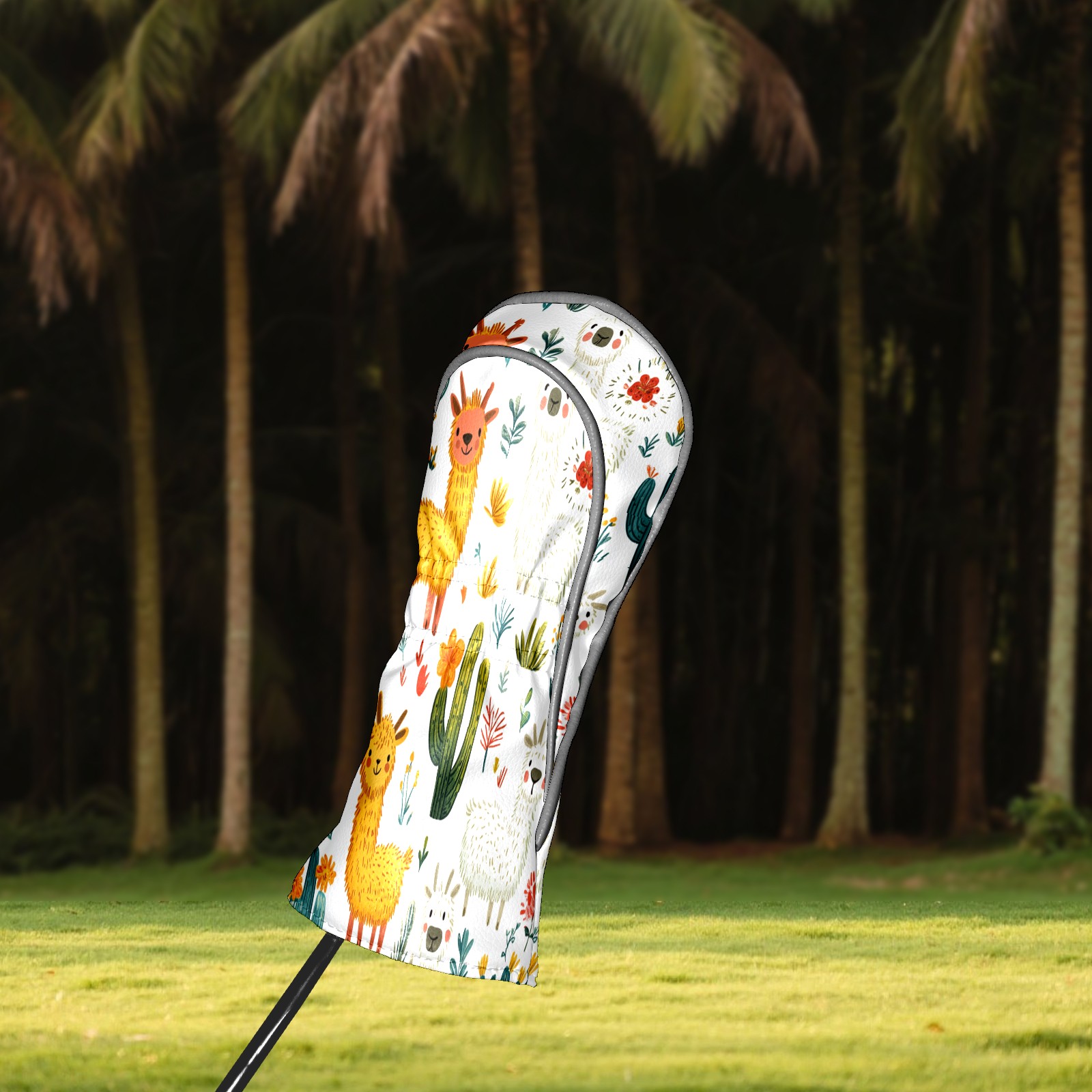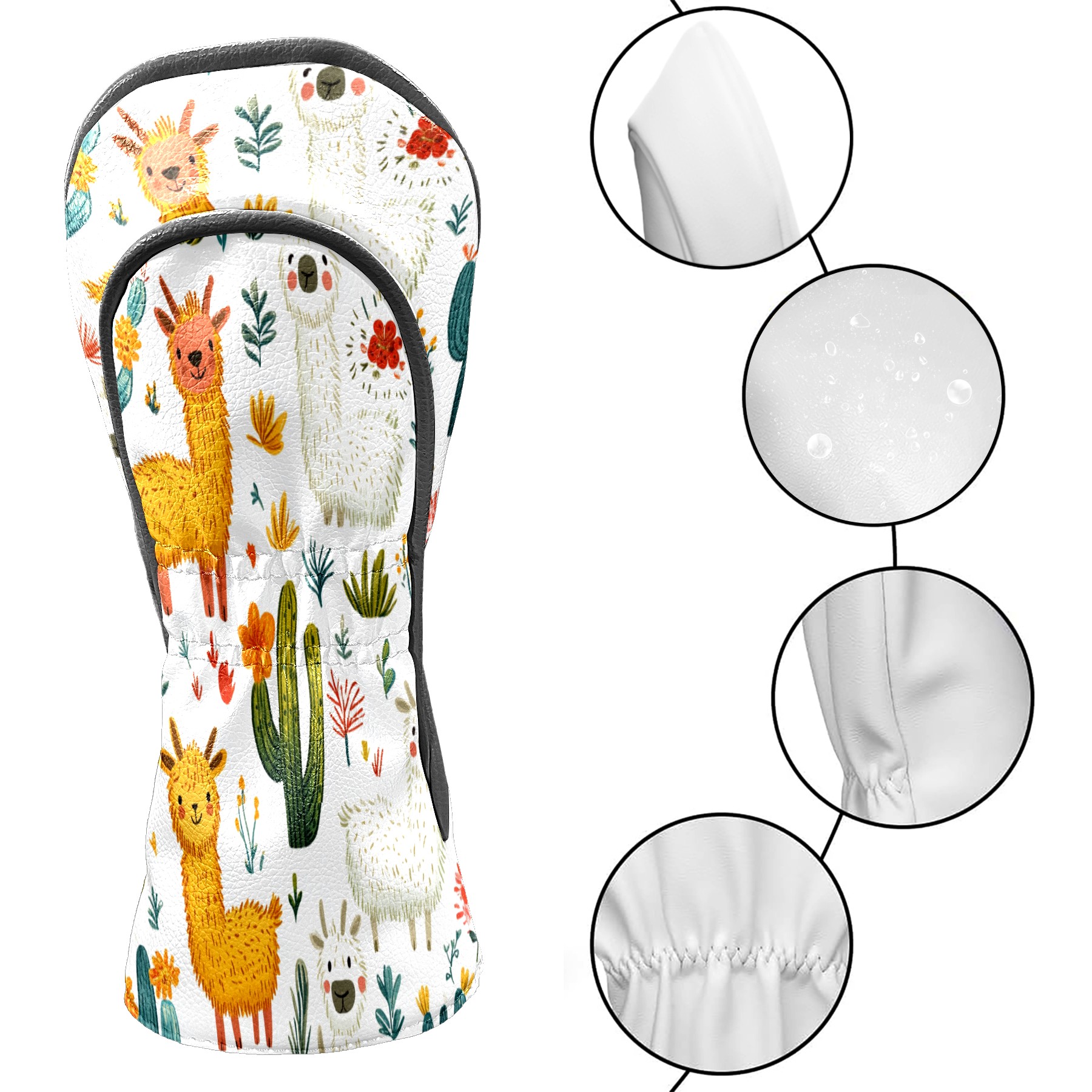 Golf Club Covers PU Leather Waterproof,Golf Club Head Covers for Fairway Woods and Hybrids Alpaca Cactus Unisex Suitable for Most Brands