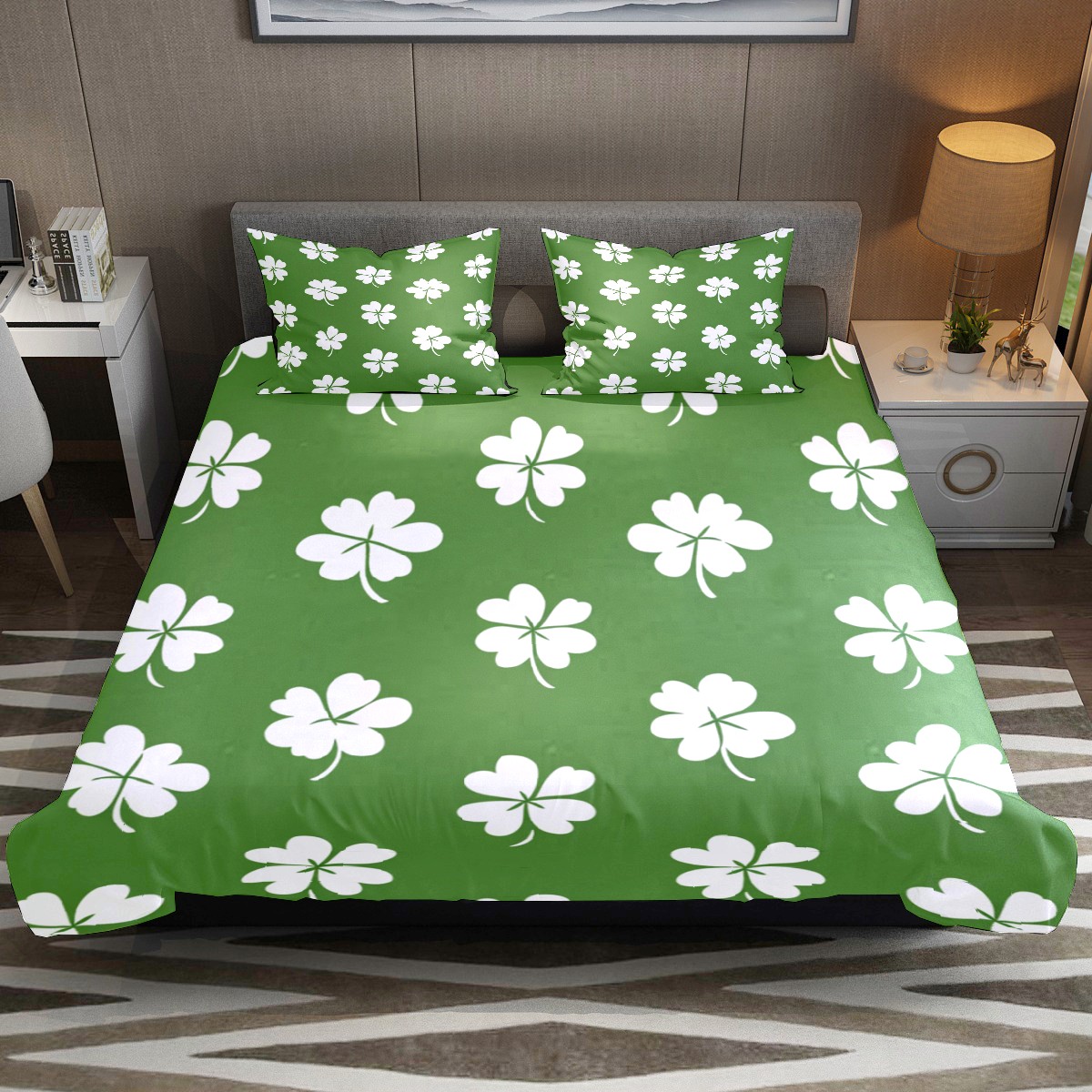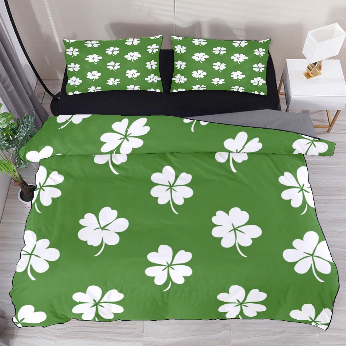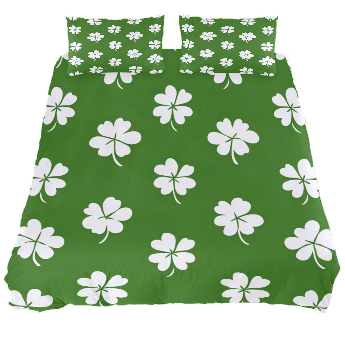 HELVOON 3-Piece Bed Set - Soft Microfiber Bedding (1 Duvet Cover + 2 Pillowcases), Vibrant Heat-Transfer Print, Fade & Pilling Resistant, Qu- ee-n/King Size White Clover