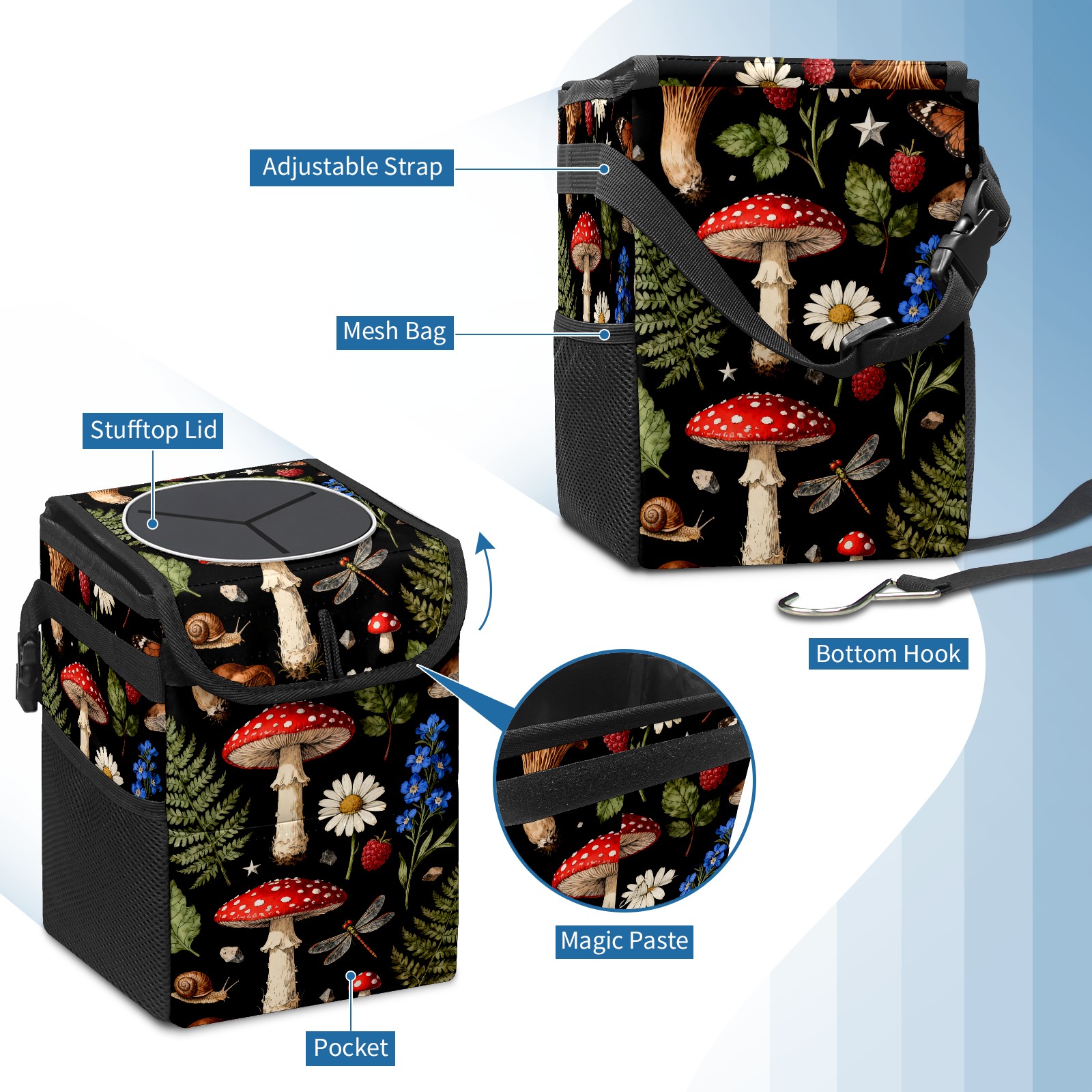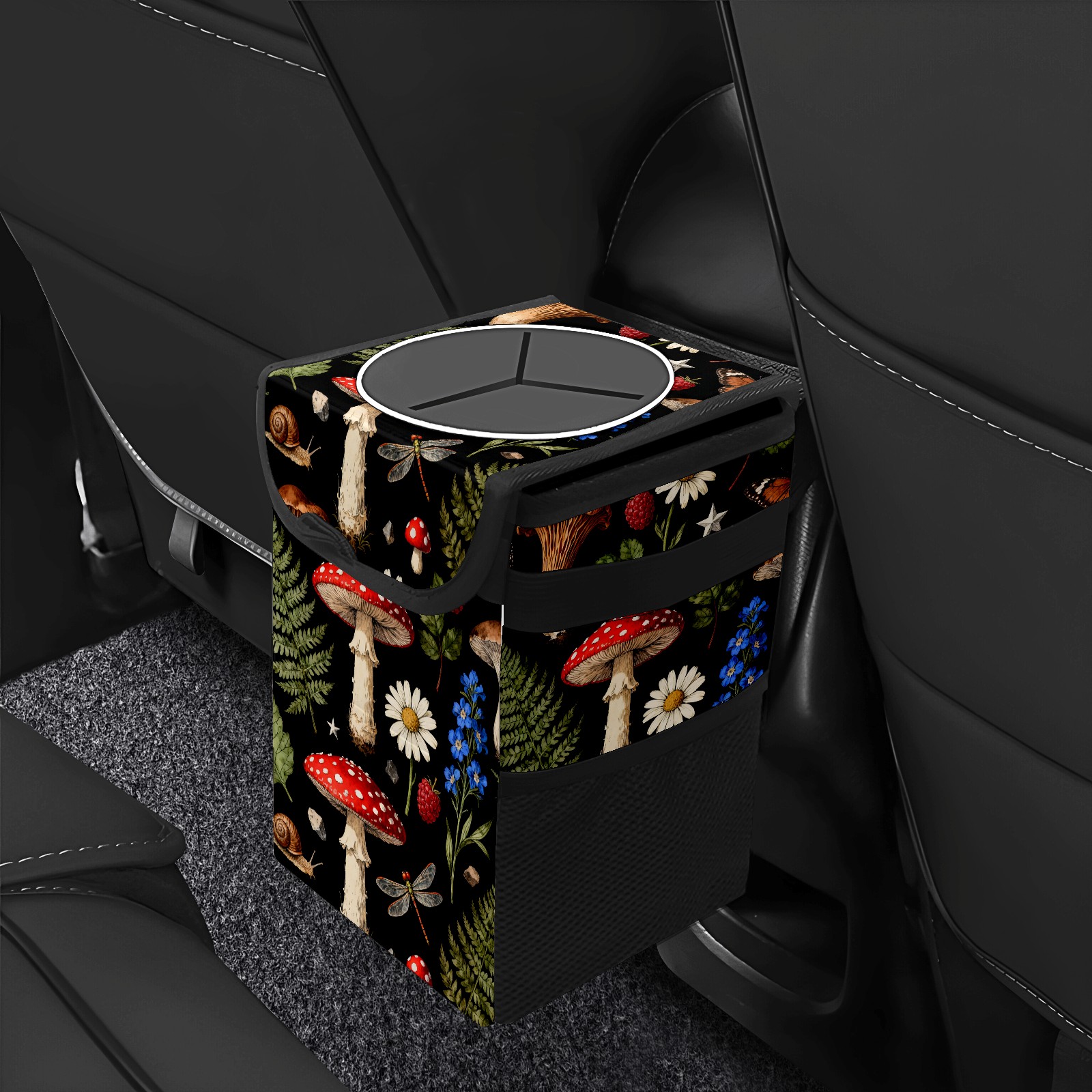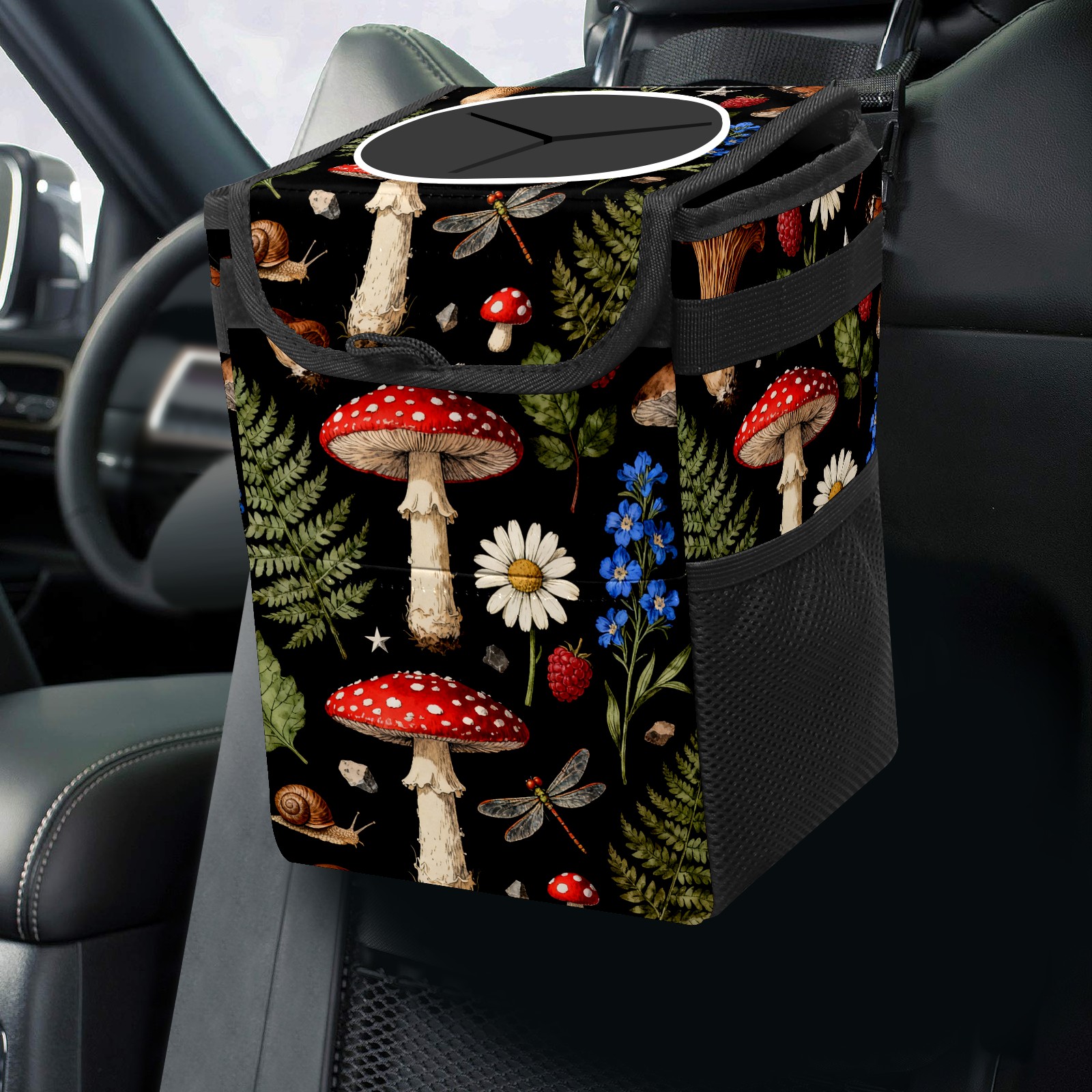 MSINMKOK Car Trash Bin with Lid Auto Garbage Bag Hanging for Back Seat - Leakproof Trash Can for Cars SUVs Trucks Vehicle Car Accessories (Vintage Forest Mushroom)
