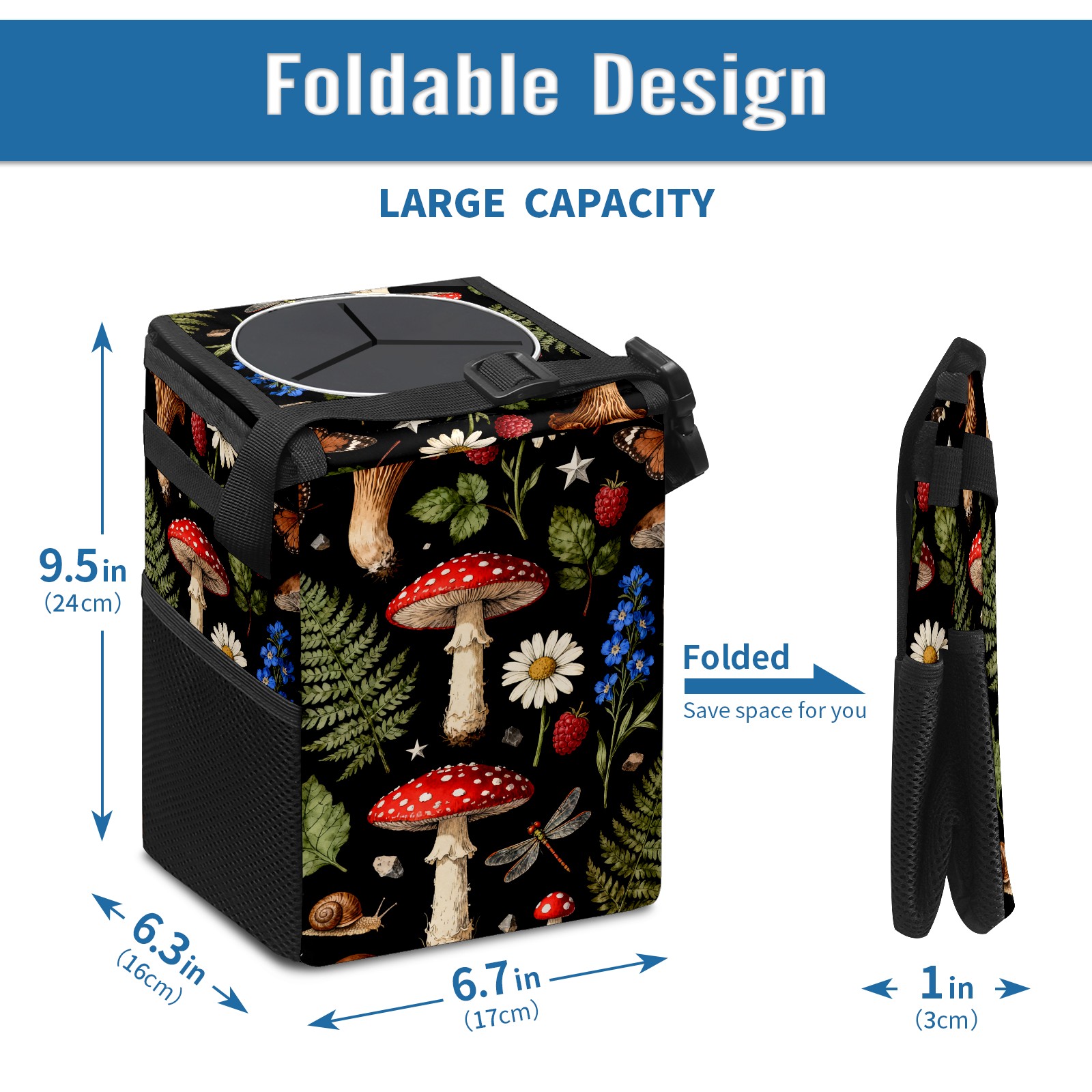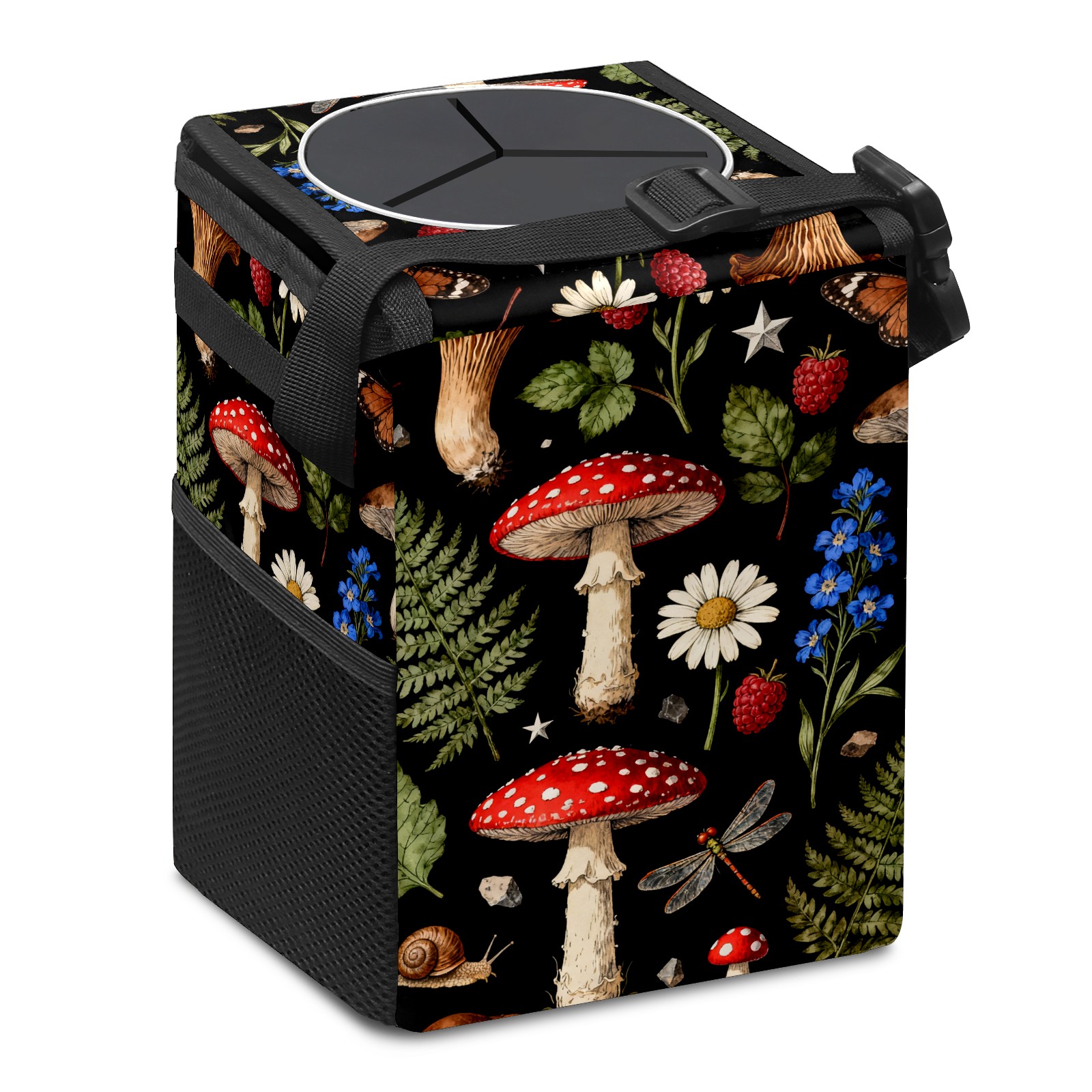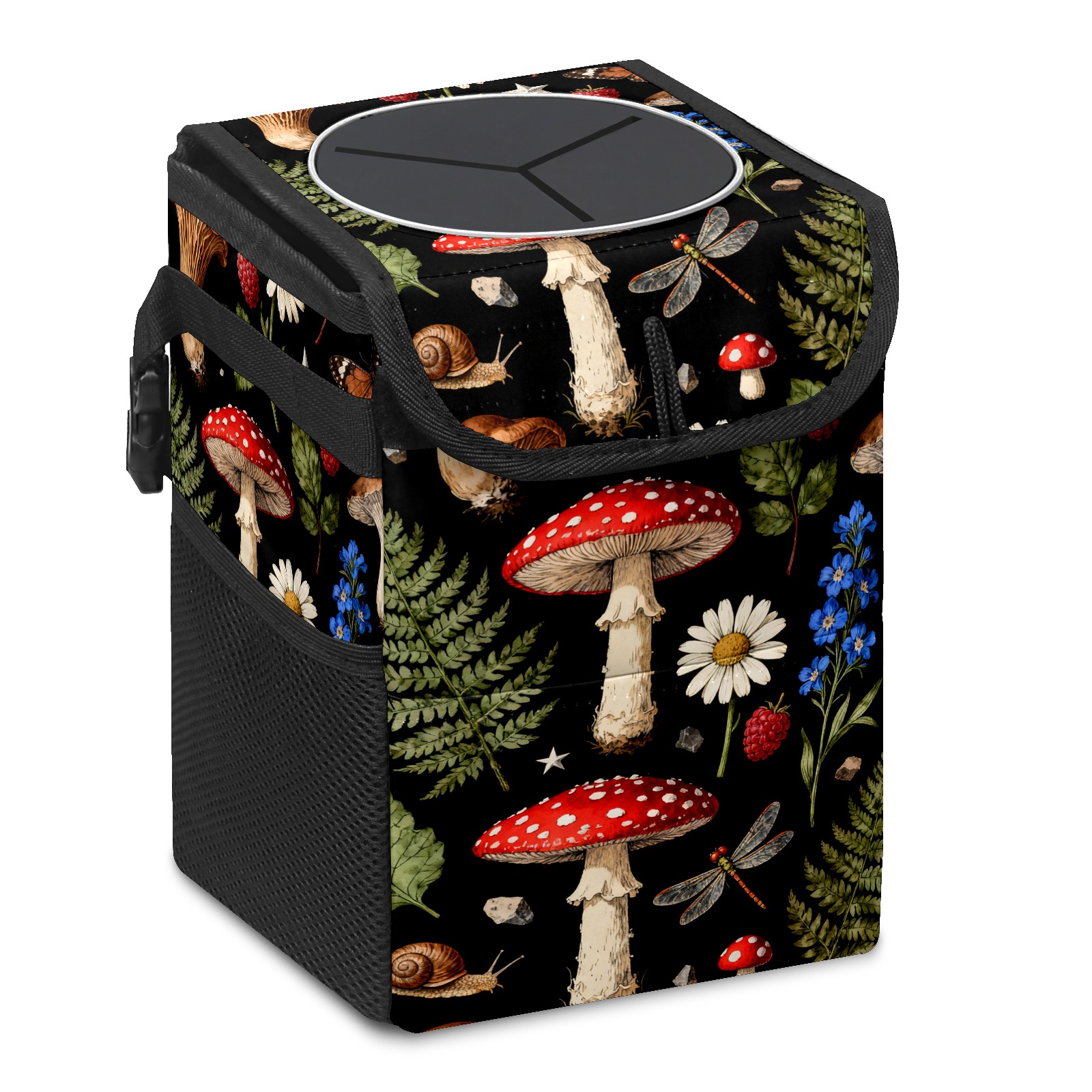MSINMKOK Car Trash Bin with Lid Auto Garbage Bag Hanging for Back Seat - Leakproof Trash Can for Cars SUVs Trucks Vehicle Car Accessories (Vintage Forest Mushroom)
