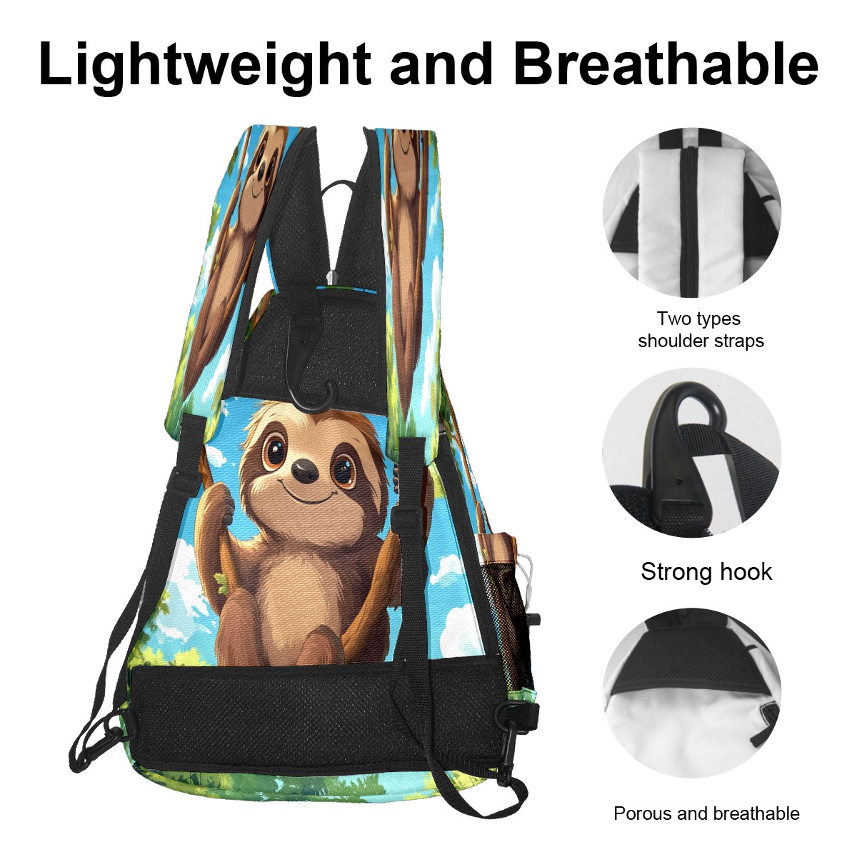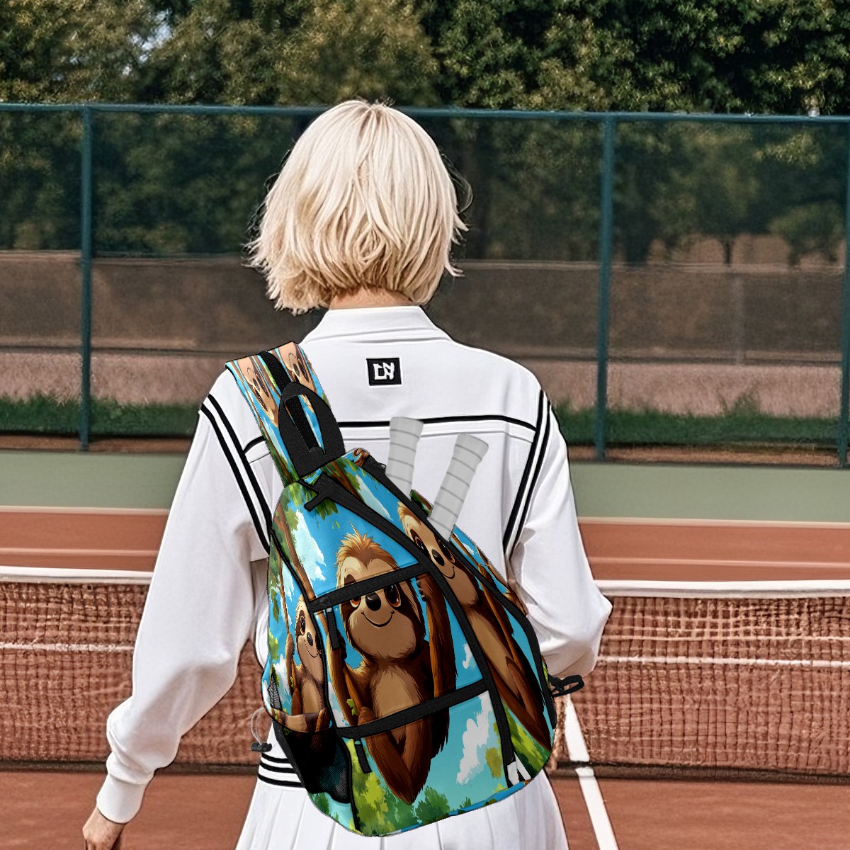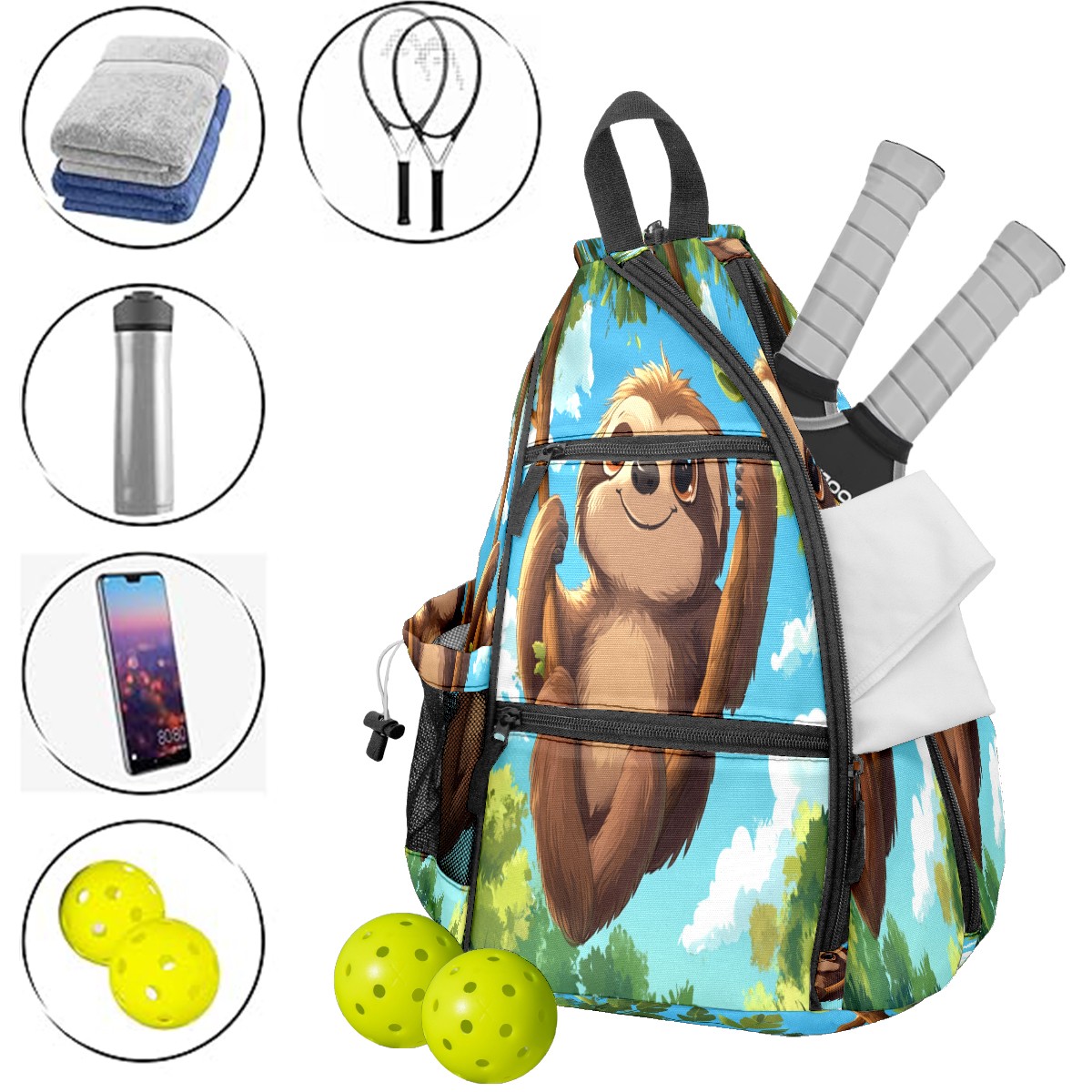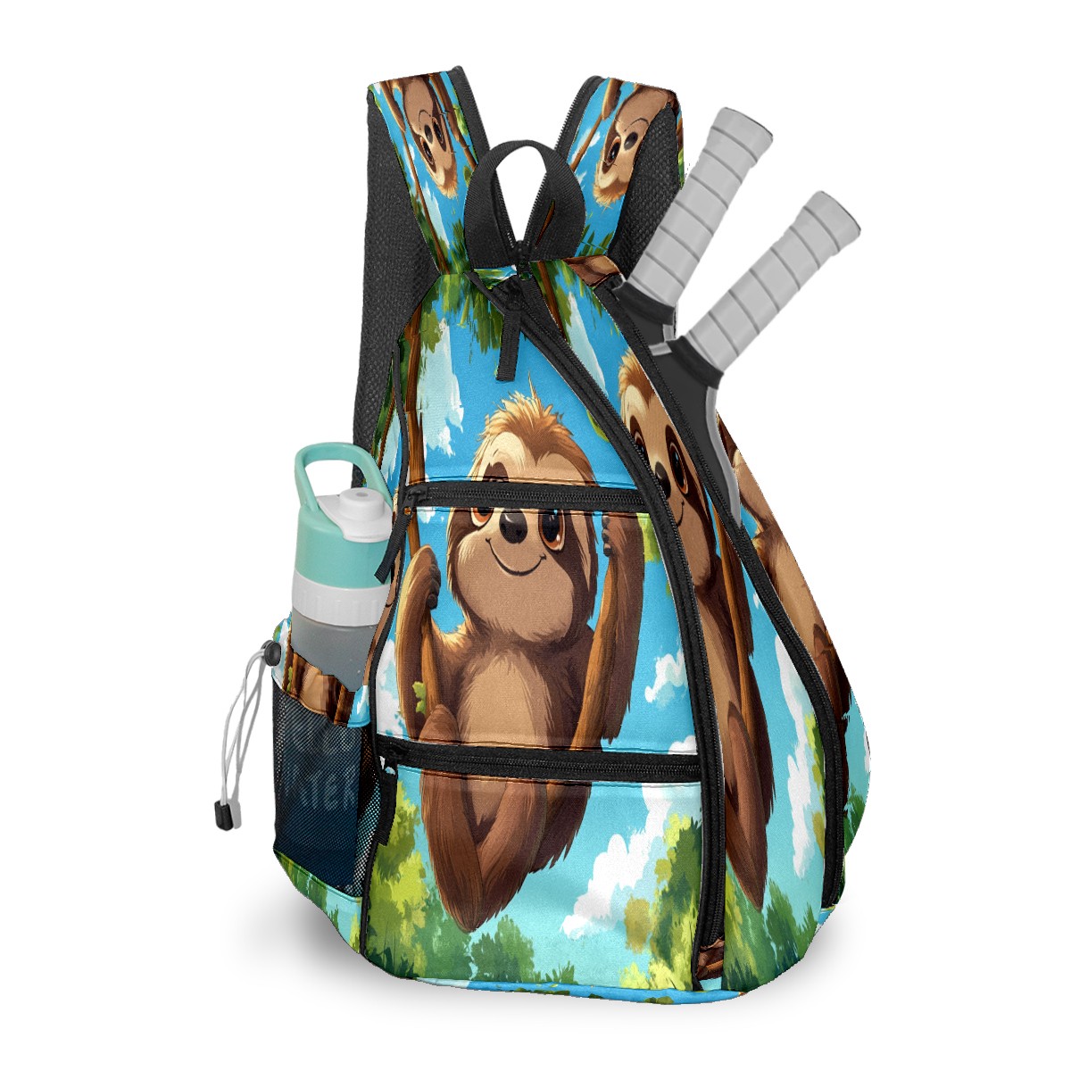 Multifunctional Pickleball Bag,Large Capacity Sports Pickleball Racket Bag, Water Bottle Holder and Fence Hook,Suitable for Both Men Women Sloth Hanging Branch