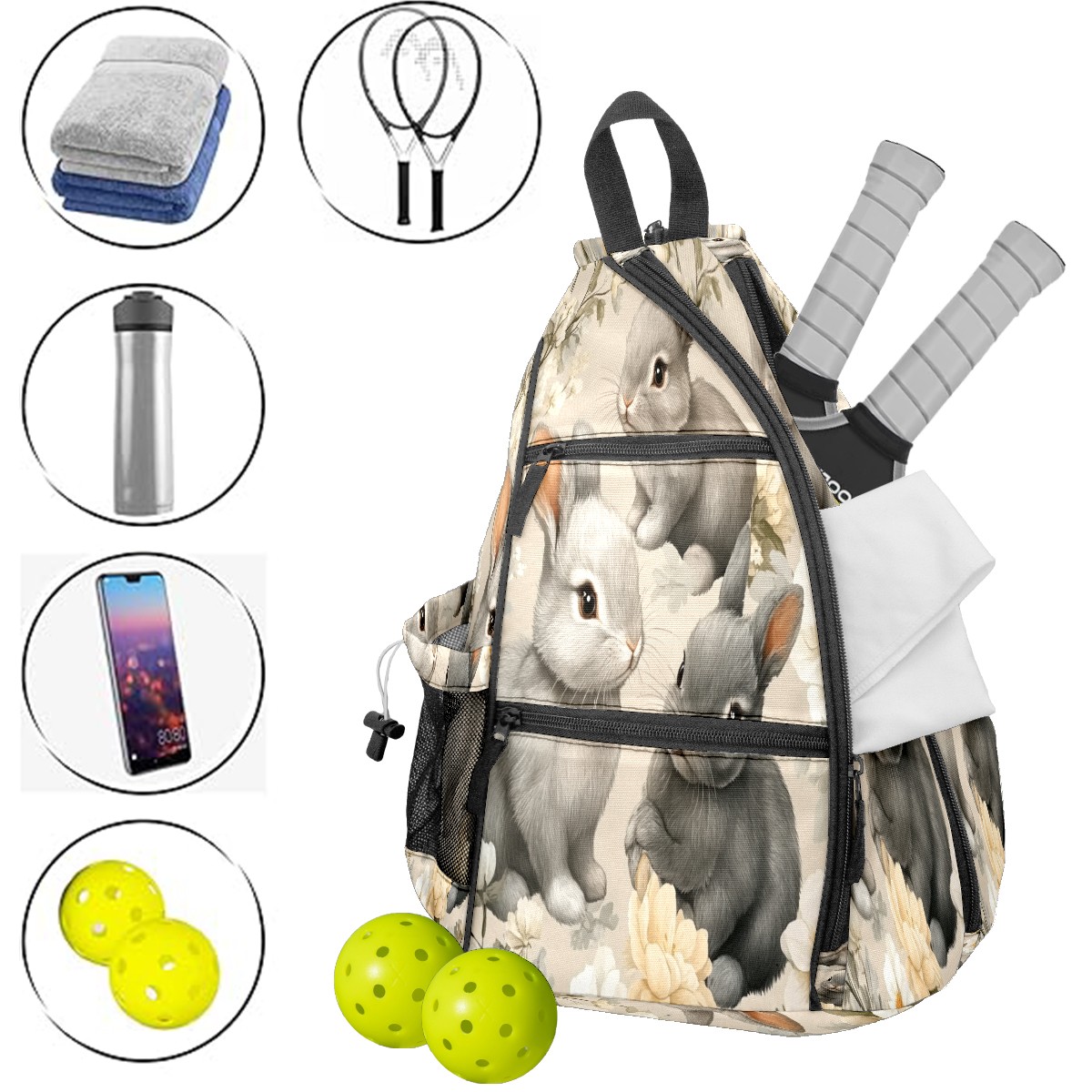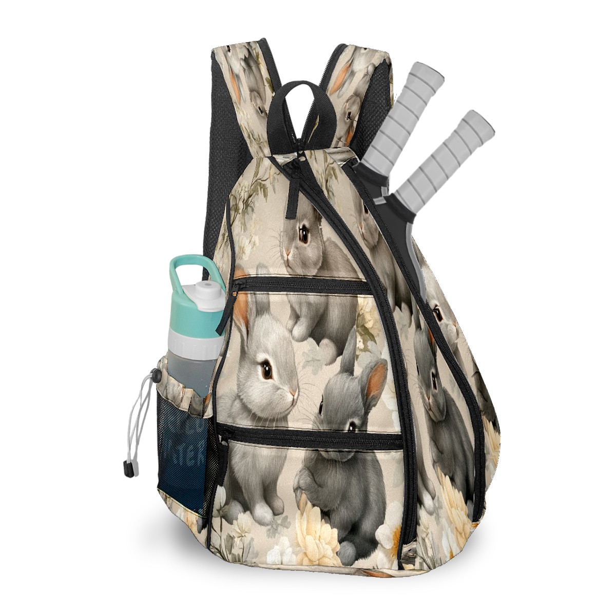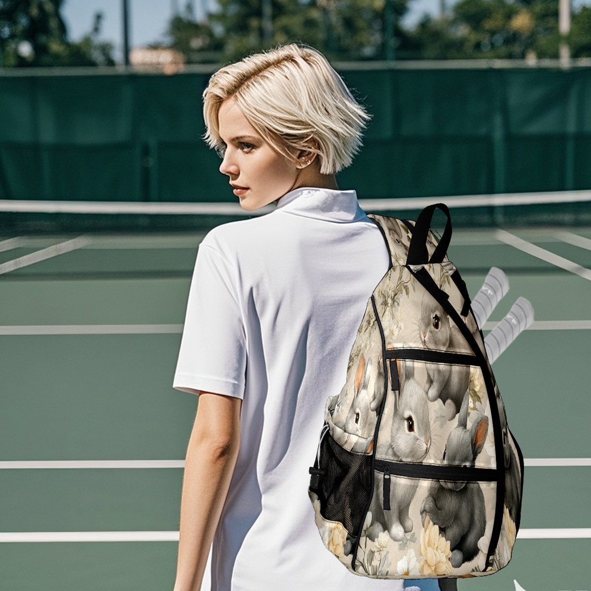 Multifunctional Pickleball Bag,Large Capacity Sports Pickleball Racket Bag, Water Bottle Holder and Fence Hook,Suitable for Both Men Women Gray Rabbit