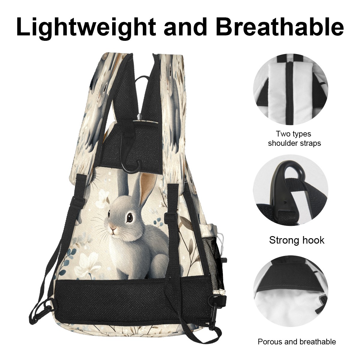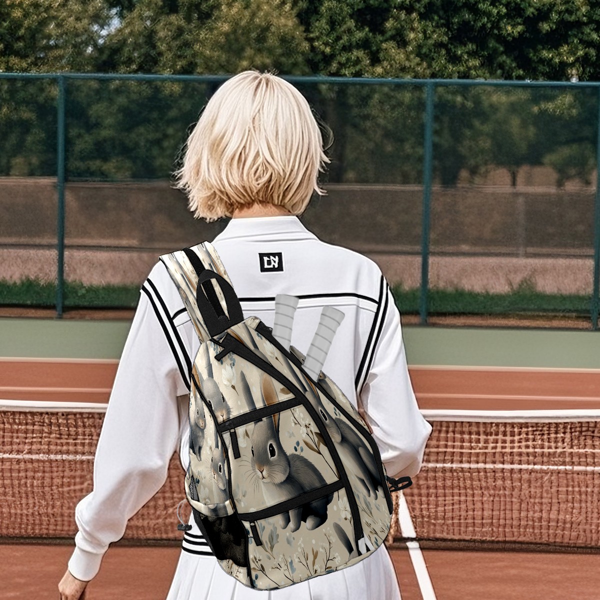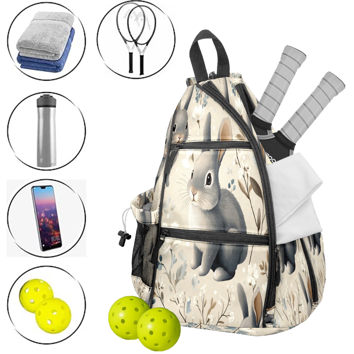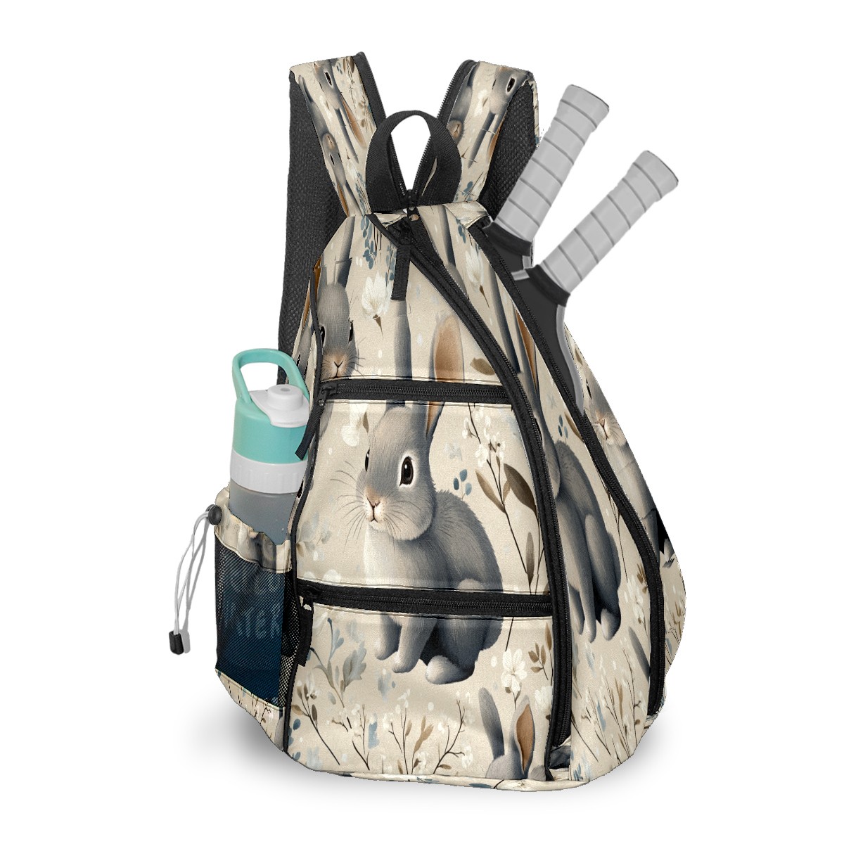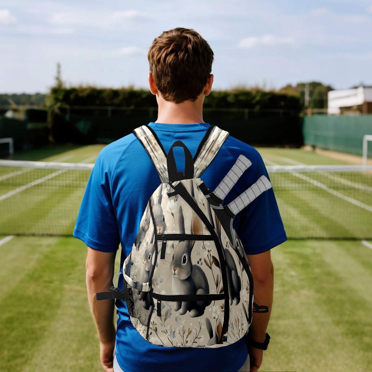 Multifunctional Pickleball Bag,Large Capacity Sports Pickleball Racket Bag, Water Bottle Holder and Fence Hook,Suitable for Both Men Women Gray Rabbit, White Flower