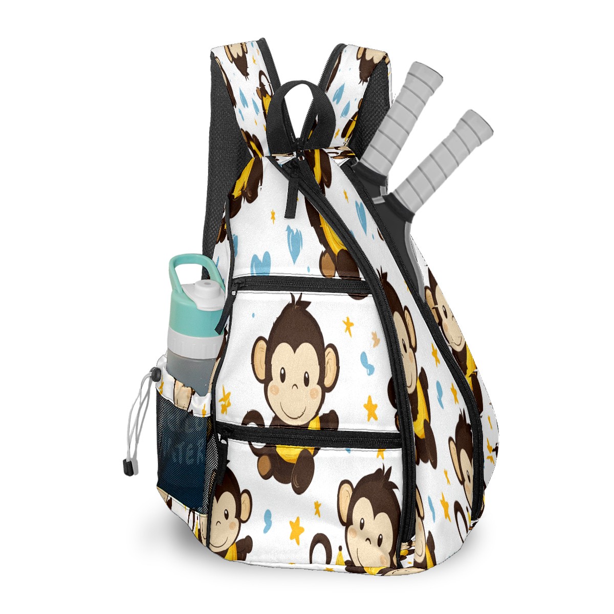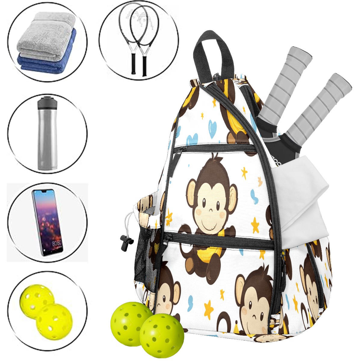 Multifunctional Pickleball Bag,Large Capacity Sports Pickleball Racket Bag, Water Bottle Holder and Fence Hook,Suitable for Both Men Women Funny Monkeys 1