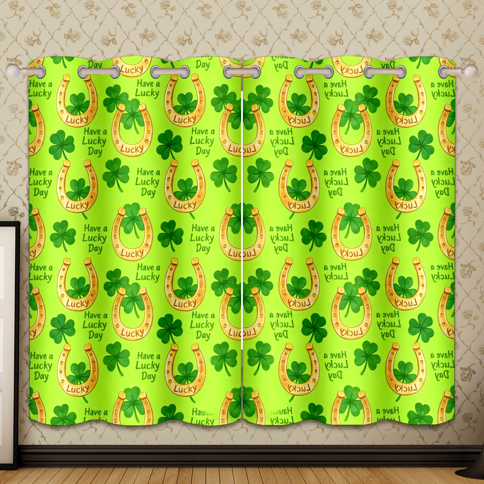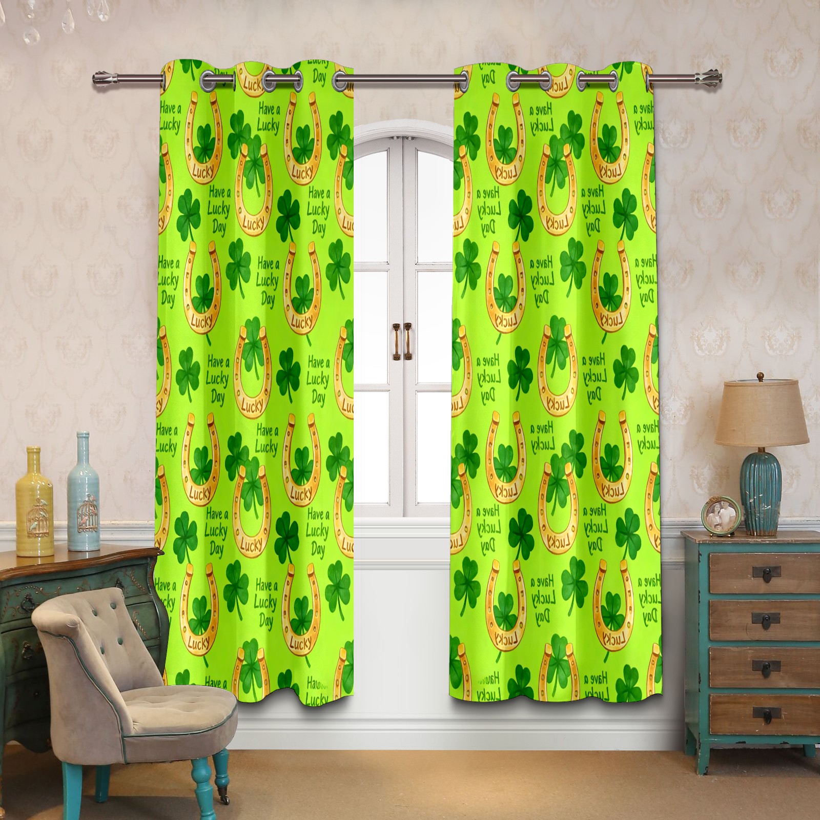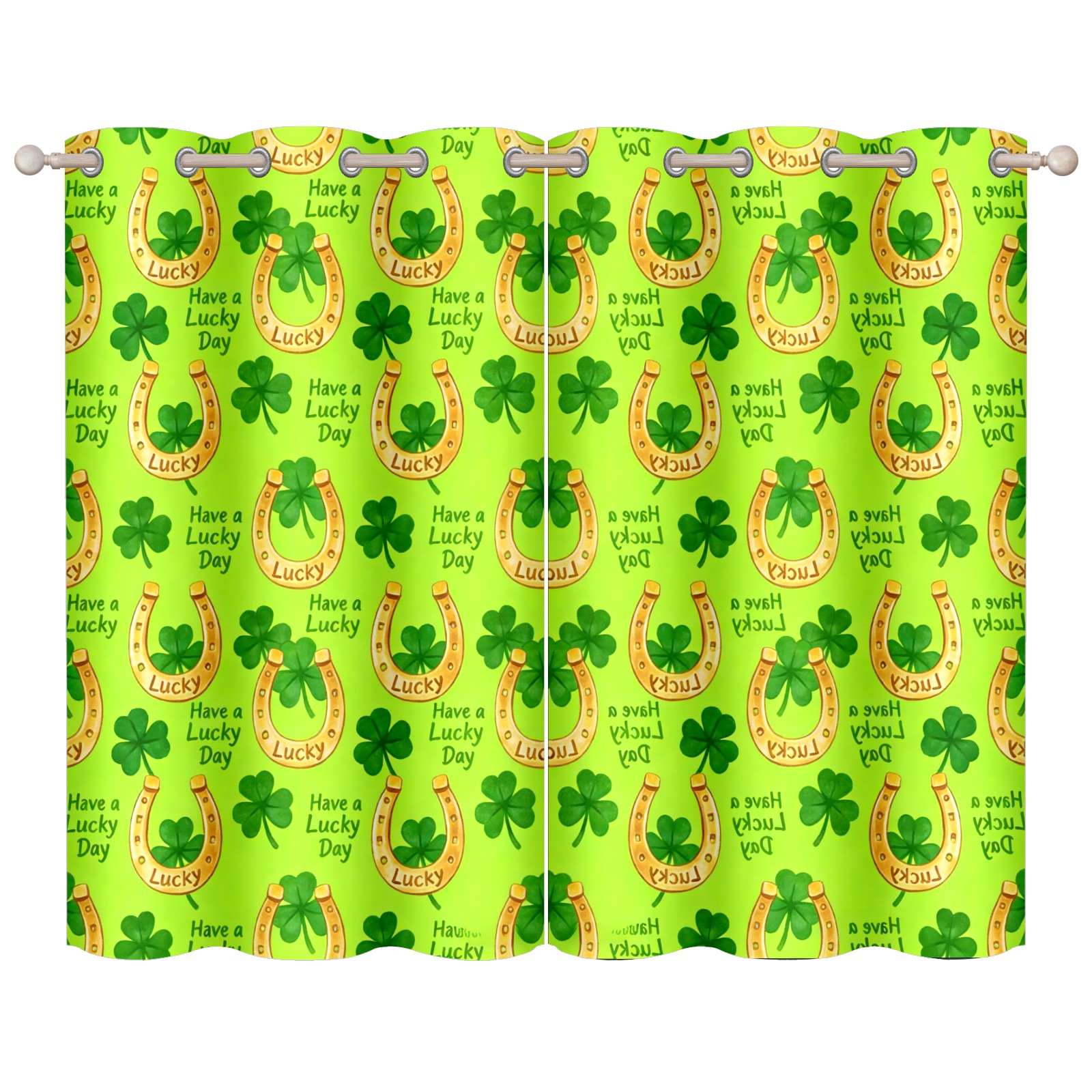 HELVOON Symmetric Printed Curtains - Polyester Fabric, Light-Filtering & Fade-Resistant, 2-Panel Set, Ideal for Bedroom/Living Room/Patio Clover Decoration Yellow