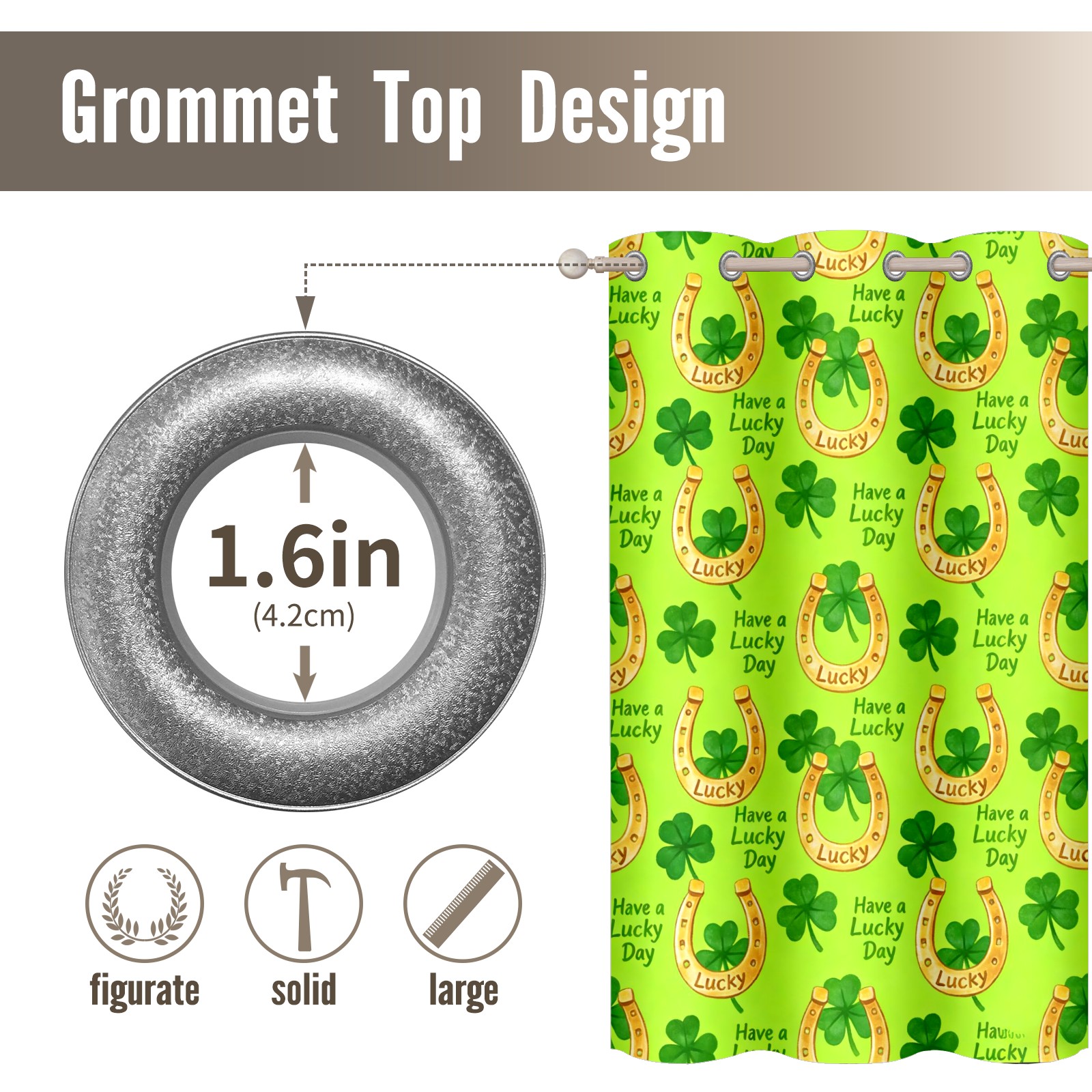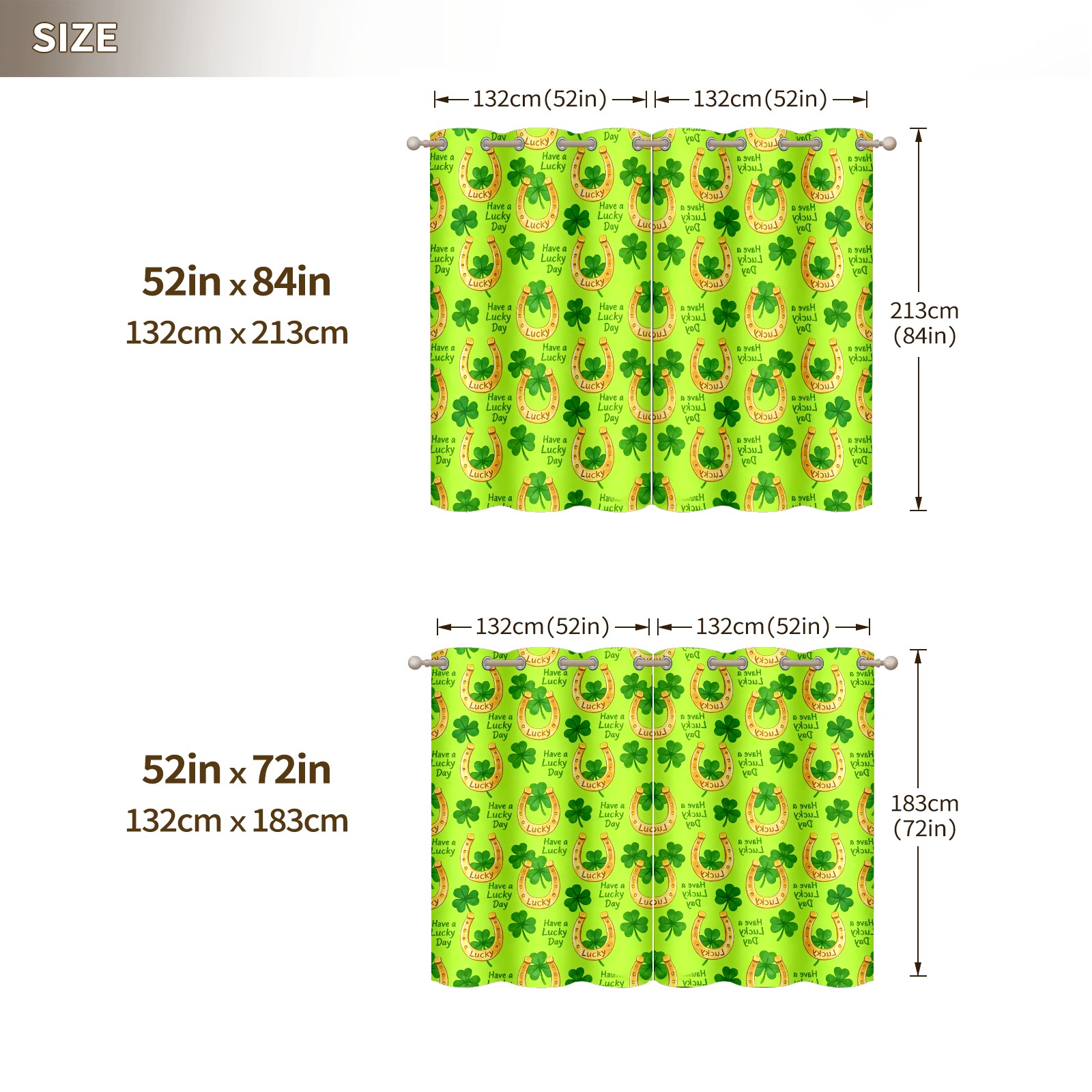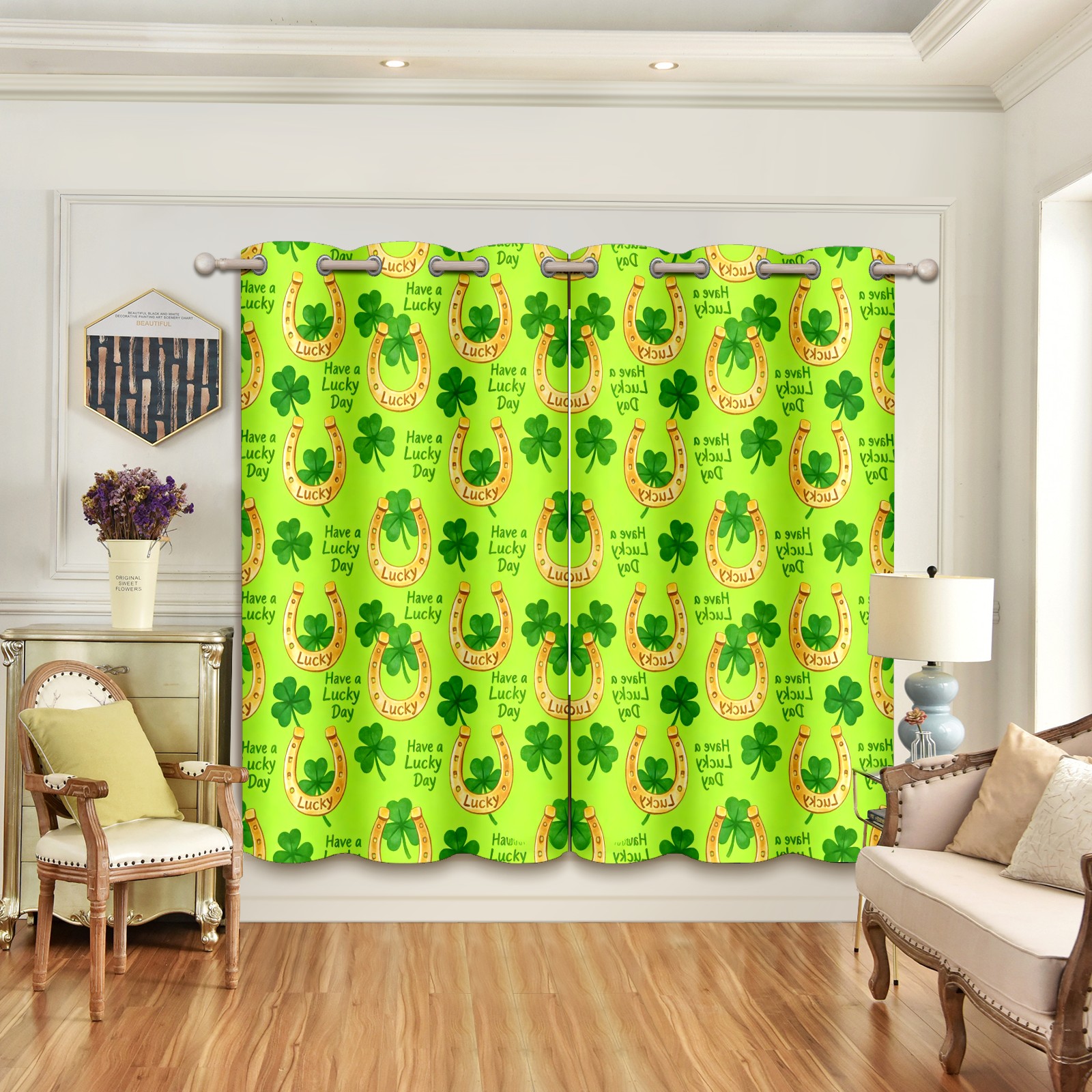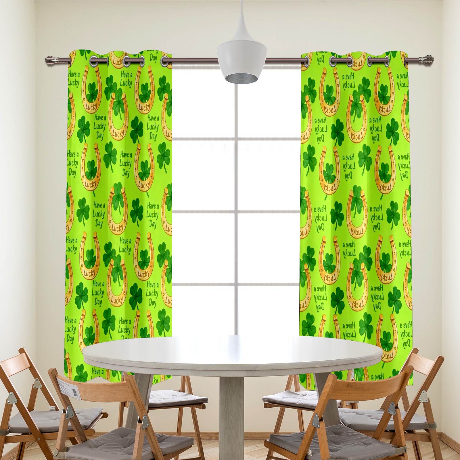 HELVOON Symmetric Printed Curtains - Polyester Fabric, Light-Filtering & Fade-Resistant, 2-Panel Set, Ideal for Bedroom/Living Room/Patio Clover Decoration Yellow