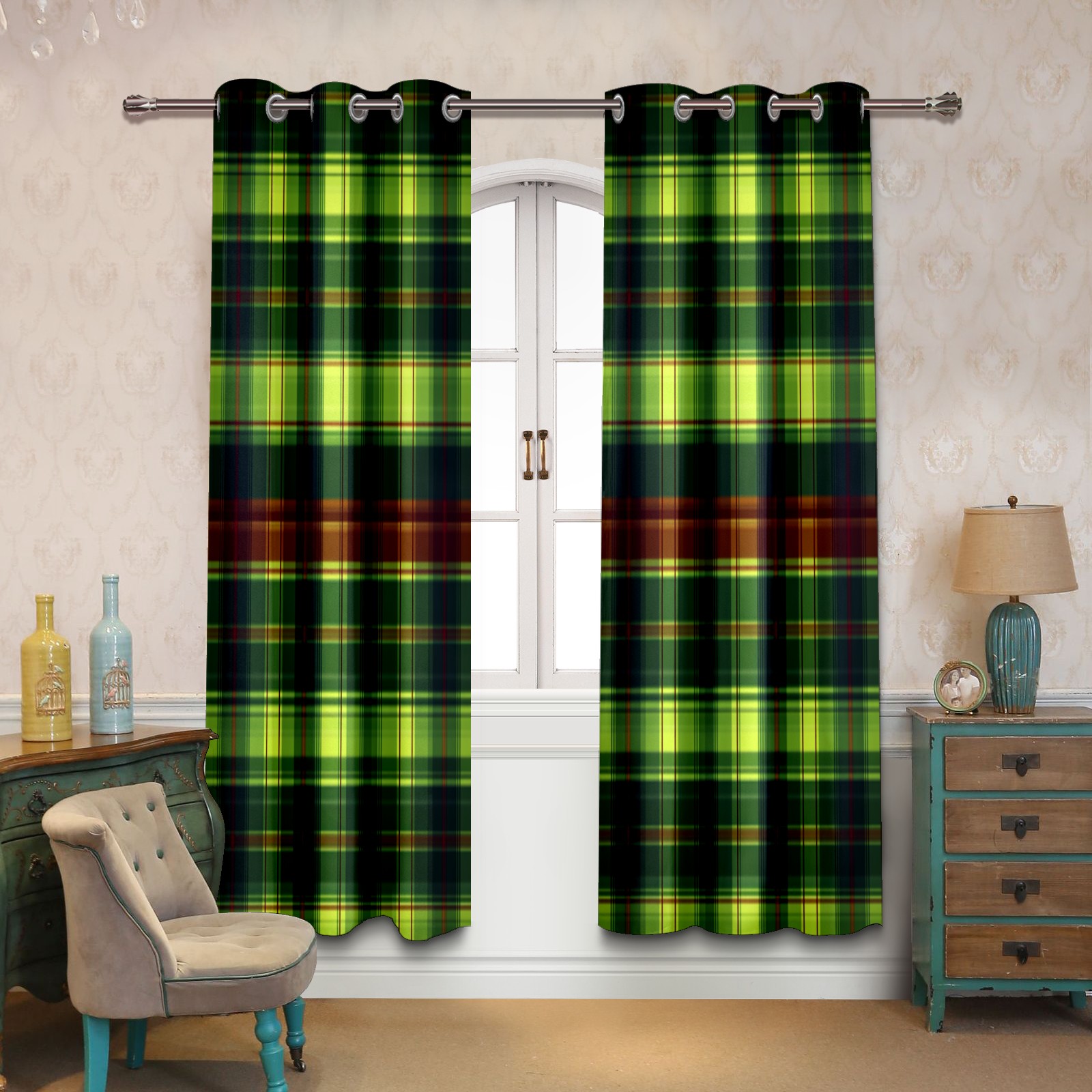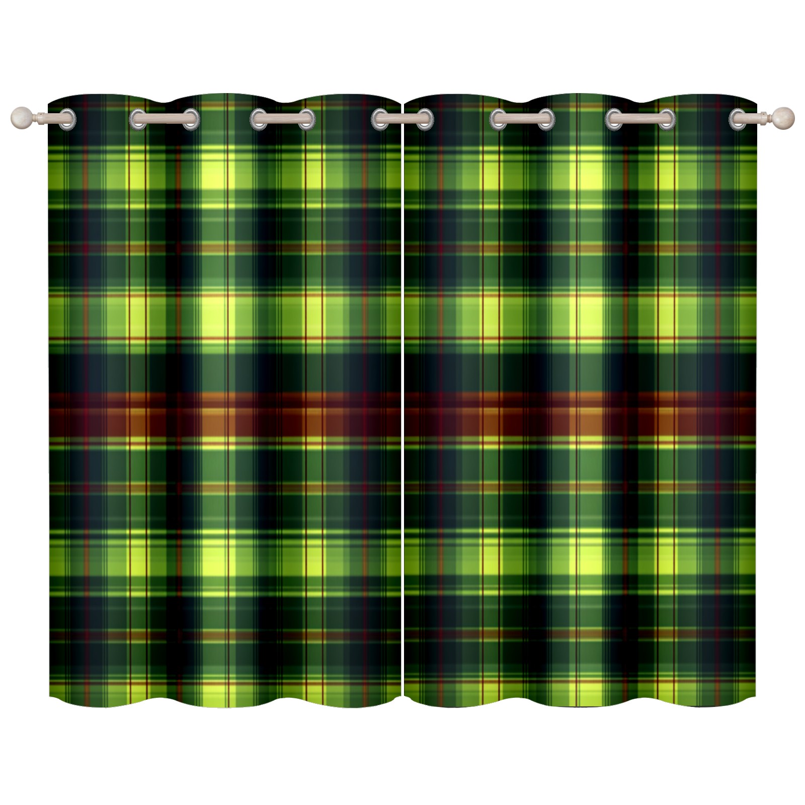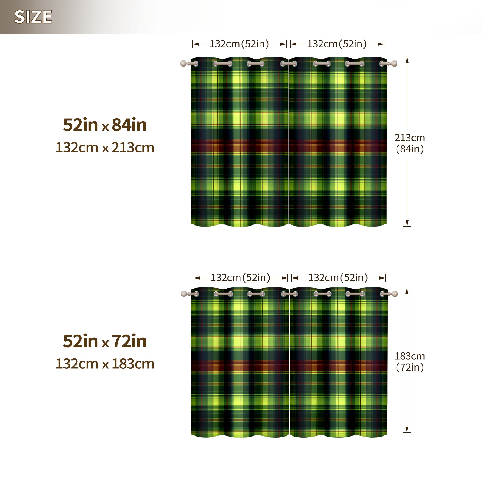 HELVOON Symmetric Printed Curtains - Polyester Fabric, Light-Filtering & Fade-Resistant, 2-Panel Set, Ideal for Bedroom/Living Room/Patio Dark Green Plaid Design
