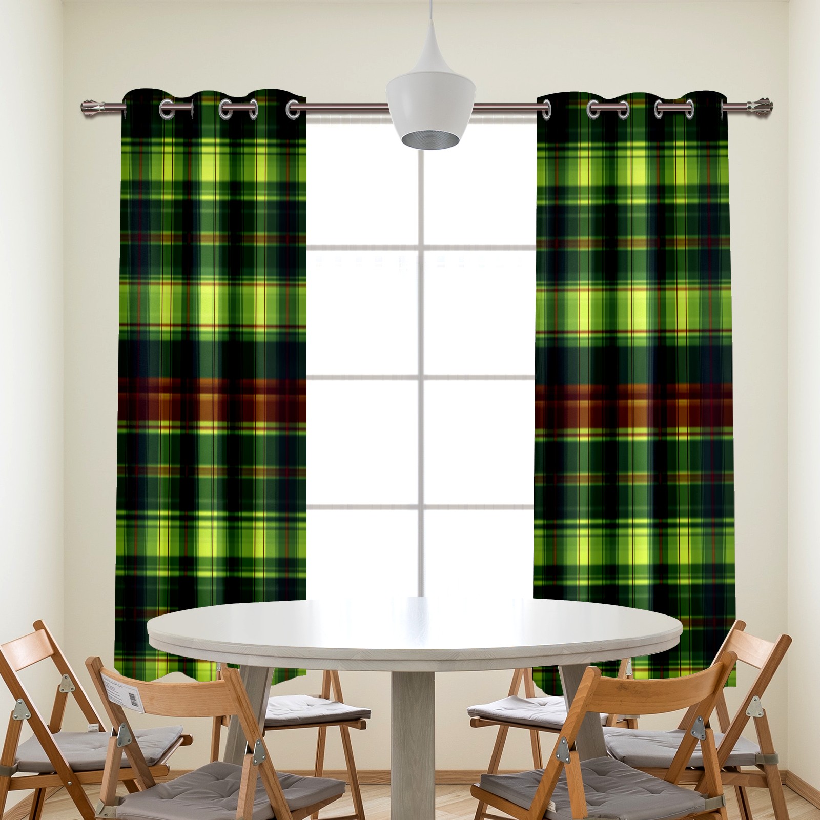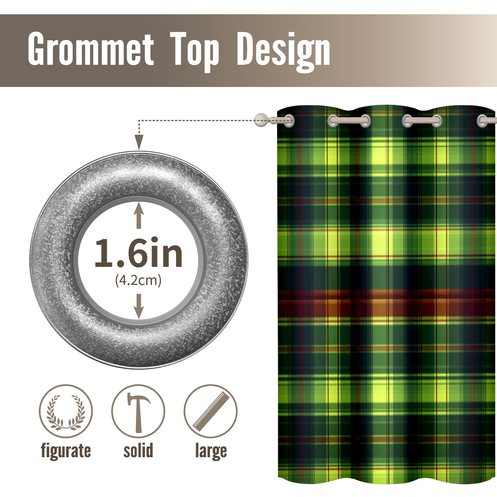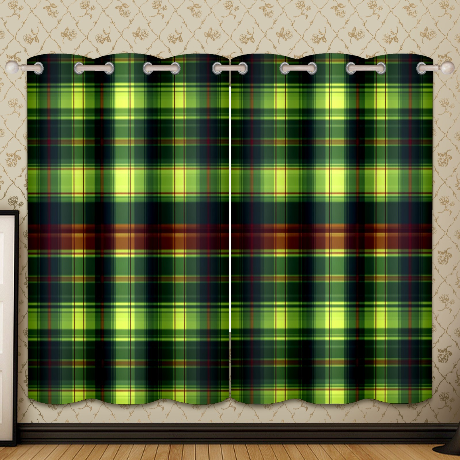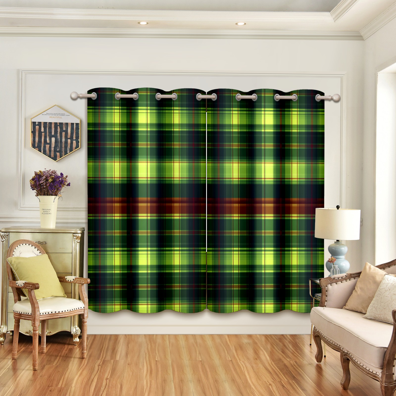 HELVOON Symmetric Printed Curtains - Polyester Fabric, Light-Filtering & Fade-Resistant, 2-Panel Set, Ideal for Bedroom/Living Room/Patio Dark Green Plaid Design
