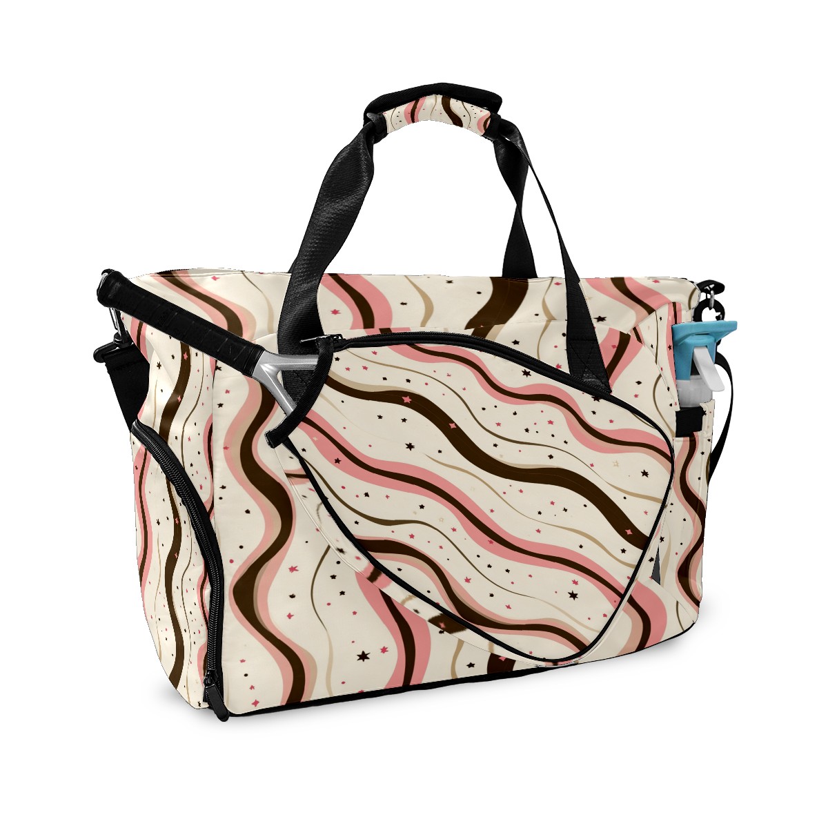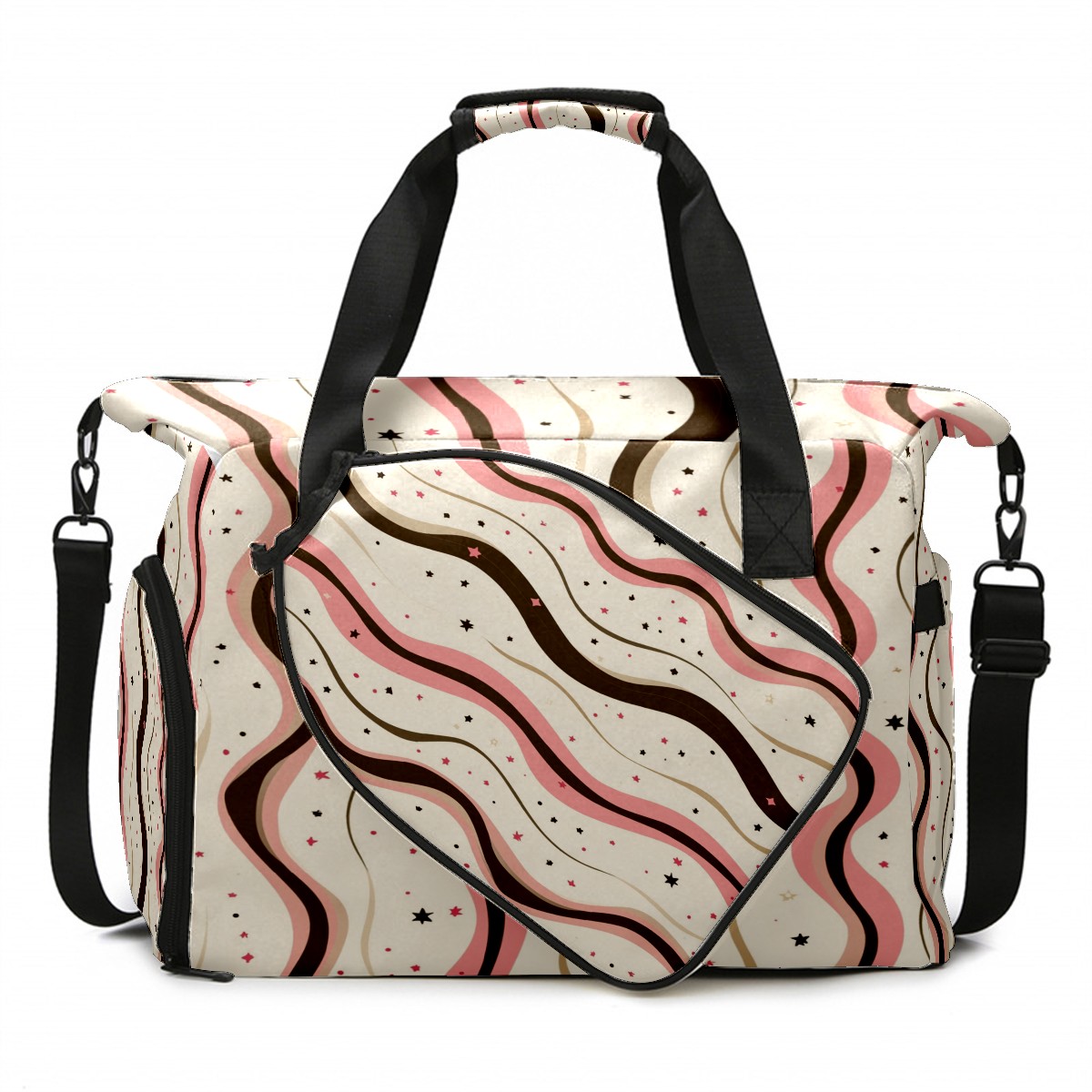 Lightweight Pickleball Tote Bag with Large Capacity, Shoe Compartment, Large Paddle Storage, Water Bottle Holder & Fence Hook for Women & Men Pink Wave Pattern