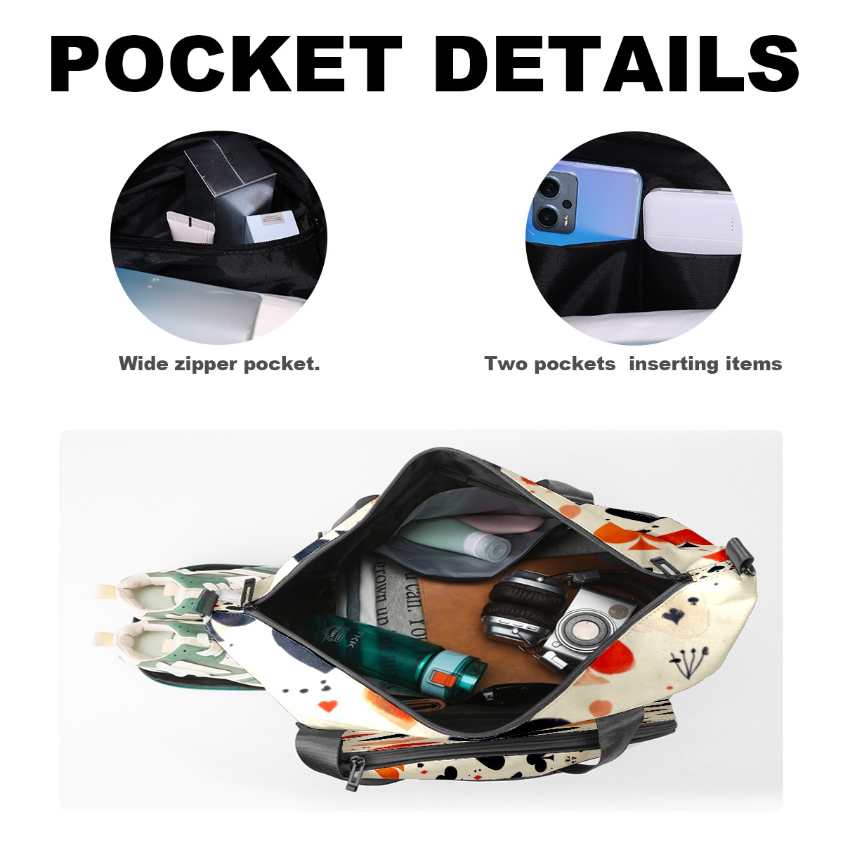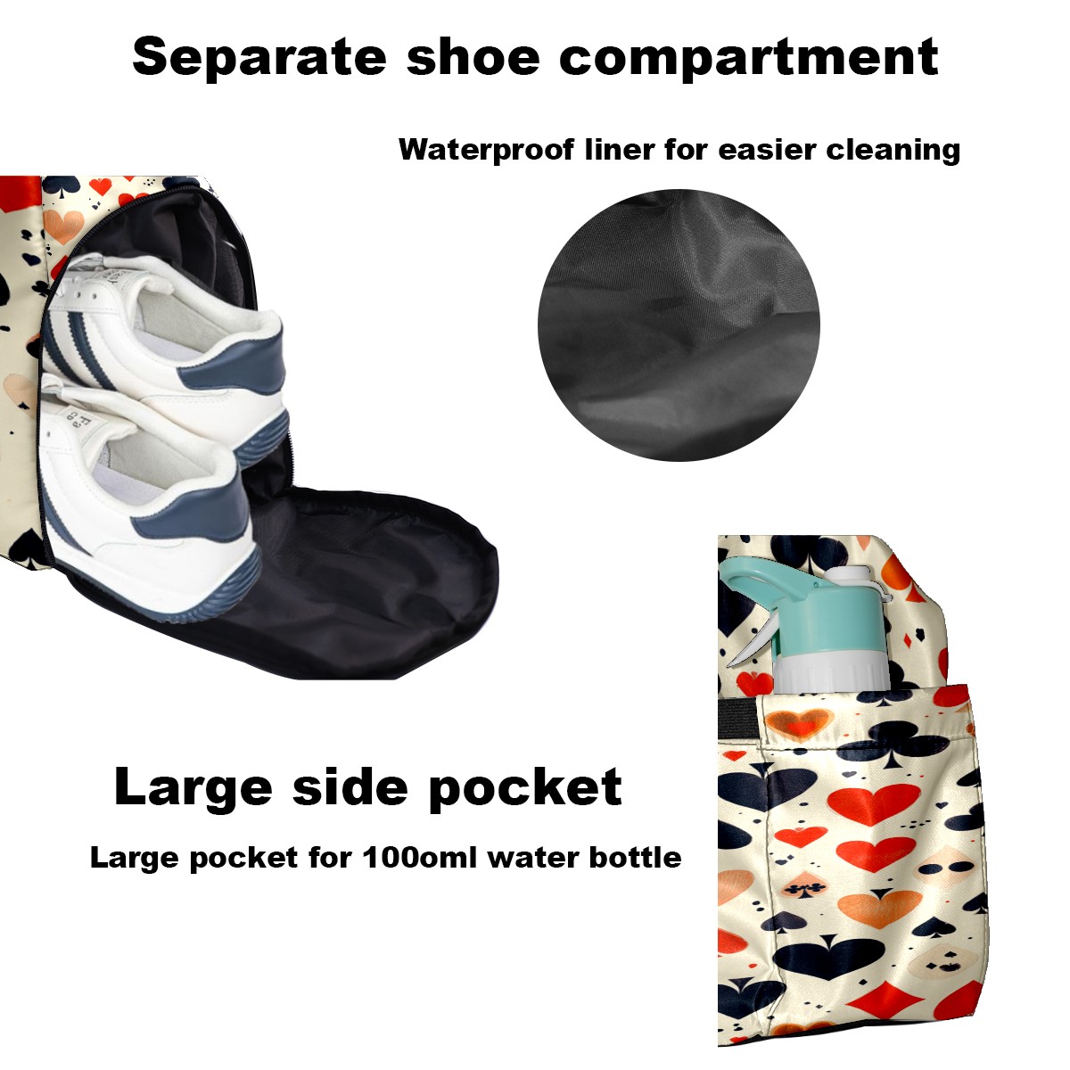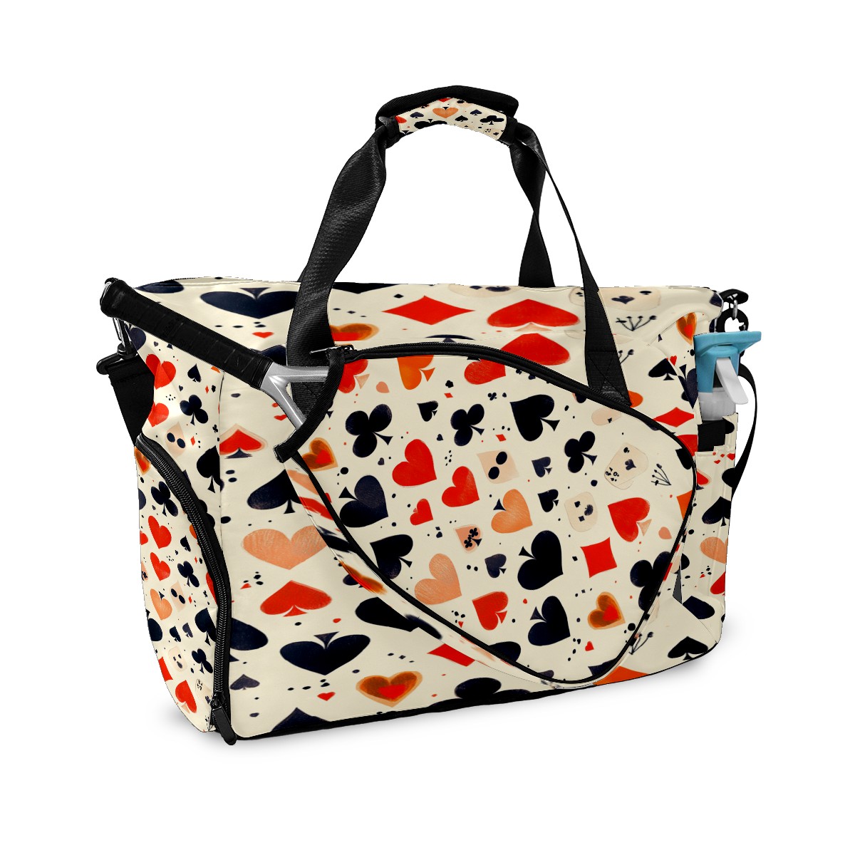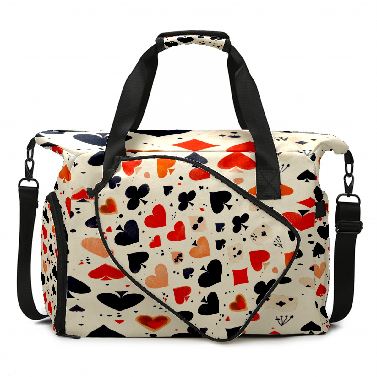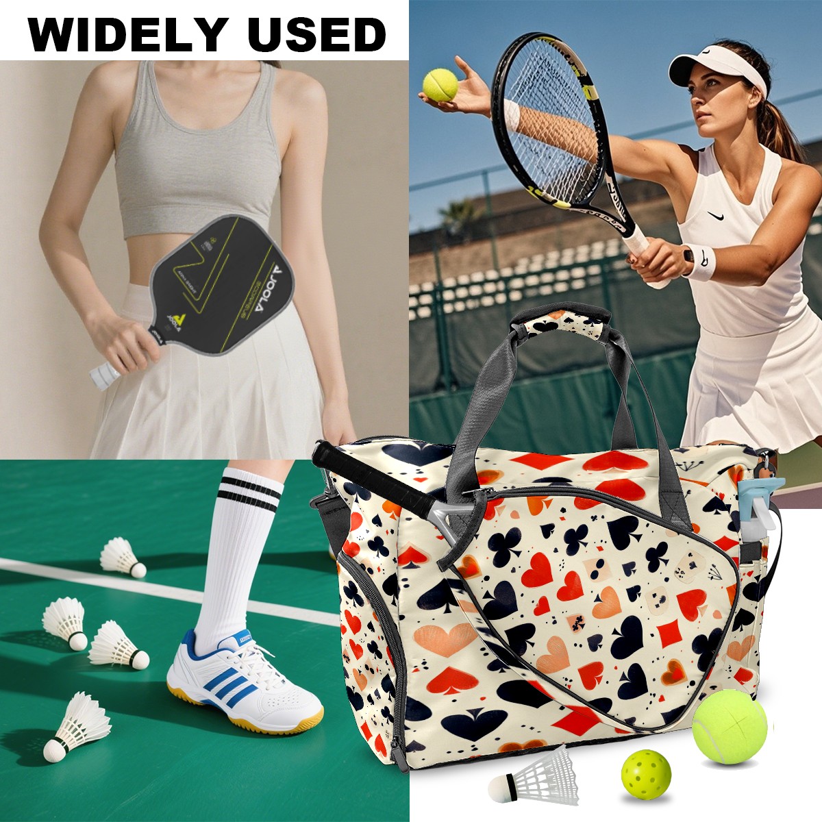 Lightweight Pickleball Tote Bag with Large Capacity, Shoe Compartment, Large Paddle Storage, Water Bottle Holder & Fence Hook for Women & Men Poker Element Pattern