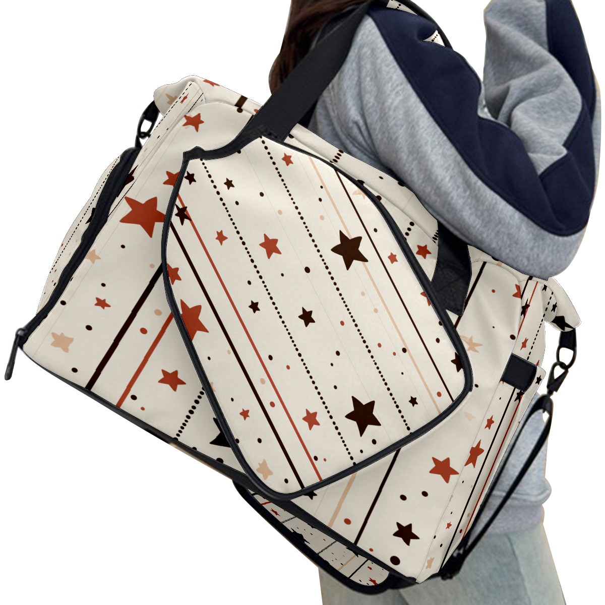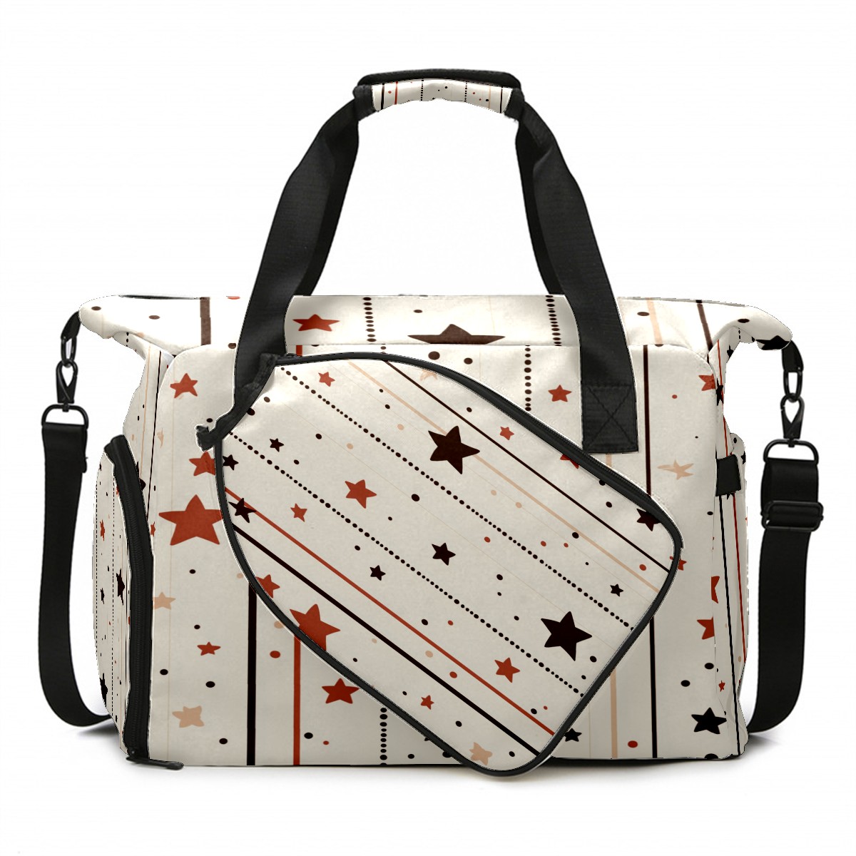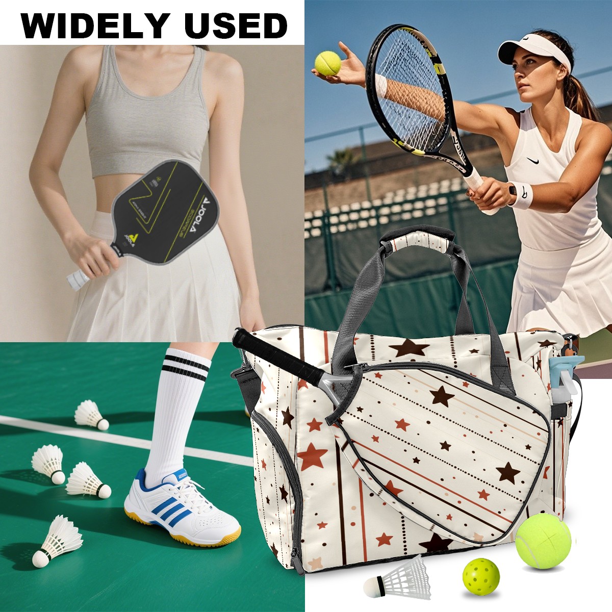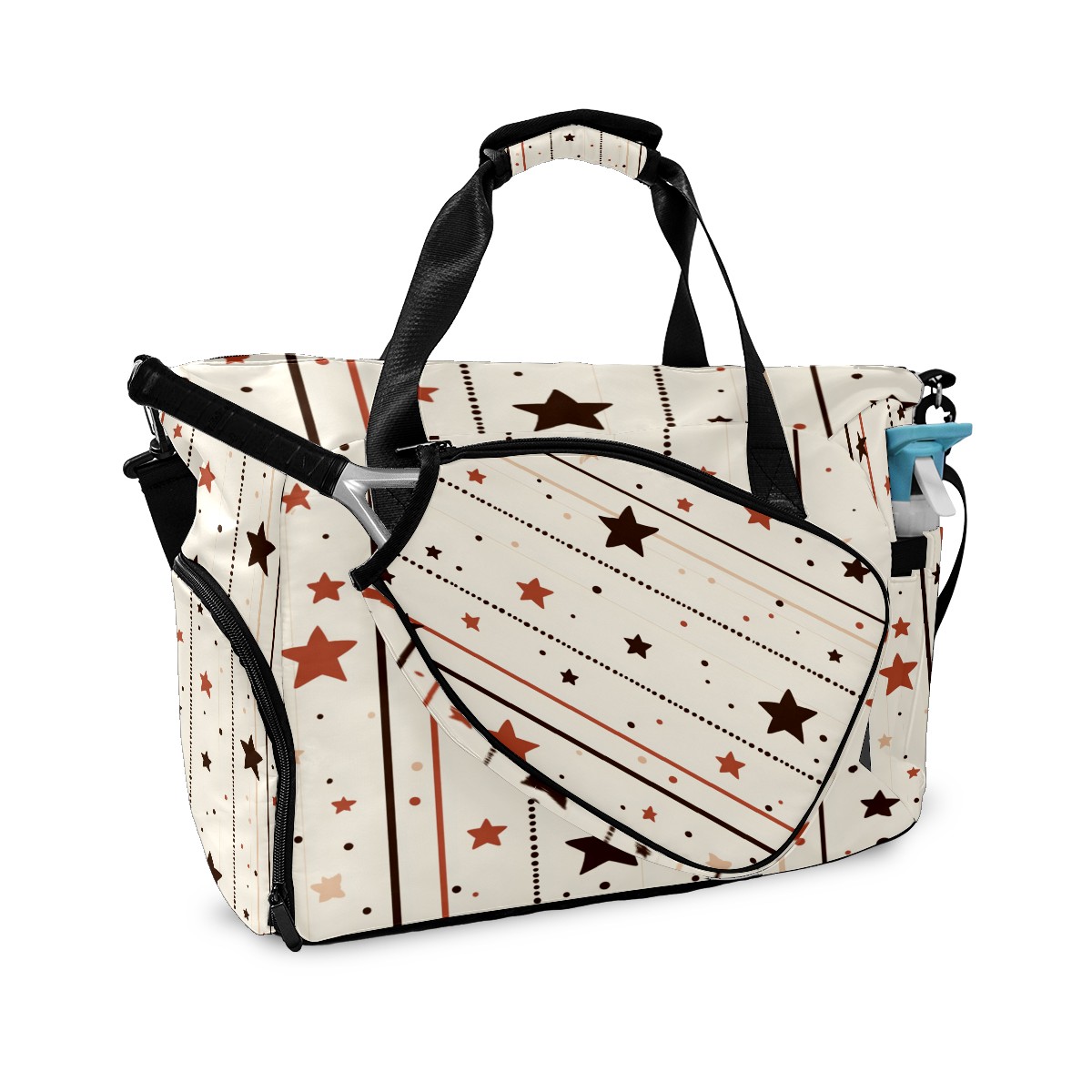 Lightweight Pickleball Tote Bag with Large Capacity, Shoe Compartment, Large Paddle Storage, Water Bottle Holder & Fence Hook for Women & Men Brown Star Pattern
