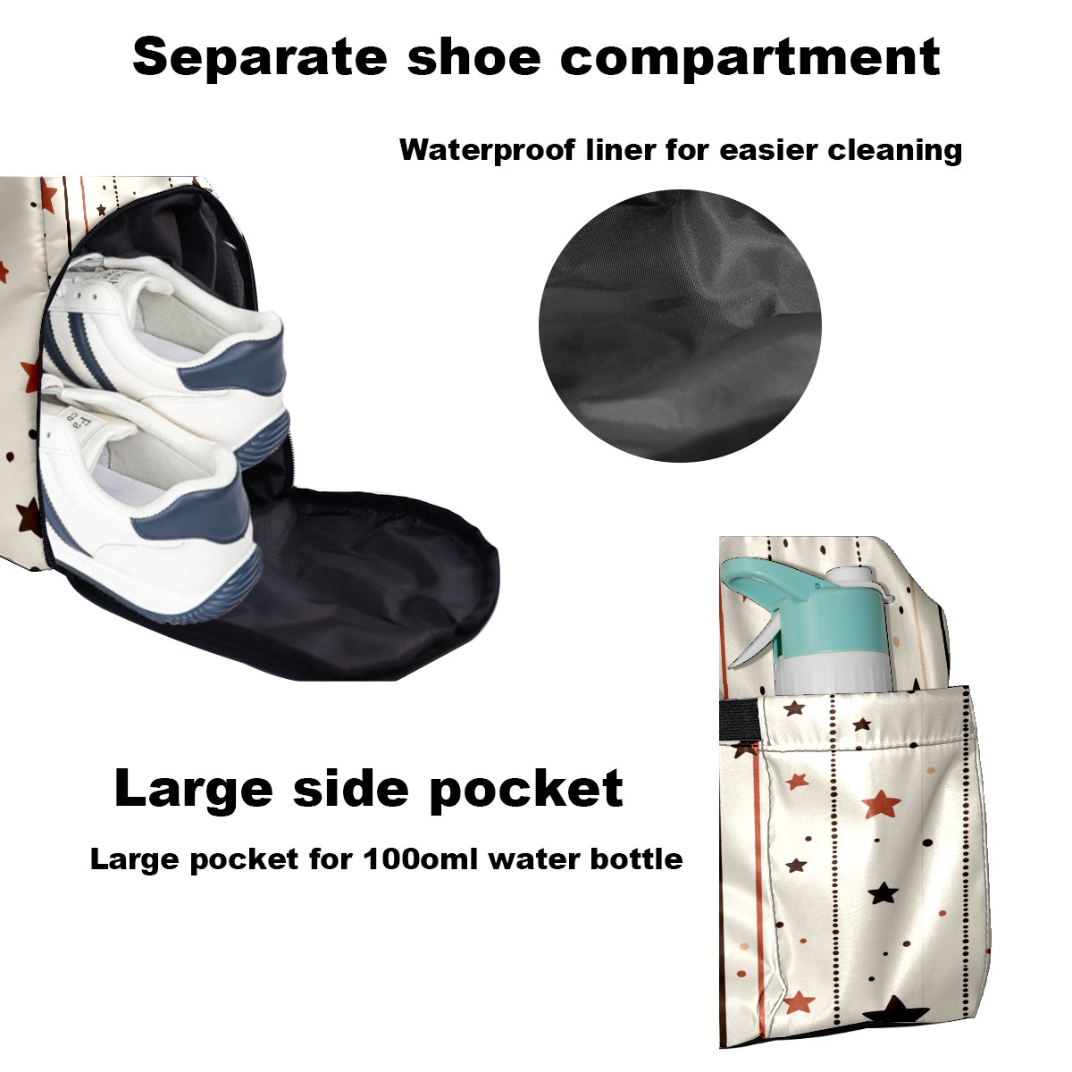 <p>Multifunctional Gym Travel Bag Made of Twill Fabric 22cm x 48cm x 35cm (8.7in x 18.9in x 13.8in) Made of lightweight and durable twill fabric, this bag is perfect for an active lifestyle. The spacious main compartment easily holds clothing, towels, and a full set of gym gear. A smart pocket precisely stores your phone, earphones, and gym membership card. A ventilated shoe compartment can hold size 10 athletic shoes, and a waterproof wet bag isolates swimwear or sweaty clothing, effectively preventing odors and clutter. It's a professional gym bag suitable for spinning and strength training, a stylish everyday handbag, and can also meet diverse needs such as pickleball, weekend trips, and overnight stays. Combining functionality and style, it seamlessly integrates into various scenarios.<br></p>
