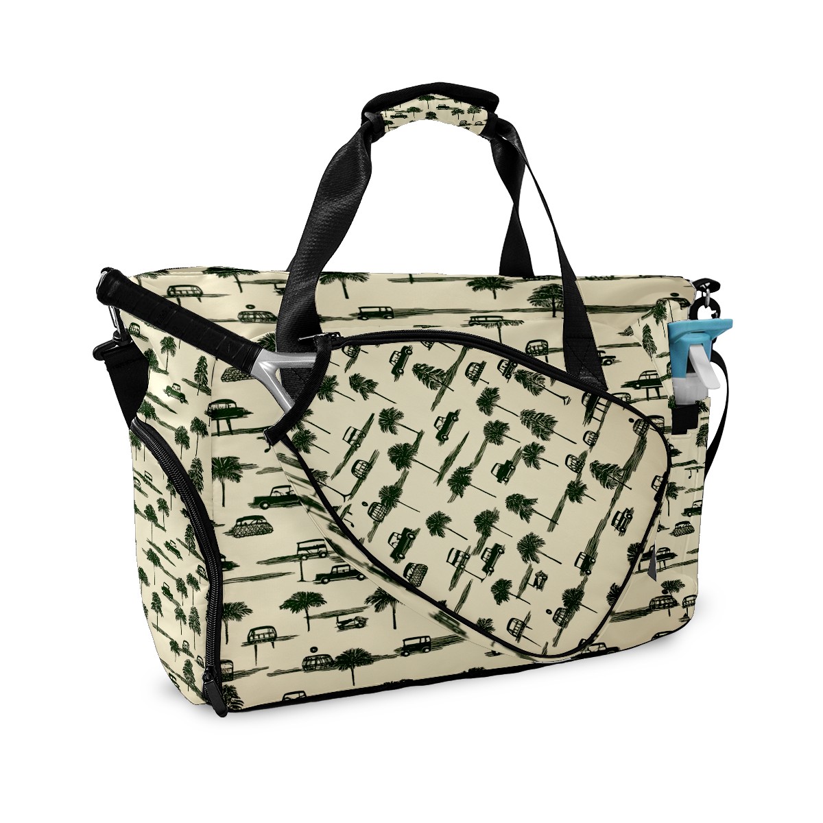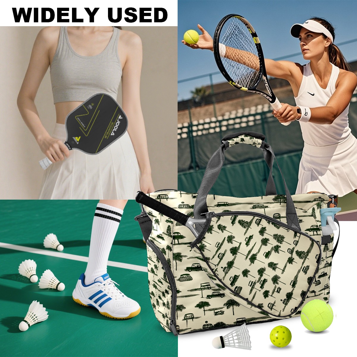 Lightweight Pickleball Tote Bag with Large Capacity, Shoe Compartment, Large Paddle Storage, Water Bottle Holder & Fence Hook for Women & Men Stadium Silhouette Pattern