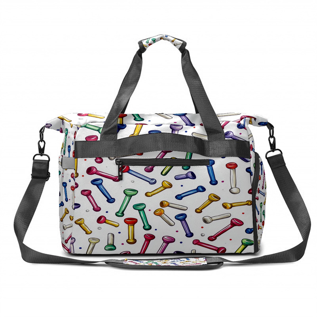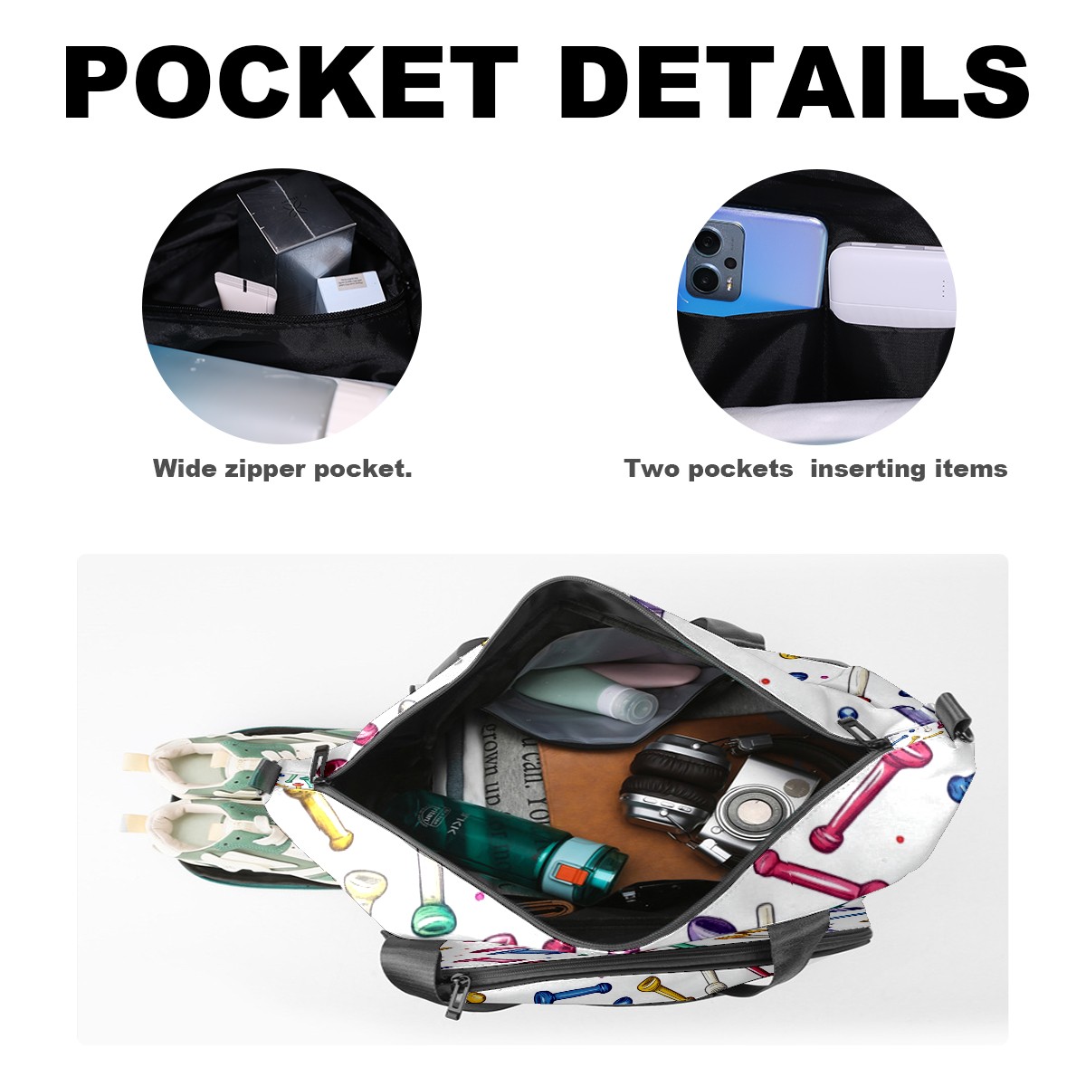 • <p>Multifunctional Gym Travel Bag Made of Twill Fabric 22cm x 48cm x 35cm (8.7in x 18.9in x 13.8in) Made of lightweight and durable twill fabric, this bag is perfect for an active lifestyle. The spacious main compartment easily holds clothing, towels, and a full set of gym gear. A smart pocket precisely stores your phone, earphones, and gym membership card. A ventilated shoe compartment can hold size 10 athletic shoes, and a waterproof wet bag isolates swimwear or sweaty clothing, effectively preventing odors and clutter. It's a professional gym bag suitable for spinning and strength training, a stylish everyday handbag, and can also meet diverse needs such as pickleball, weekend trips, and overnight stays. Combining functionality and style, it seamlessly integrates into various scenarios.<br></p>