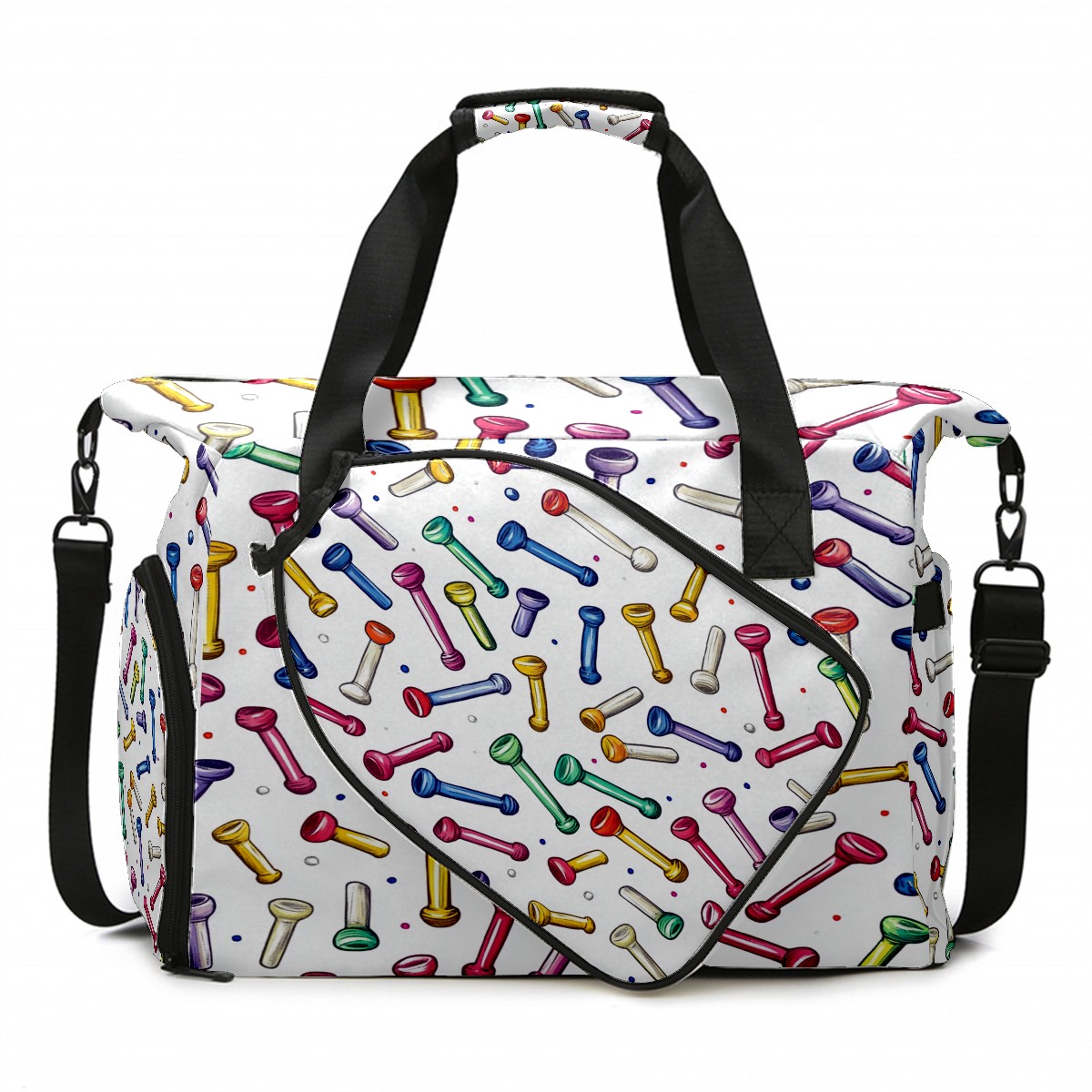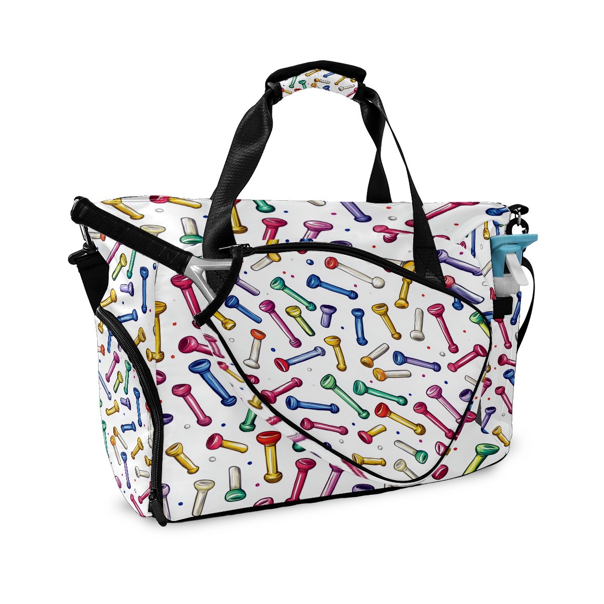 Lightweight Pickleball Tote Bag with Large Capacity, Shoe Compartment, Large Paddle Storage, Water Bottle Holder & Fence Hook for Women & Men Cute Golf Tees