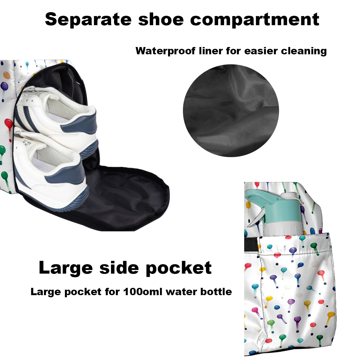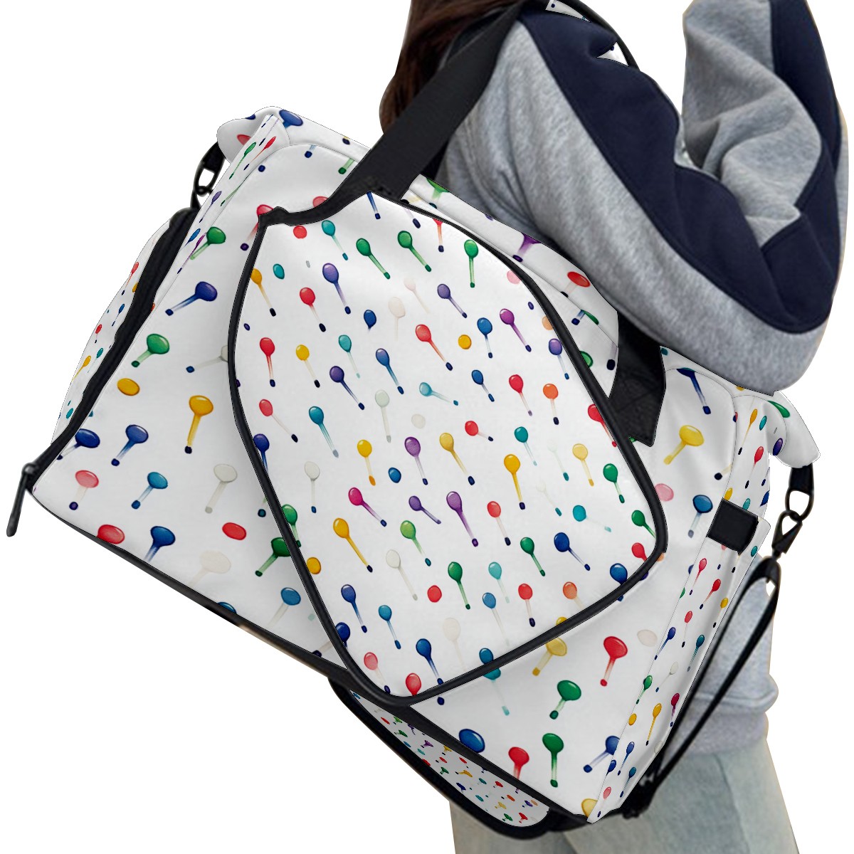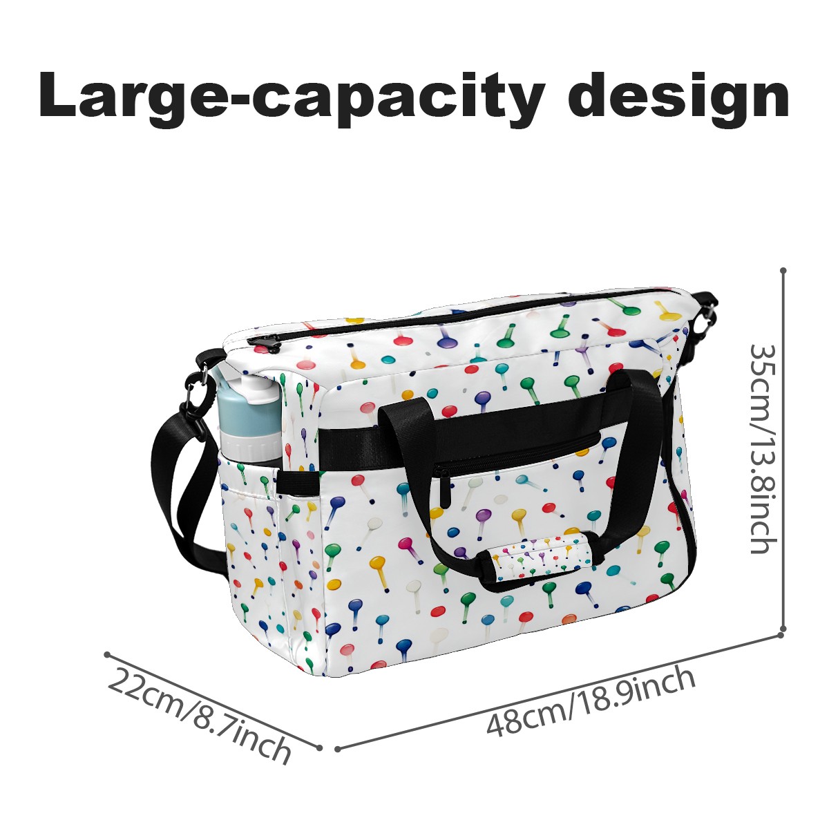 Lightweight Pickleball Tote Bag with Large Capacity, Shoe Compartment, Large Paddle Storage, Water Bottle Holder & Fence Hook for Women & Men Colorful Golf Tee Pattern