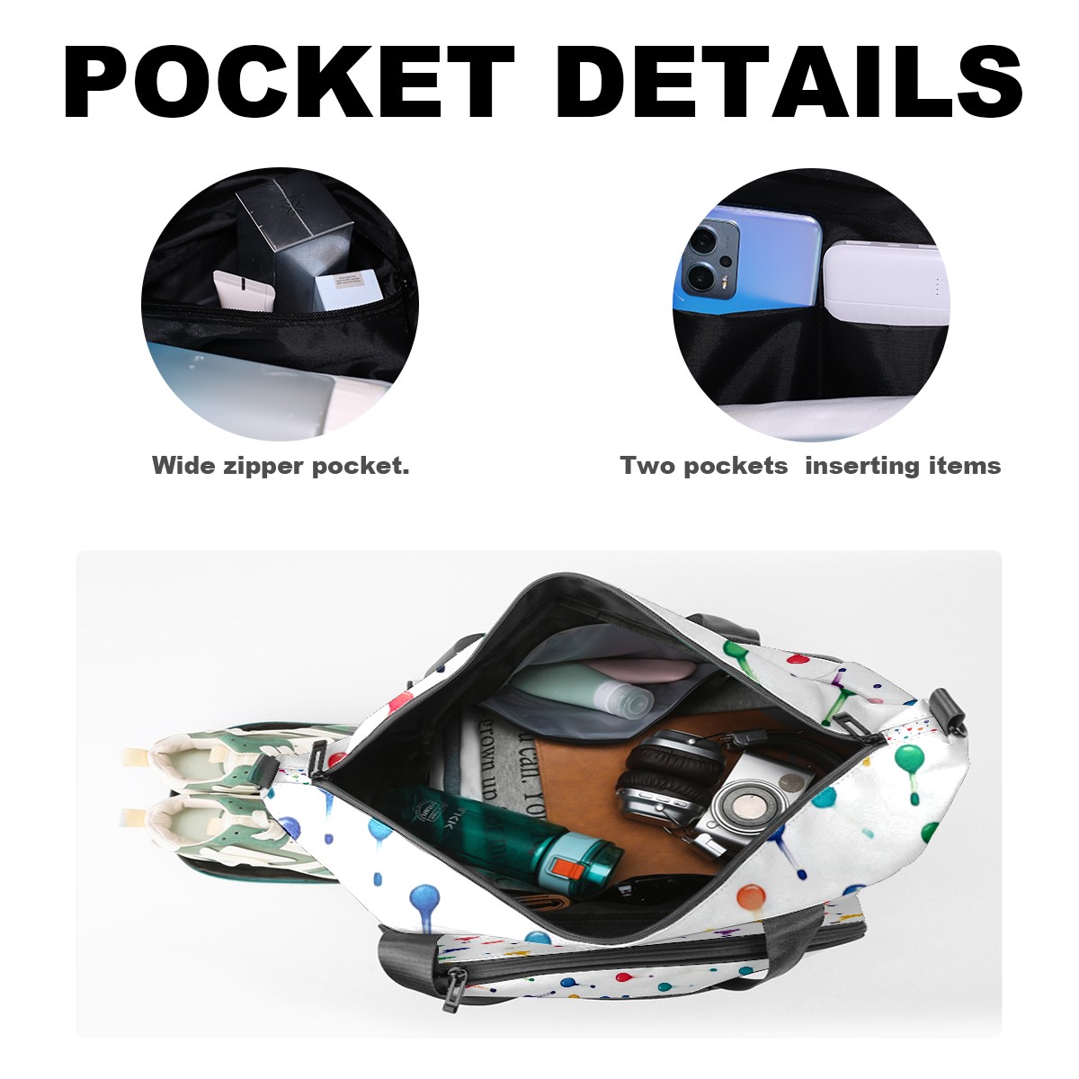 • <p>Multifunctional Gym Travel Bag Made of Twill Fabric 22cm x 48cm x 35cm (8.7in x 18.9in x 13.8in) Made of lightweight and durable twill fabric, this bag is perfect for an active lifestyle. The spacious main compartment easily holds clothing, towels, and a full set of gym gear. A smart pocket precisely stores your phone, earphones, and gym membership card. A ventilated shoe compartment can hold size 10 athletic shoes, and a waterproof wet bag isolates swimwear or sweaty clothing, effectively preventing odors and clutter. It's a professional gym bag suitable for spinning and strength training, a stylish everyday handbag, and can also meet diverse needs such as pickleball, weekend trips, and overnight stays. Combining functionality and style, it seamlessly integrates into various scenarios.<br></p>