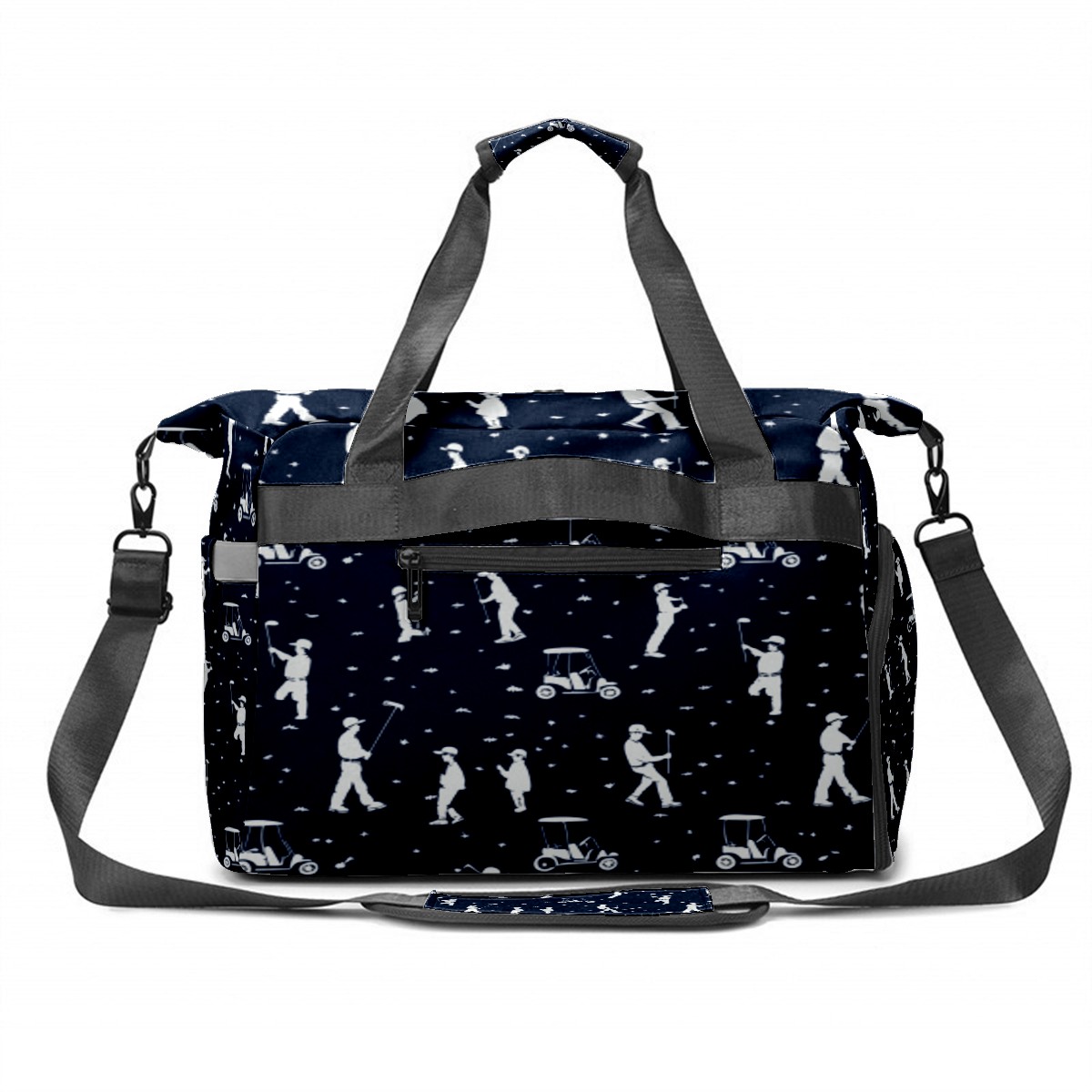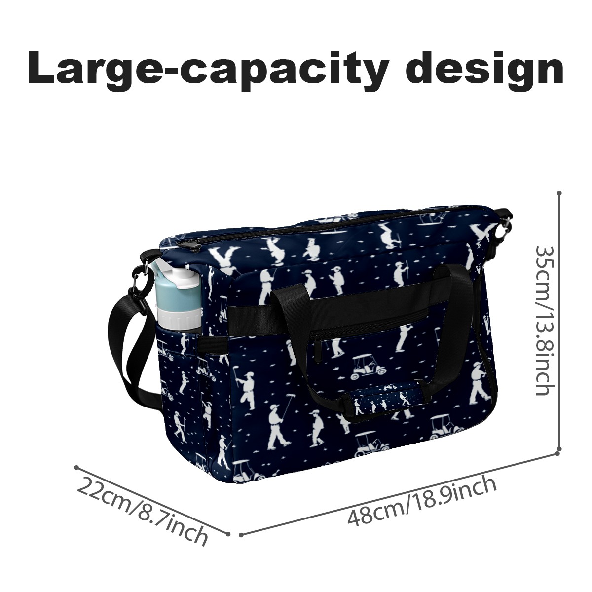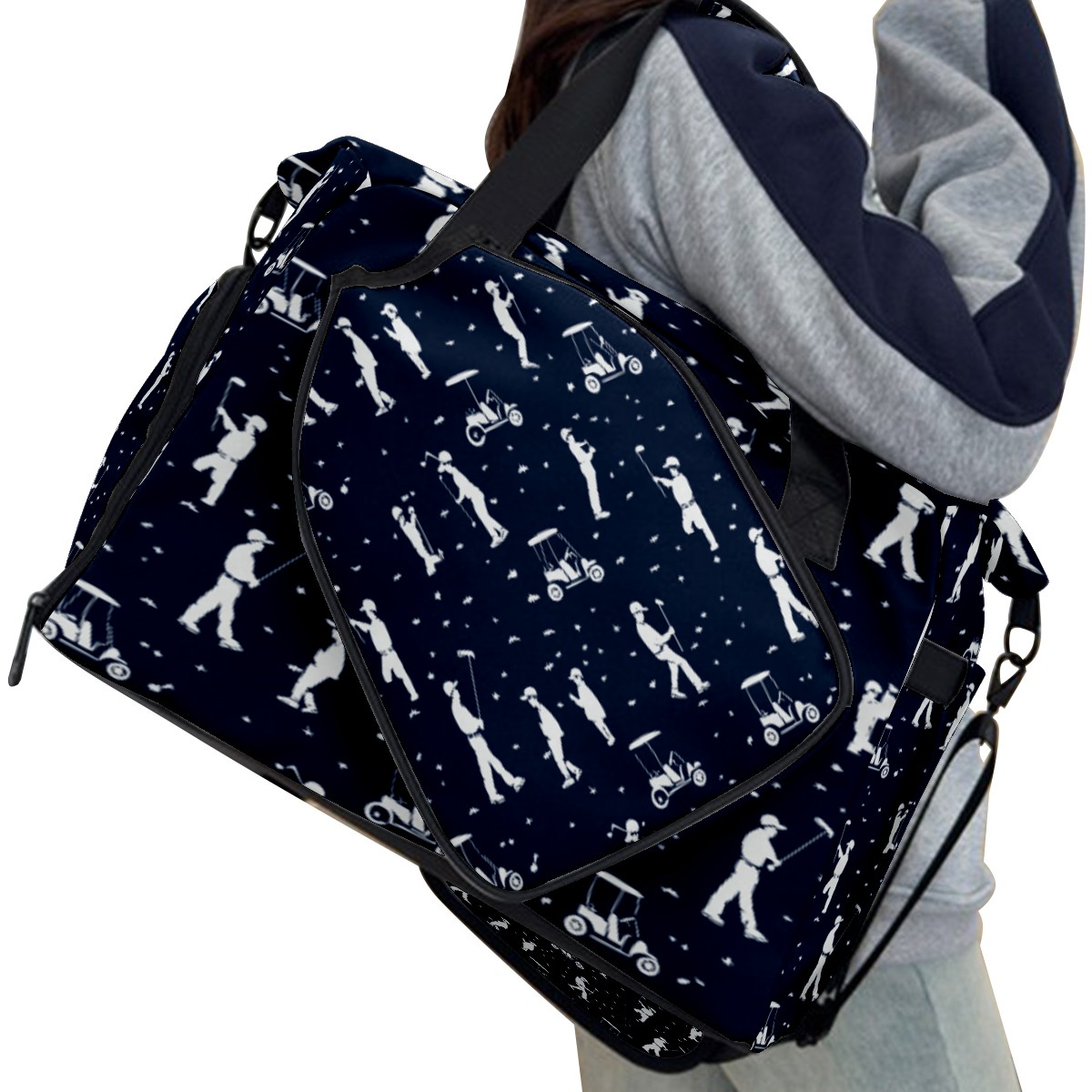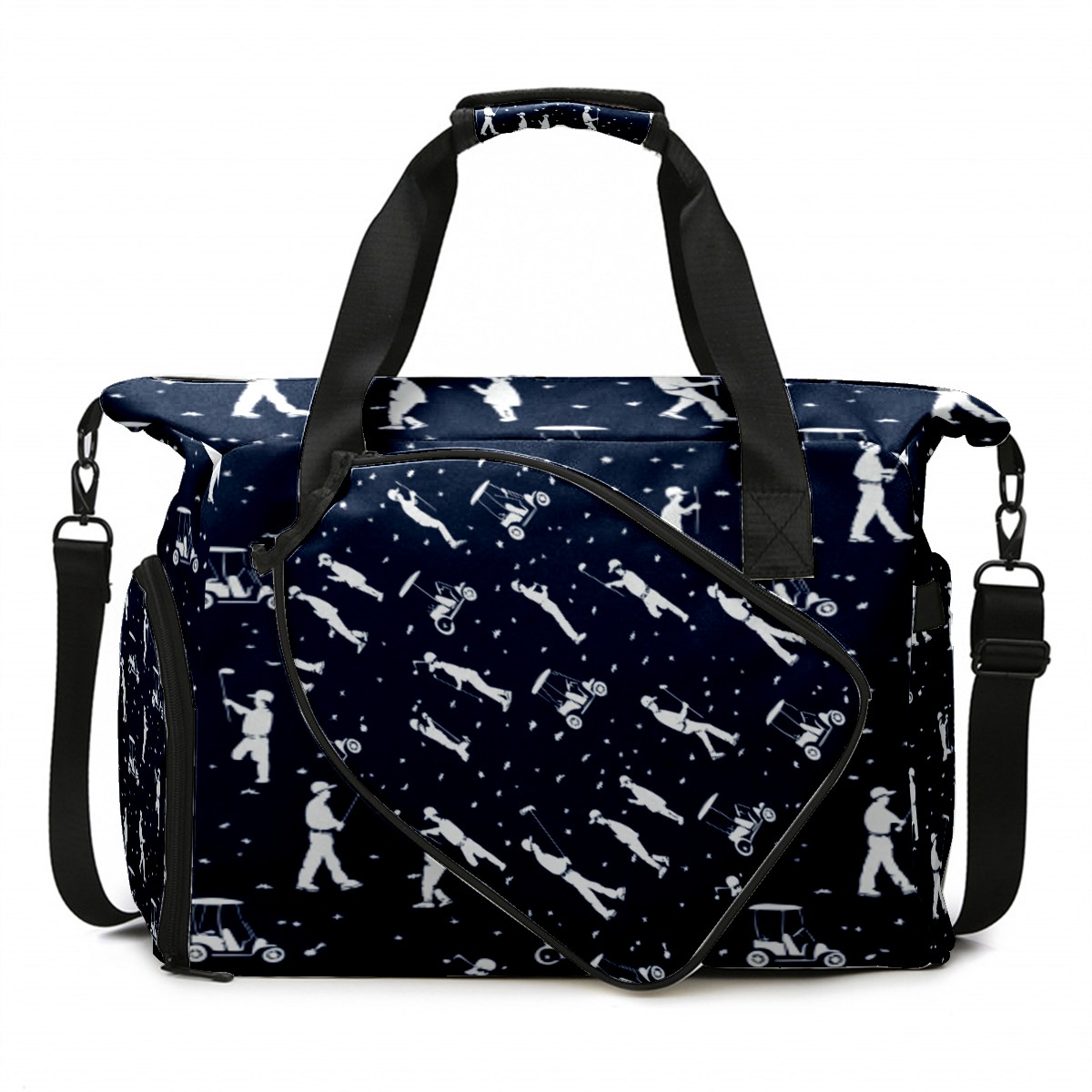 Lightweight Pickleball Tote Bag with Large Capacity, Shoe Compartment, Large Paddle Storage, Water Bottle Holder & Fence Hook for Women & Men Blue Golfers Poses Pattern