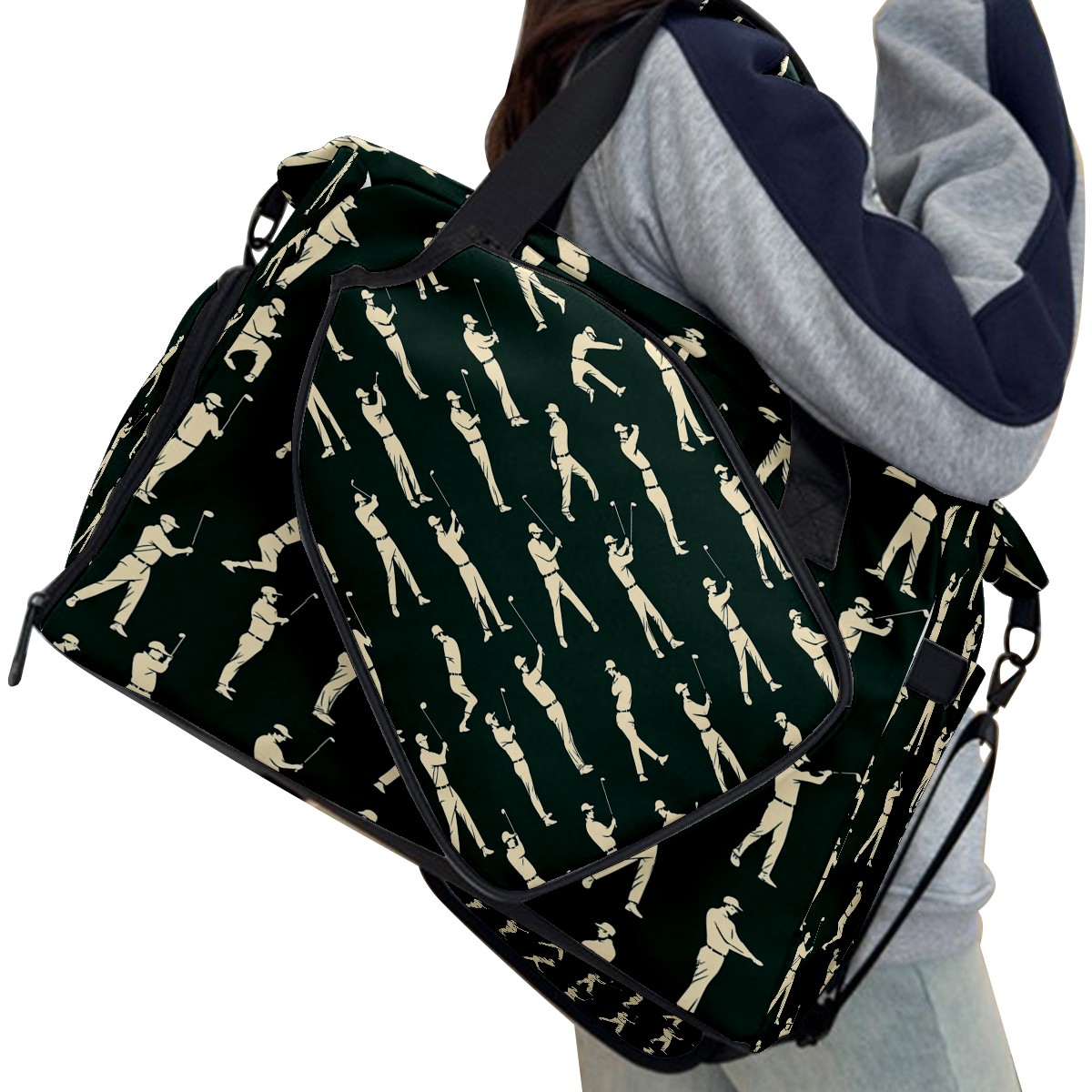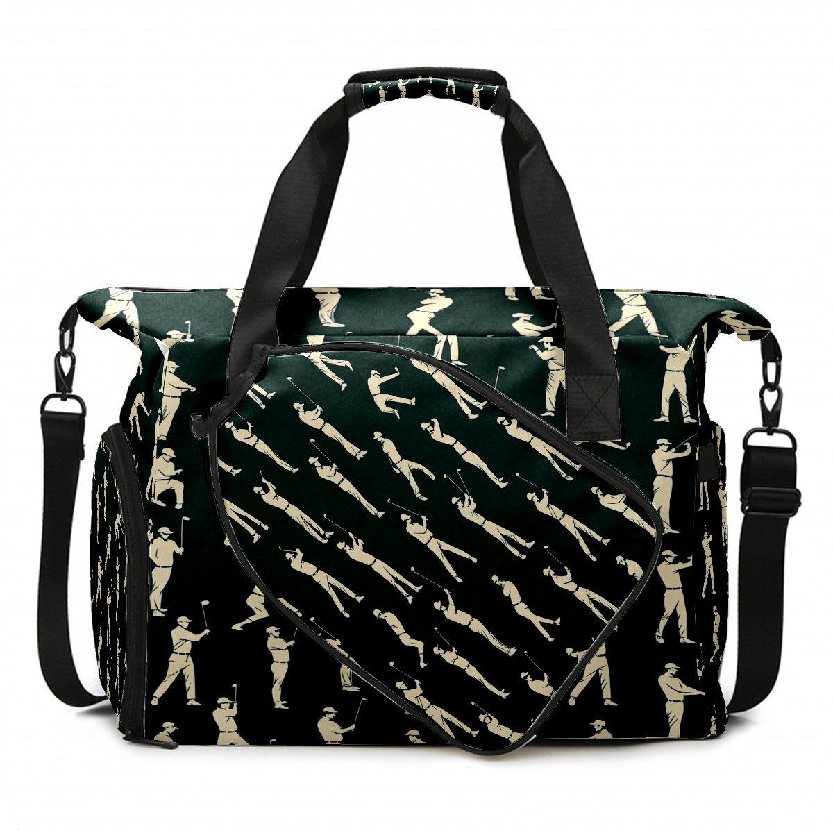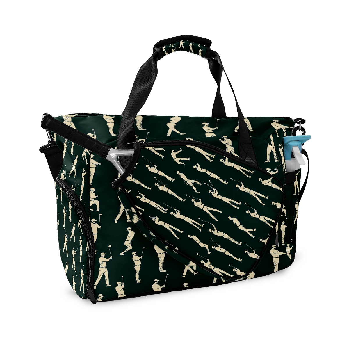 Lightweight Pickleball Tote Bag with Large Capacity, Shoe Compartment, Large Paddle Storage, Water Bottle Holder & Fence Hook for Women & Men Green Golfers Poses Pattern