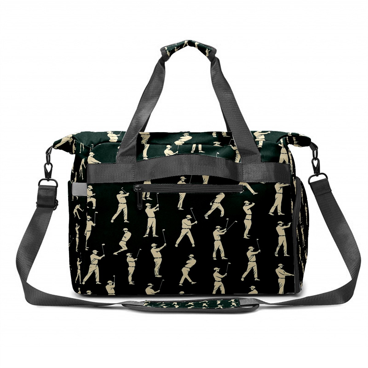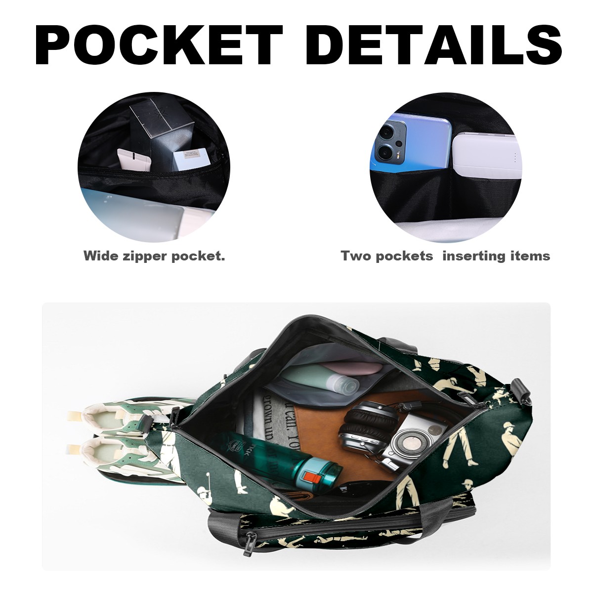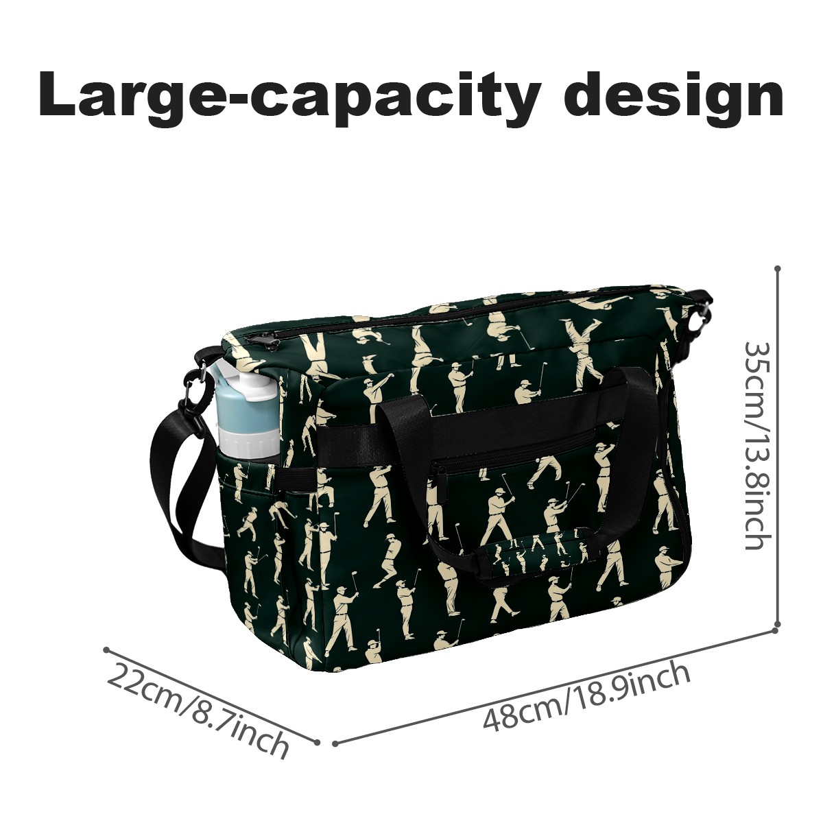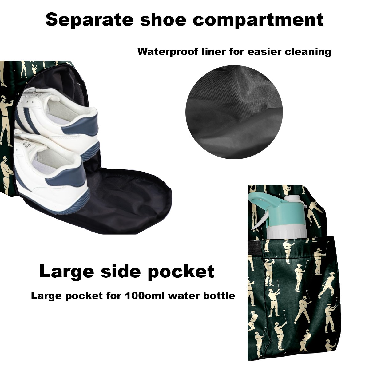 Lightweight Pickleball Tote Bag with Large Capacity, Shoe Compartment, Large Paddle Storage, Water Bottle Holder & Fence Hook for Women & Men Green Golfers Poses Pattern