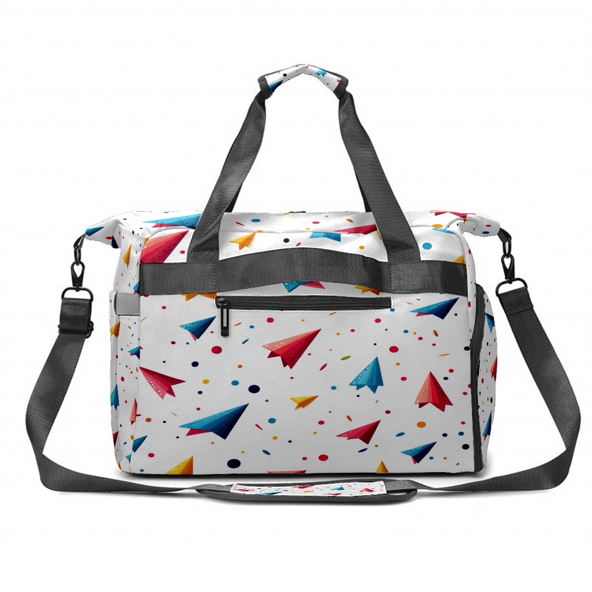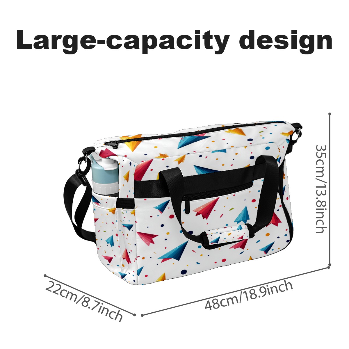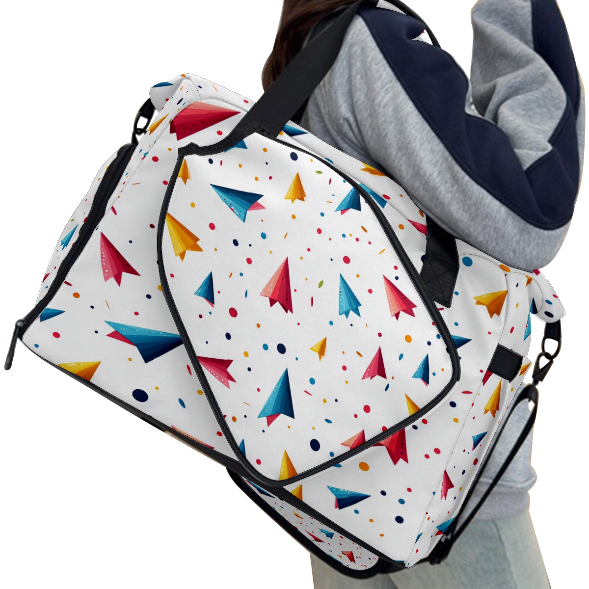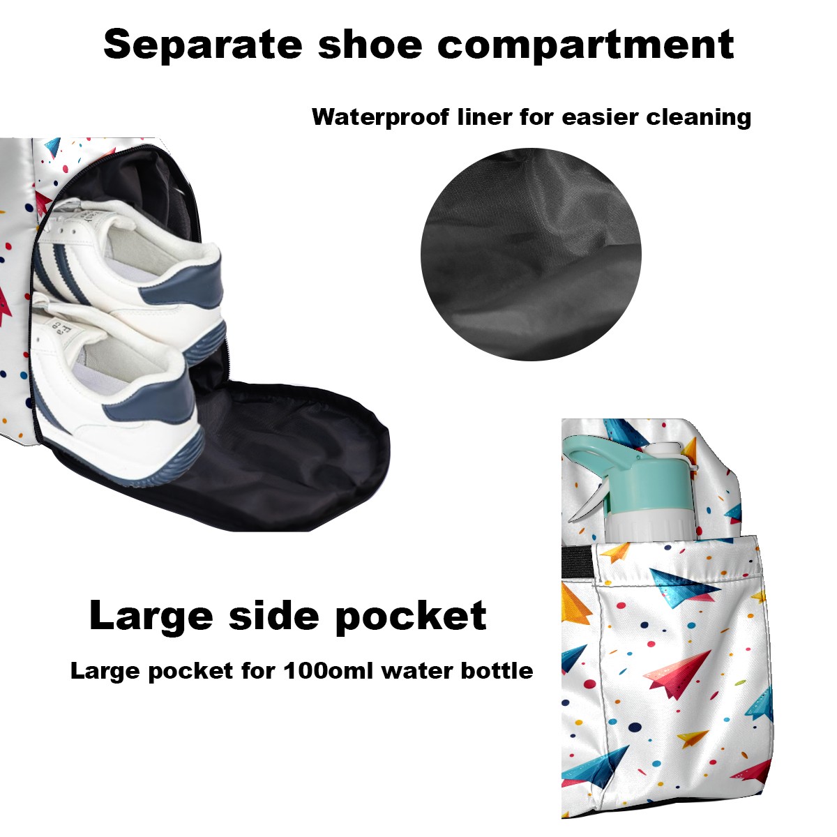 Lightweight Pickleball Tote Bag with Large Capacity, Shoe Compartment, Large Paddle Storage, Water Bottle Holder & Fence Hook for Women & Men Colored Paper Airplane Pattern