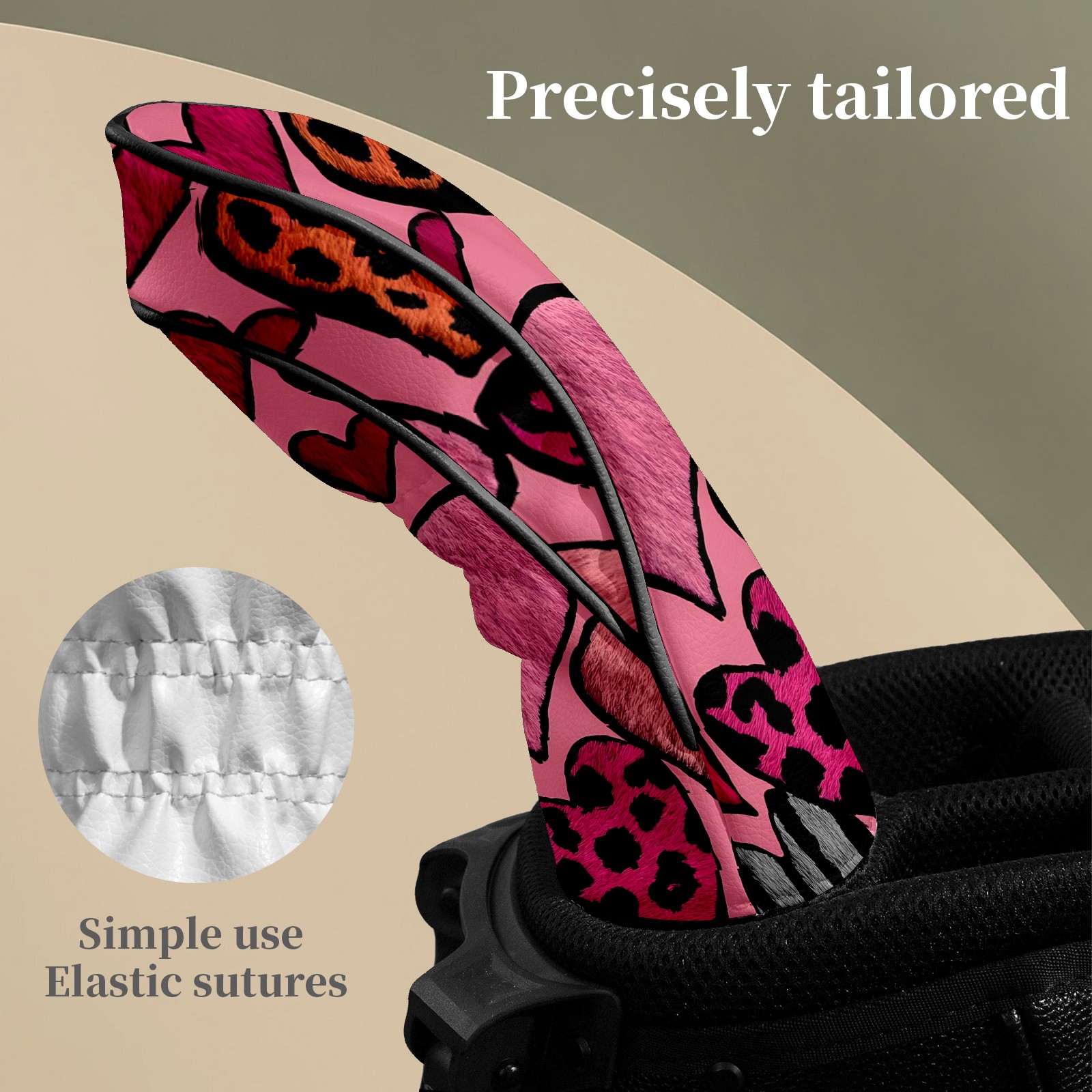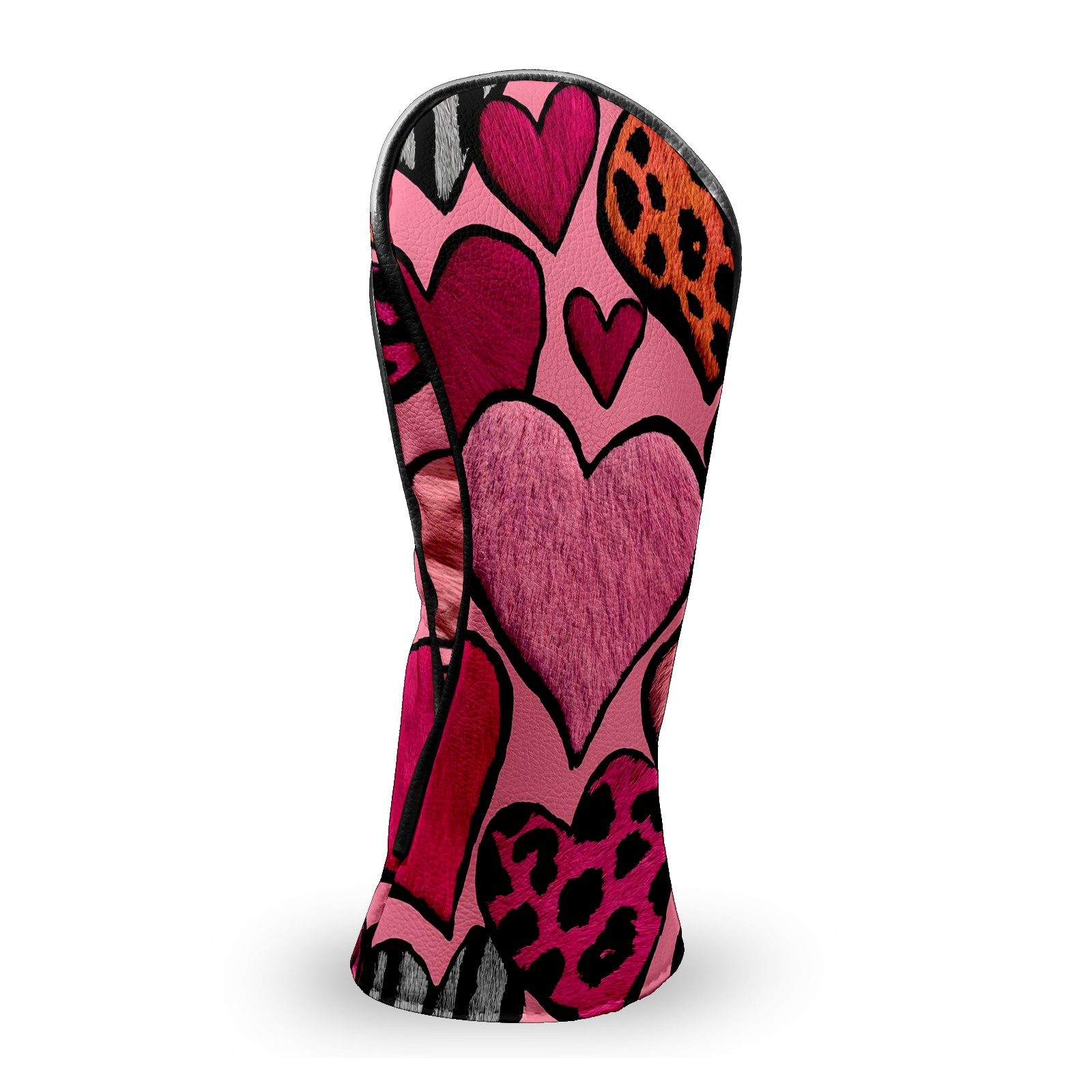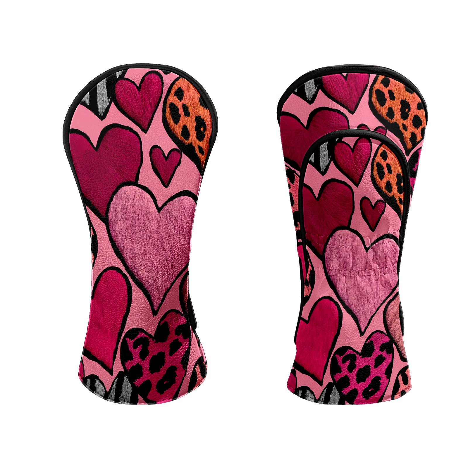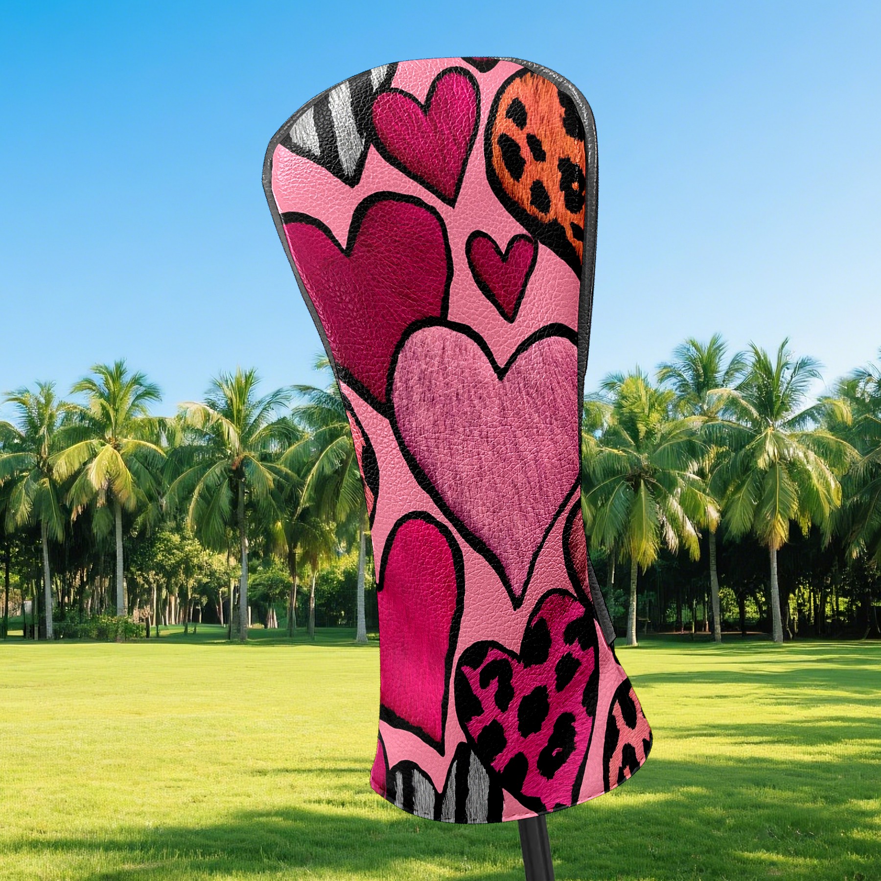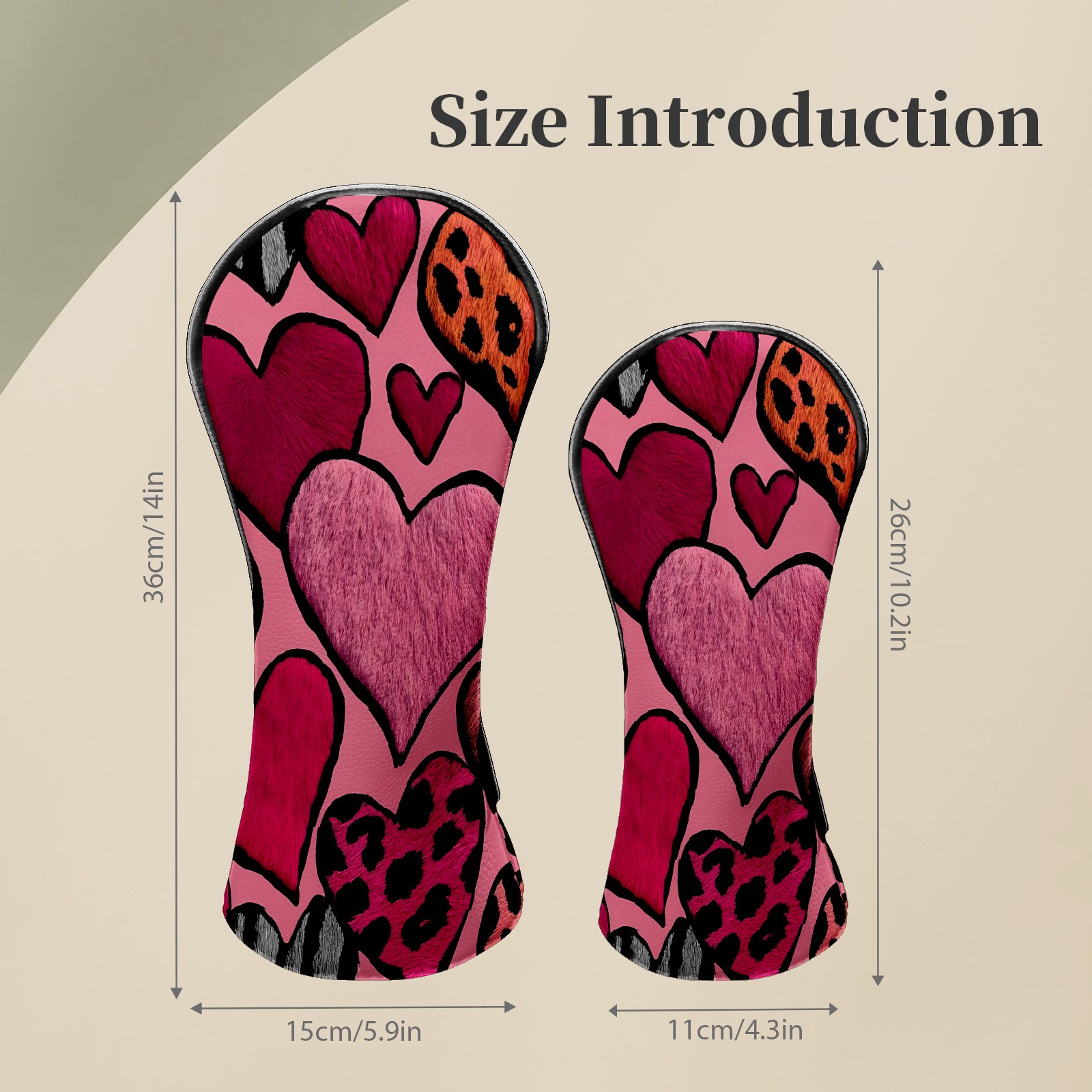 Golf Club Head Covers – Romantic Heart Pink with Soft Plush Lining, Waterproof PU Leather for Driver & Fairway Woods | Durable, No-Slip Elastic Fit | Novelty Gift for Men & Women