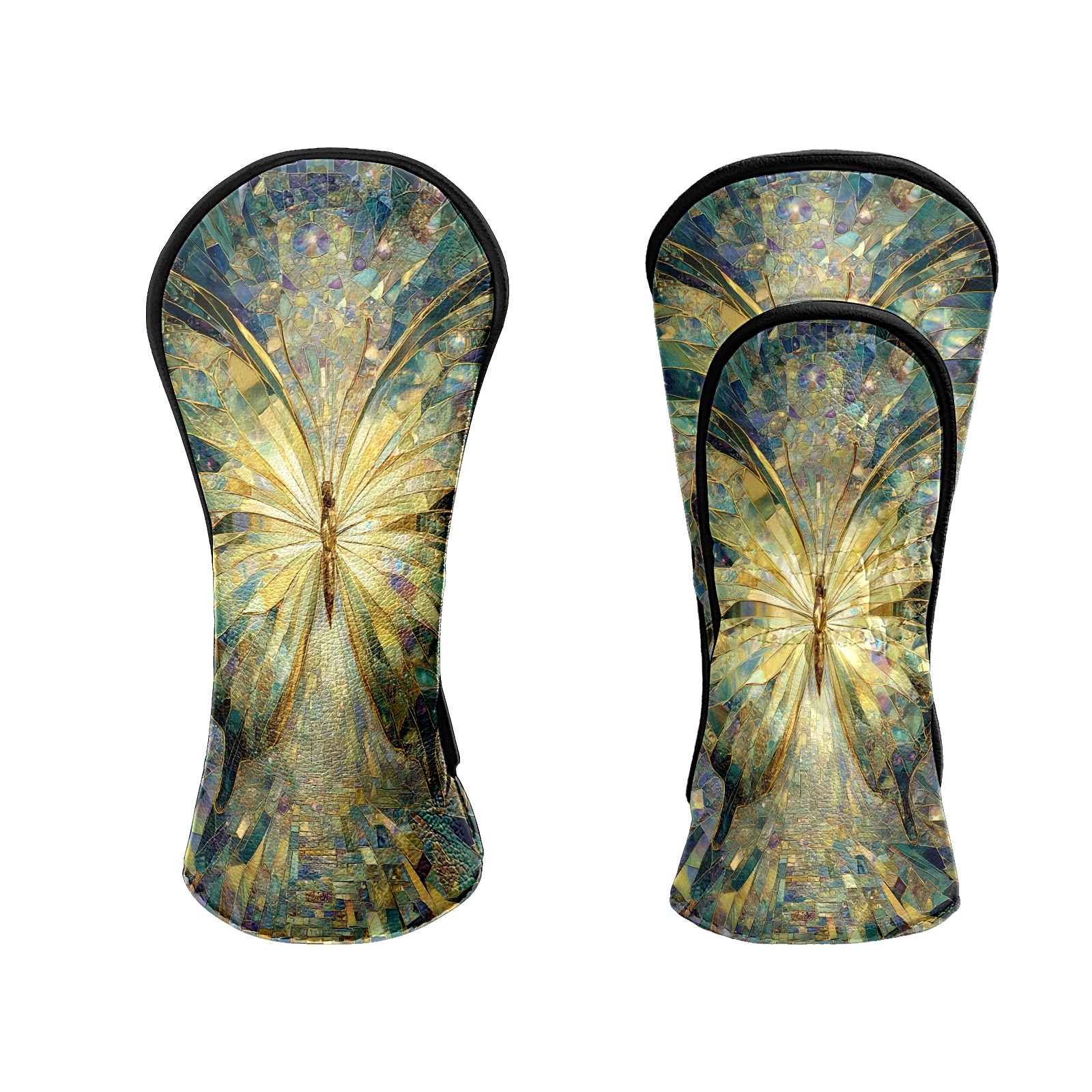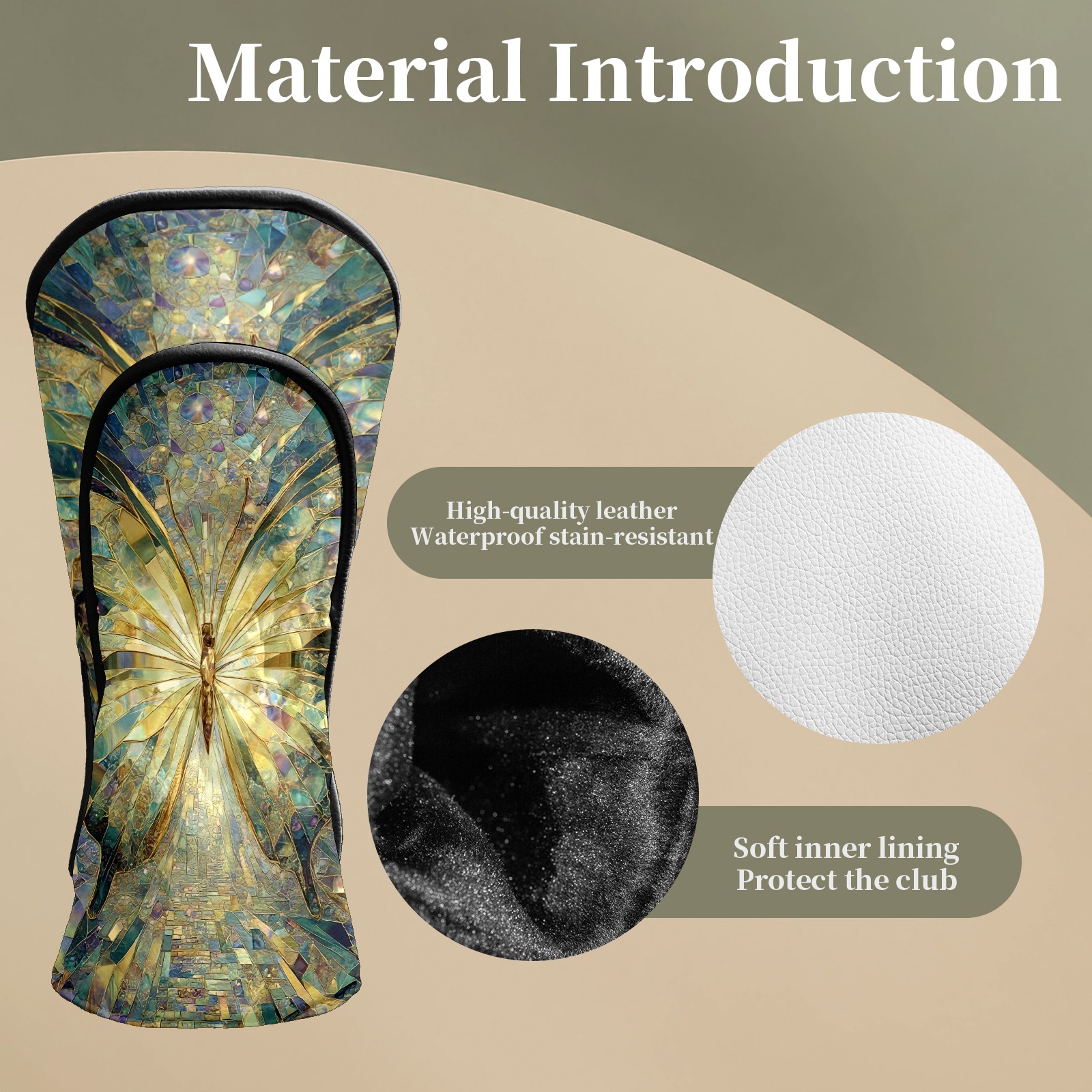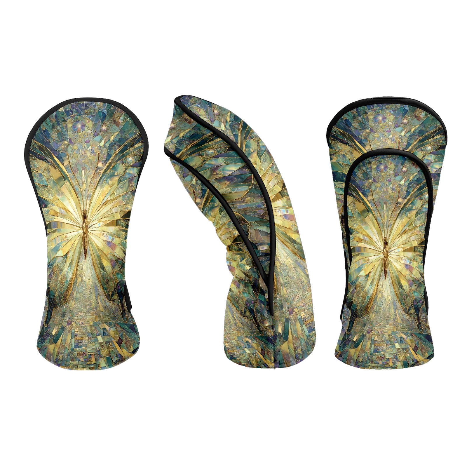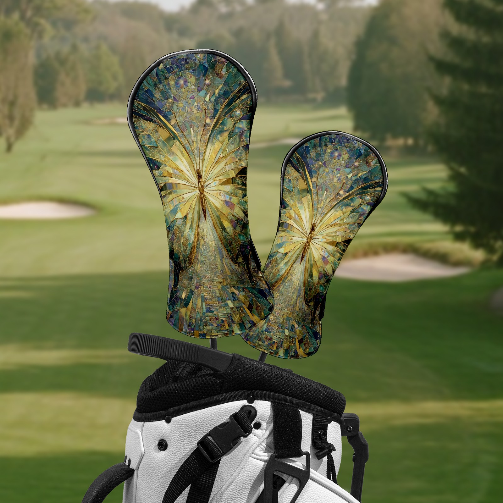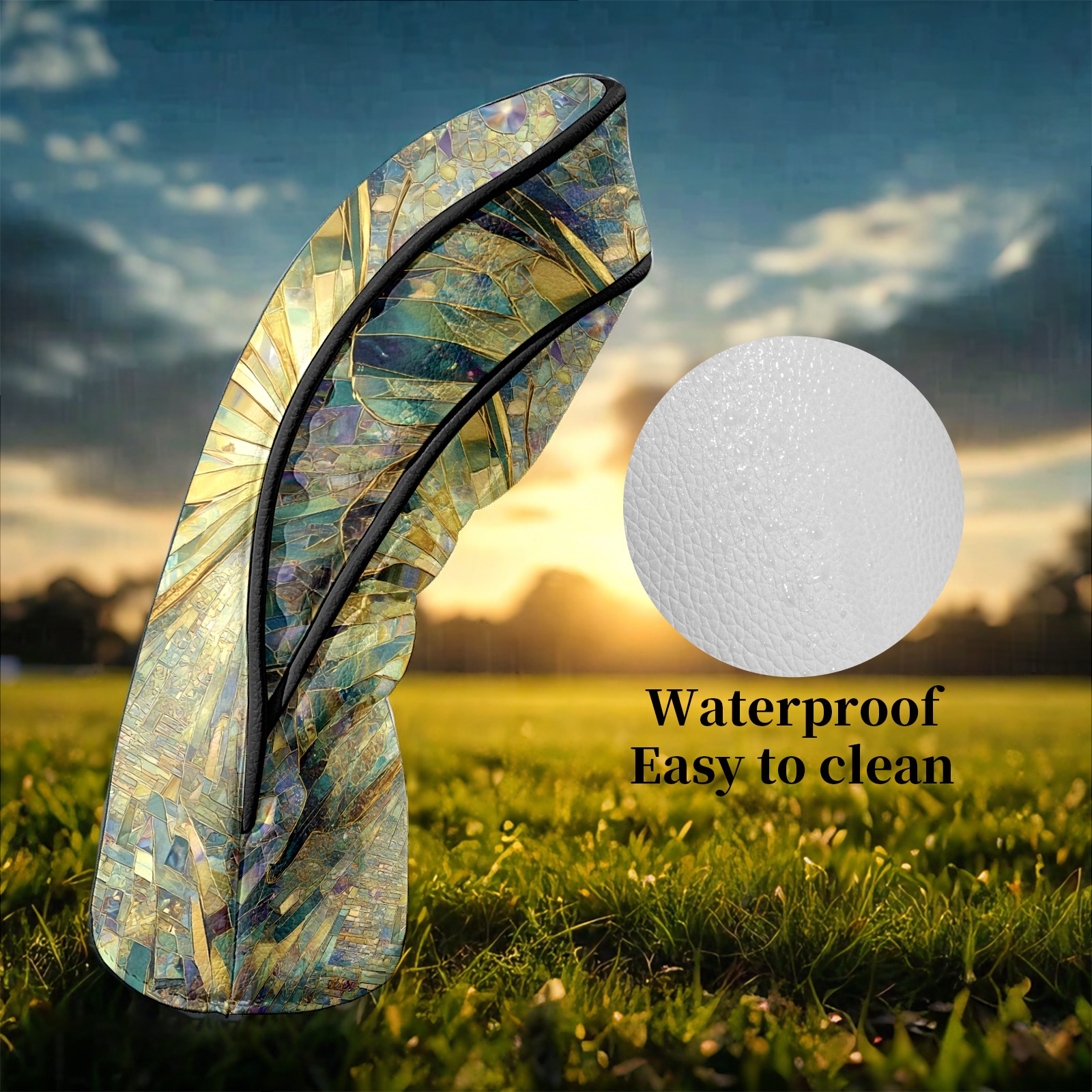 Golf Club Head Covers – Brilliant Starburst Gold with Soft Plush Lining, Waterproof PU Leather for Driver & Fairway Woods | Durable, No-Slip Elastic Fit | Novelty Gift for Men & Women