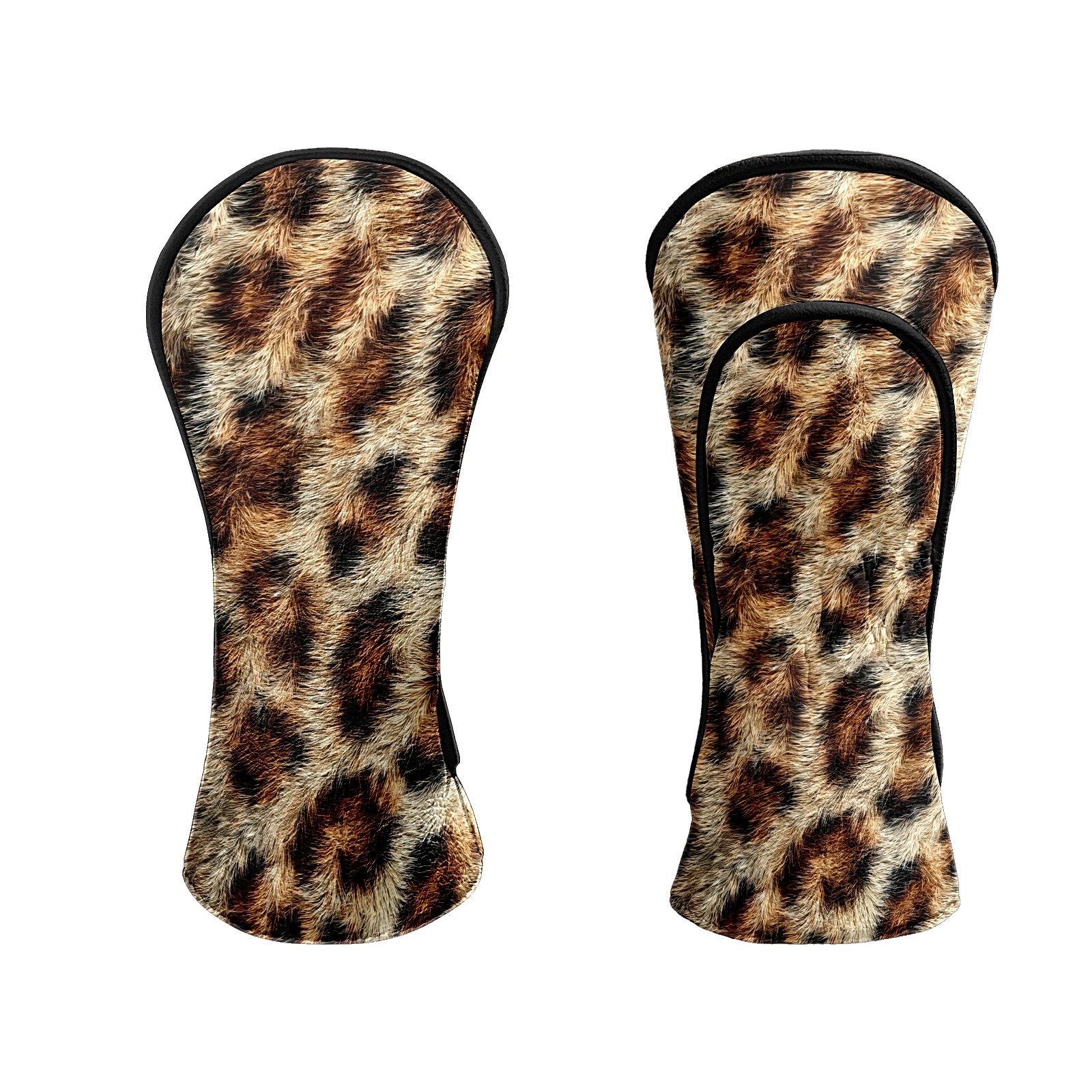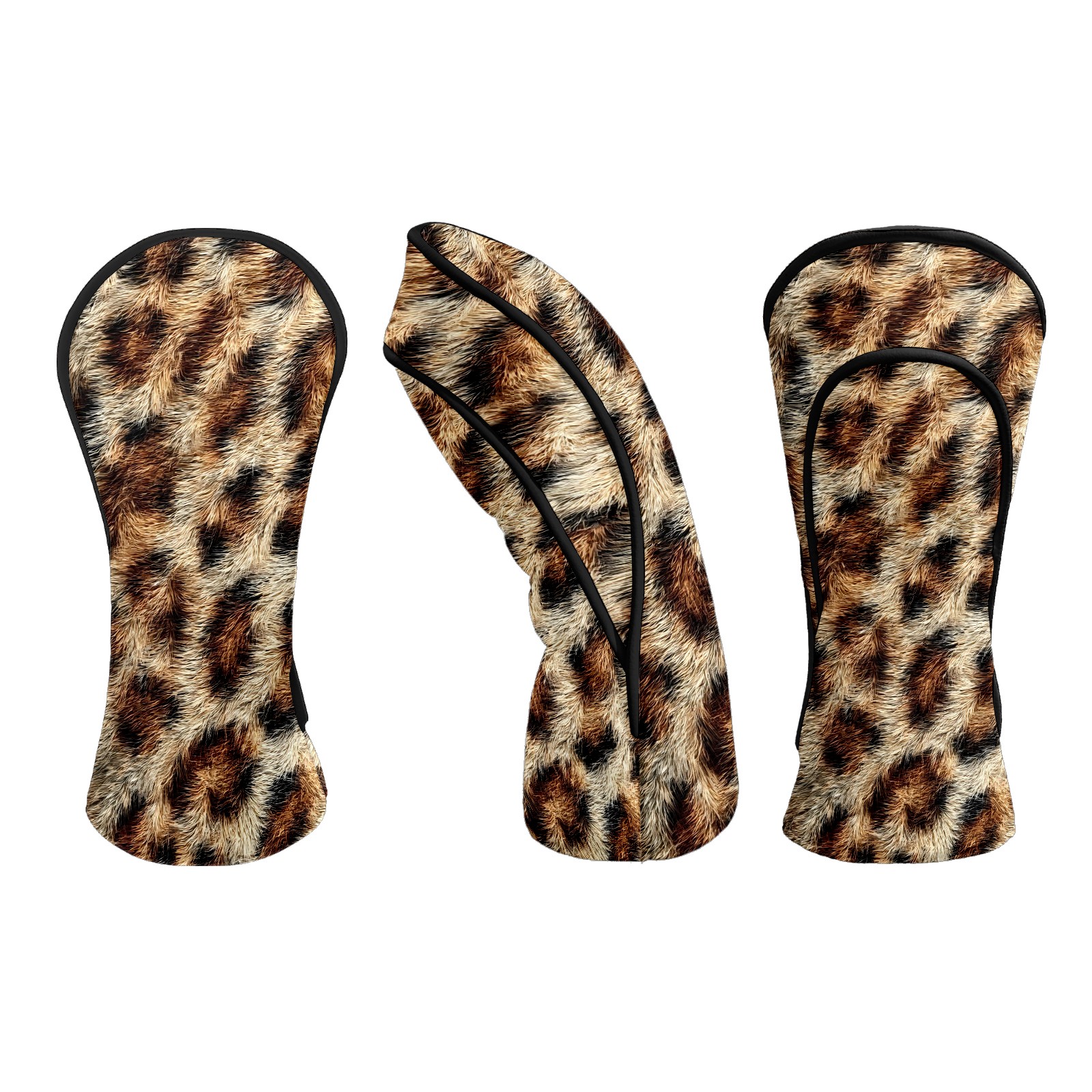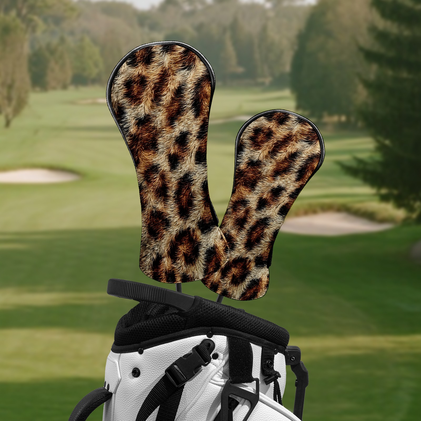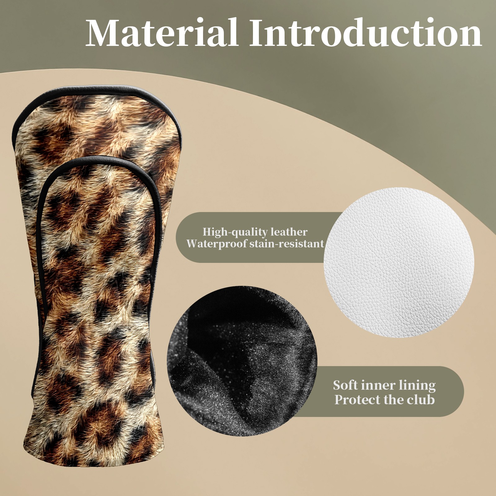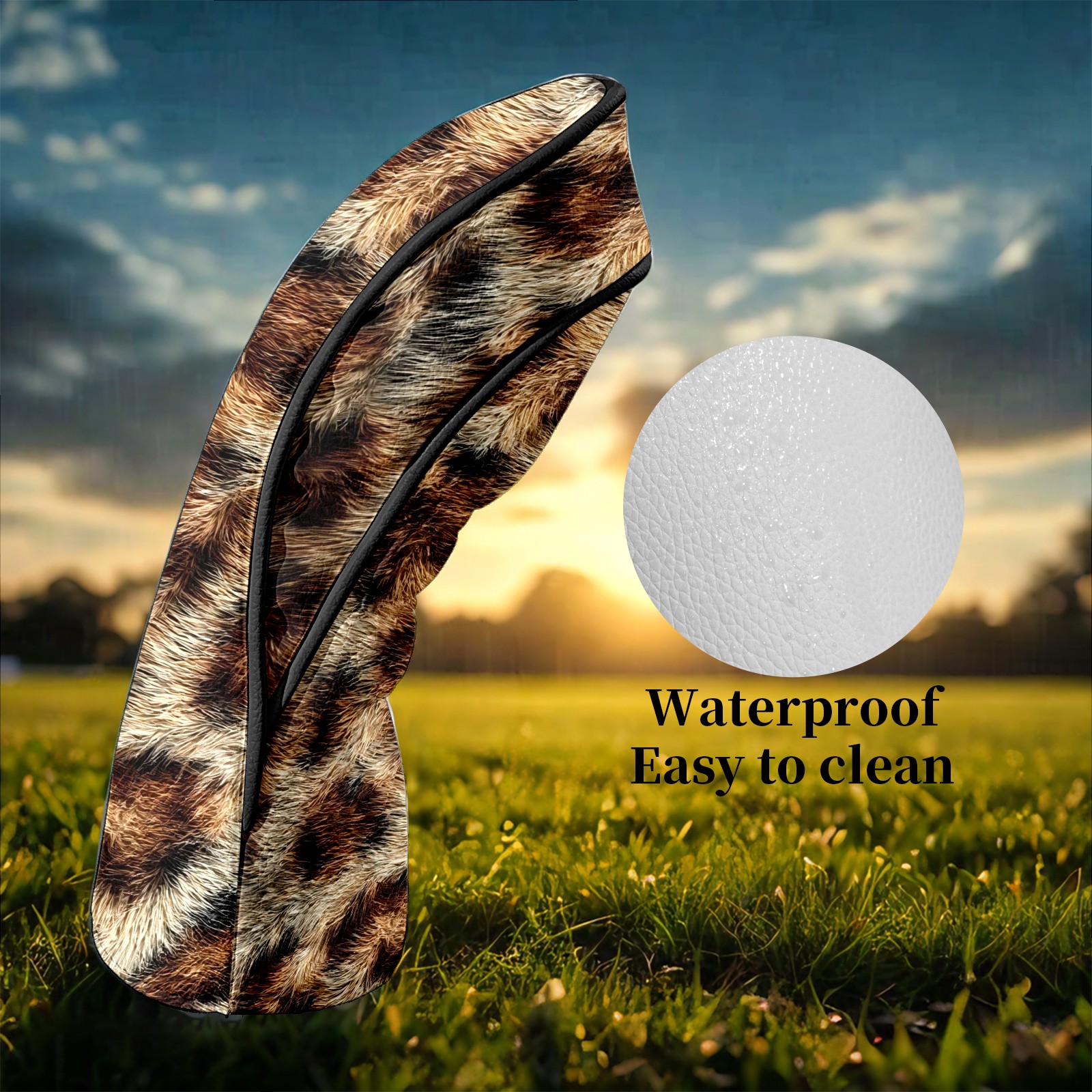 Golf Club Head Covers – Wild Leopard Brown with Soft Plush Lining, Waterproof PU Leather for Driver & Fairway Woods | Durable, No-Slip Elastic Fit | Novelty Gift for Men & Women