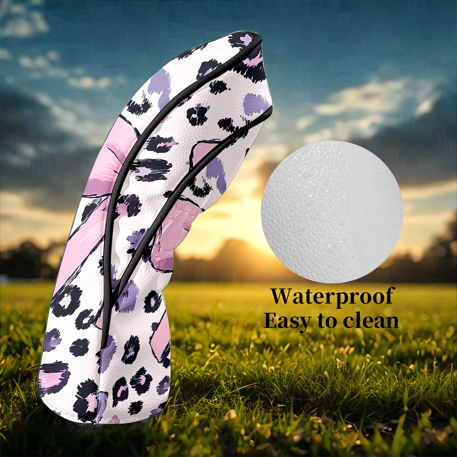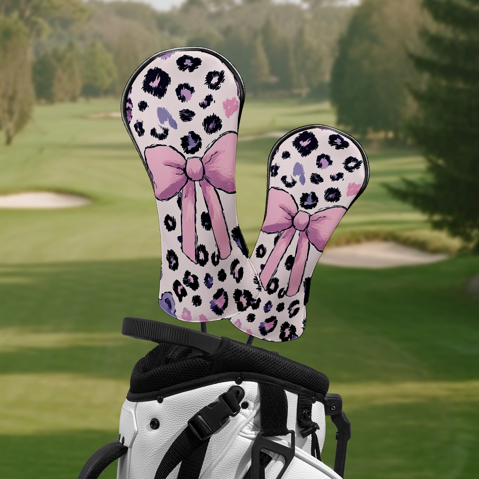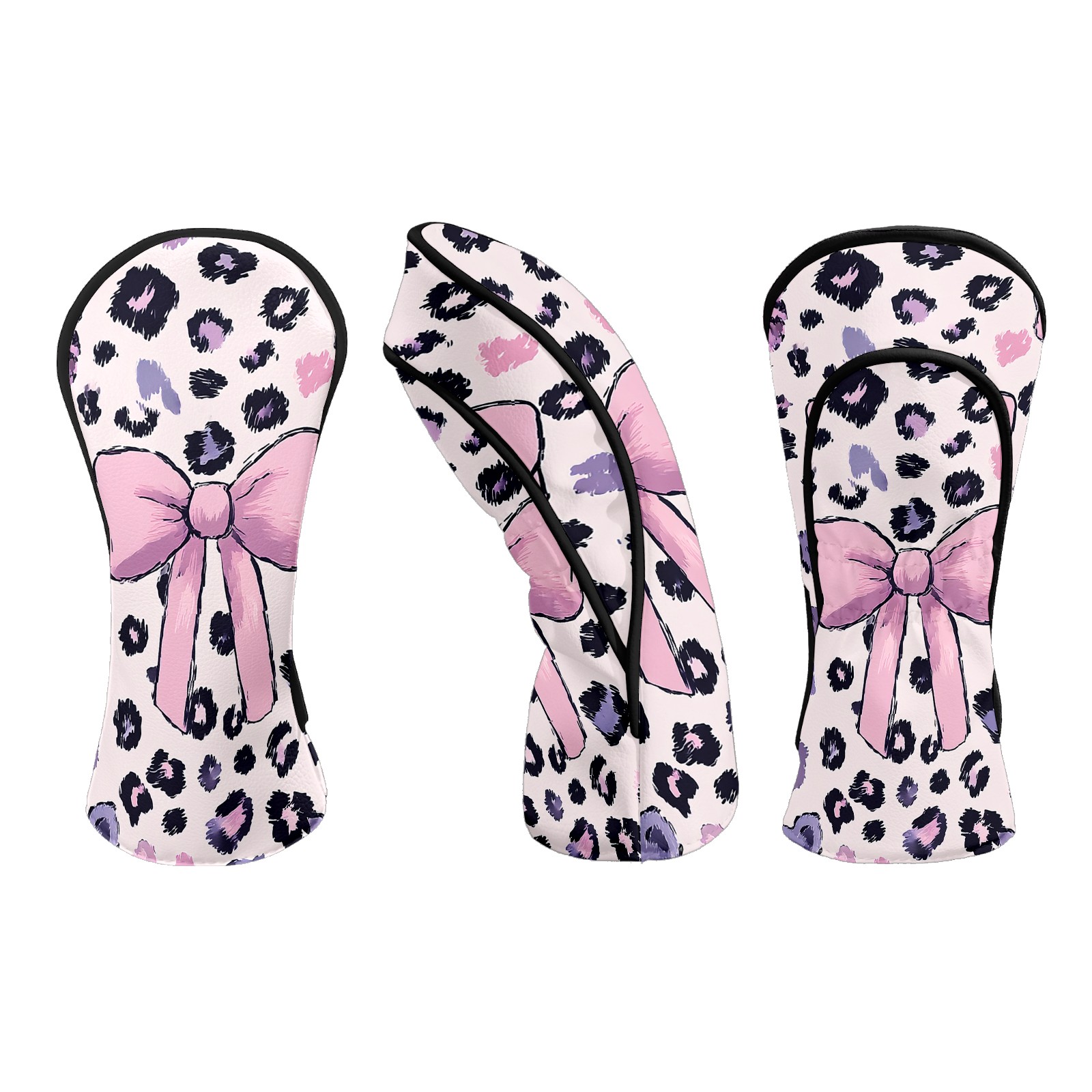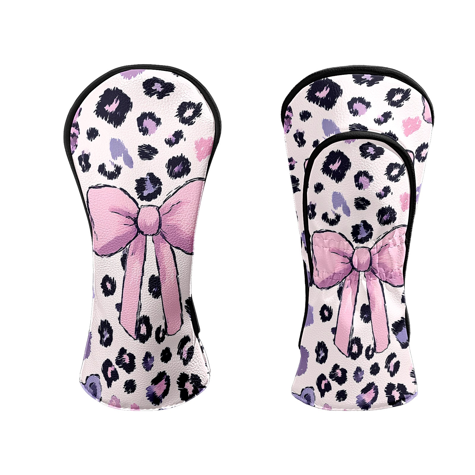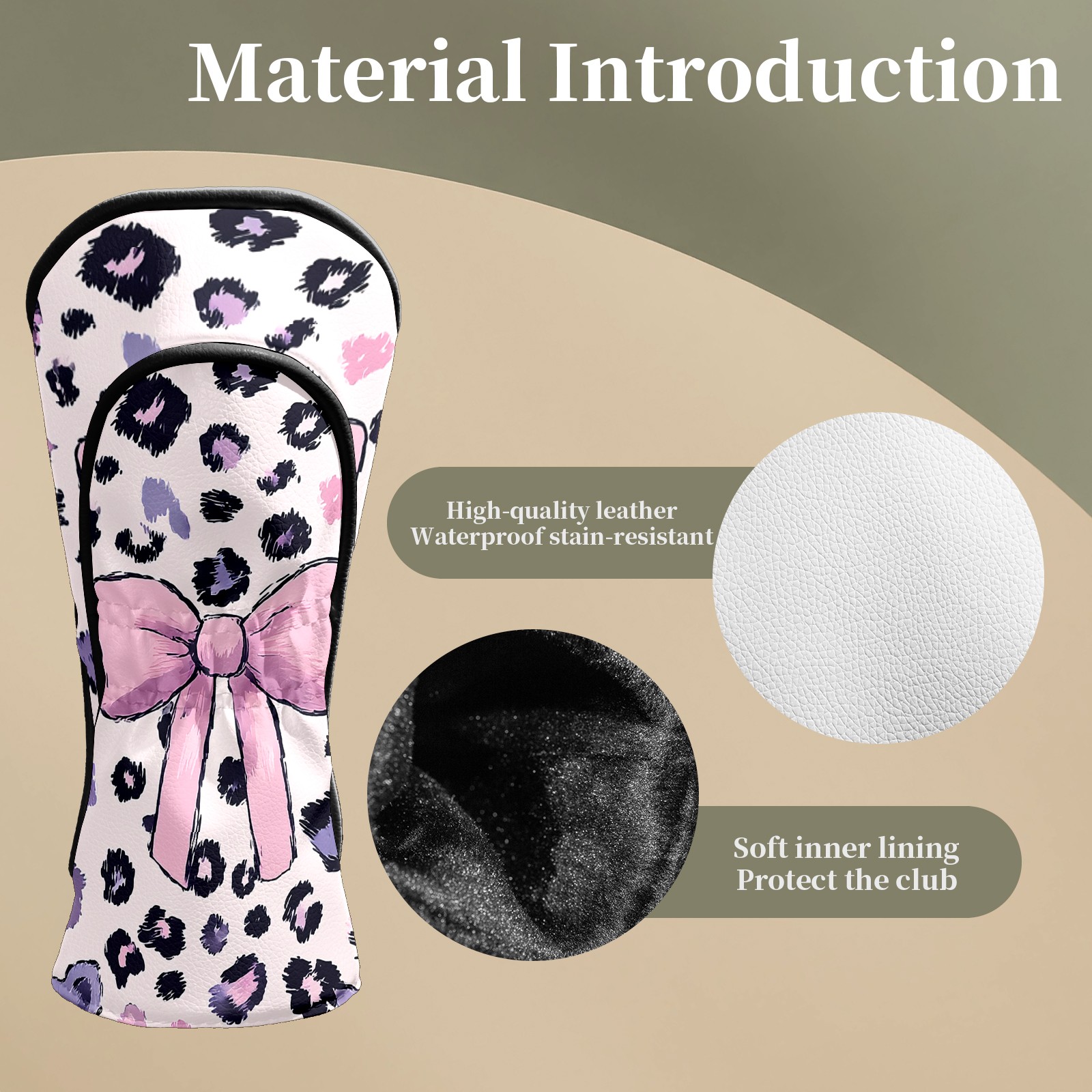 Golf Club Head Covers – Sweet Bow Pink with Soft Plush Lining, Waterproof PU Leather for Driver & Fairway Woods | Durable, No-Slip Elastic Fit | Novelty Gift for Men & Women