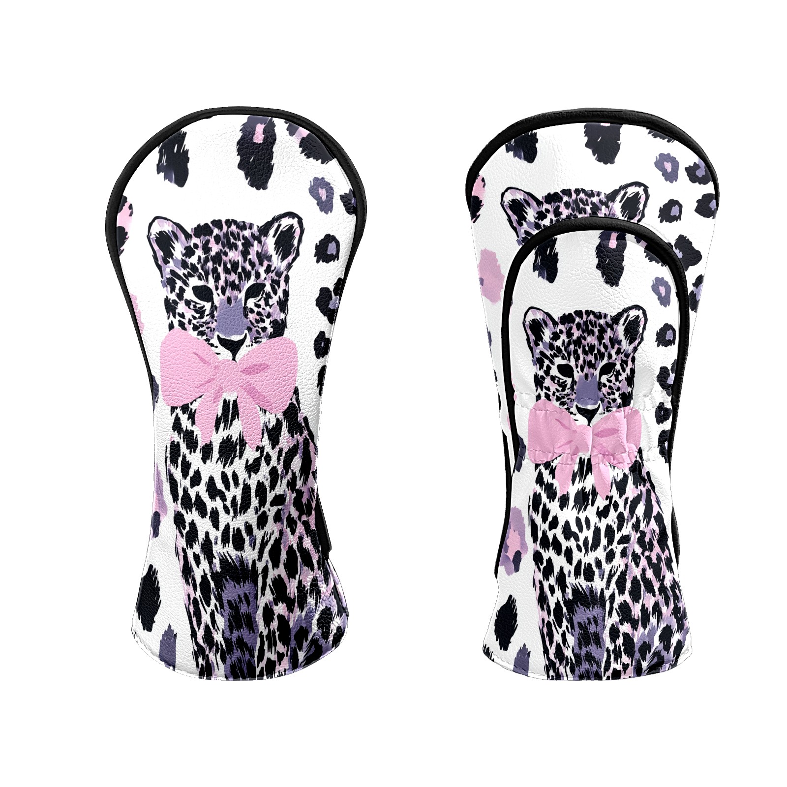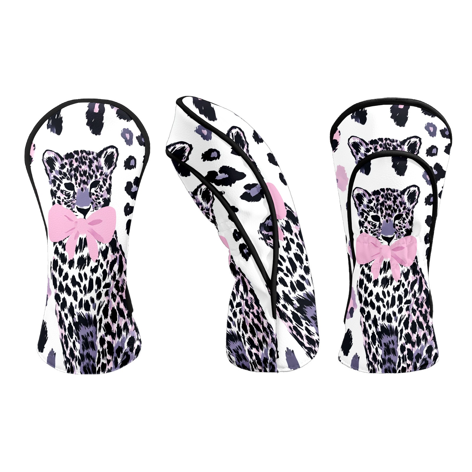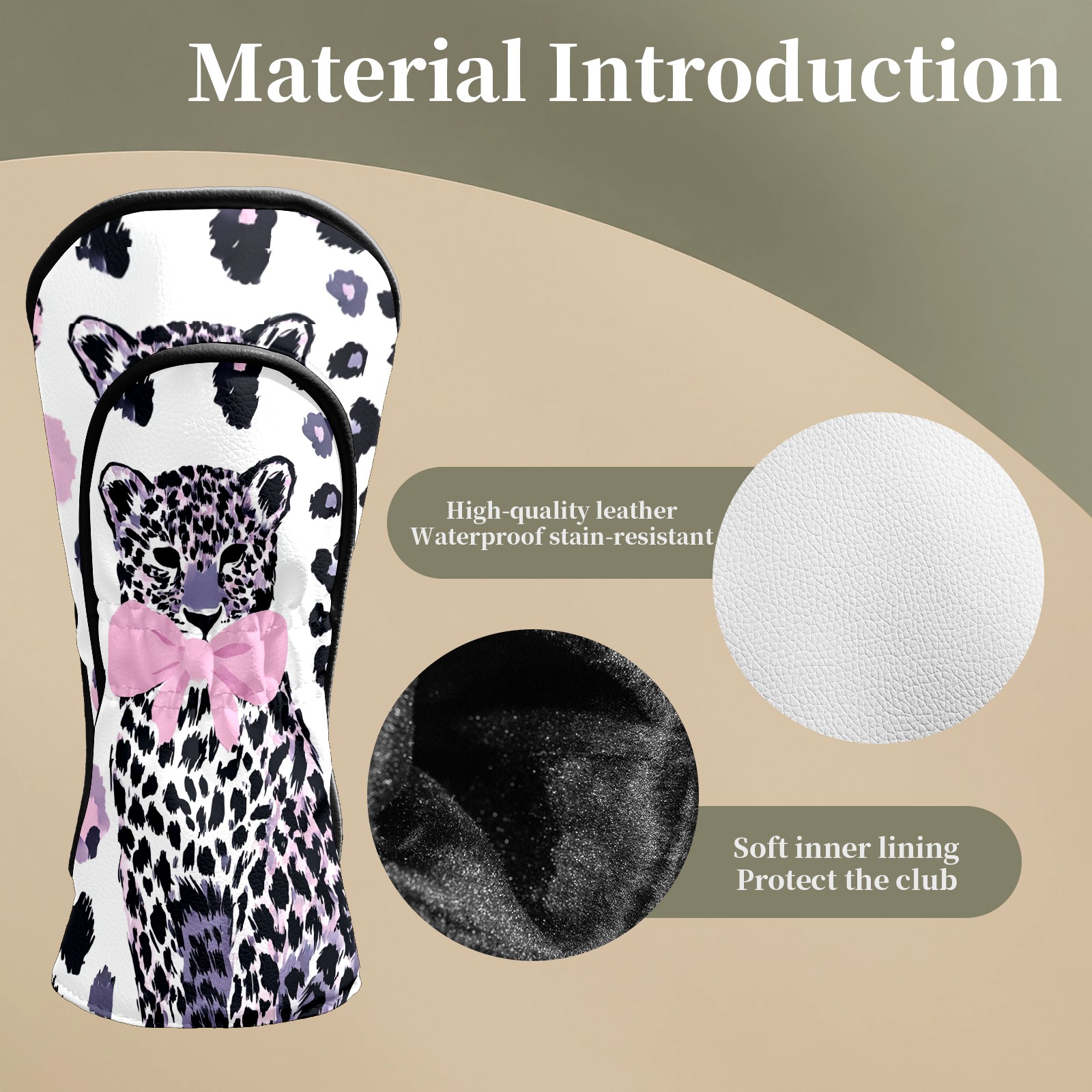 Golf Club Head Covers – Elegant Leopard Pink with Soft Plush Lining, Waterproof PU Leather for Driver & Fairway Woods | Durable, No-Slip Elastic Fit | Novelty Gift for Men & Women