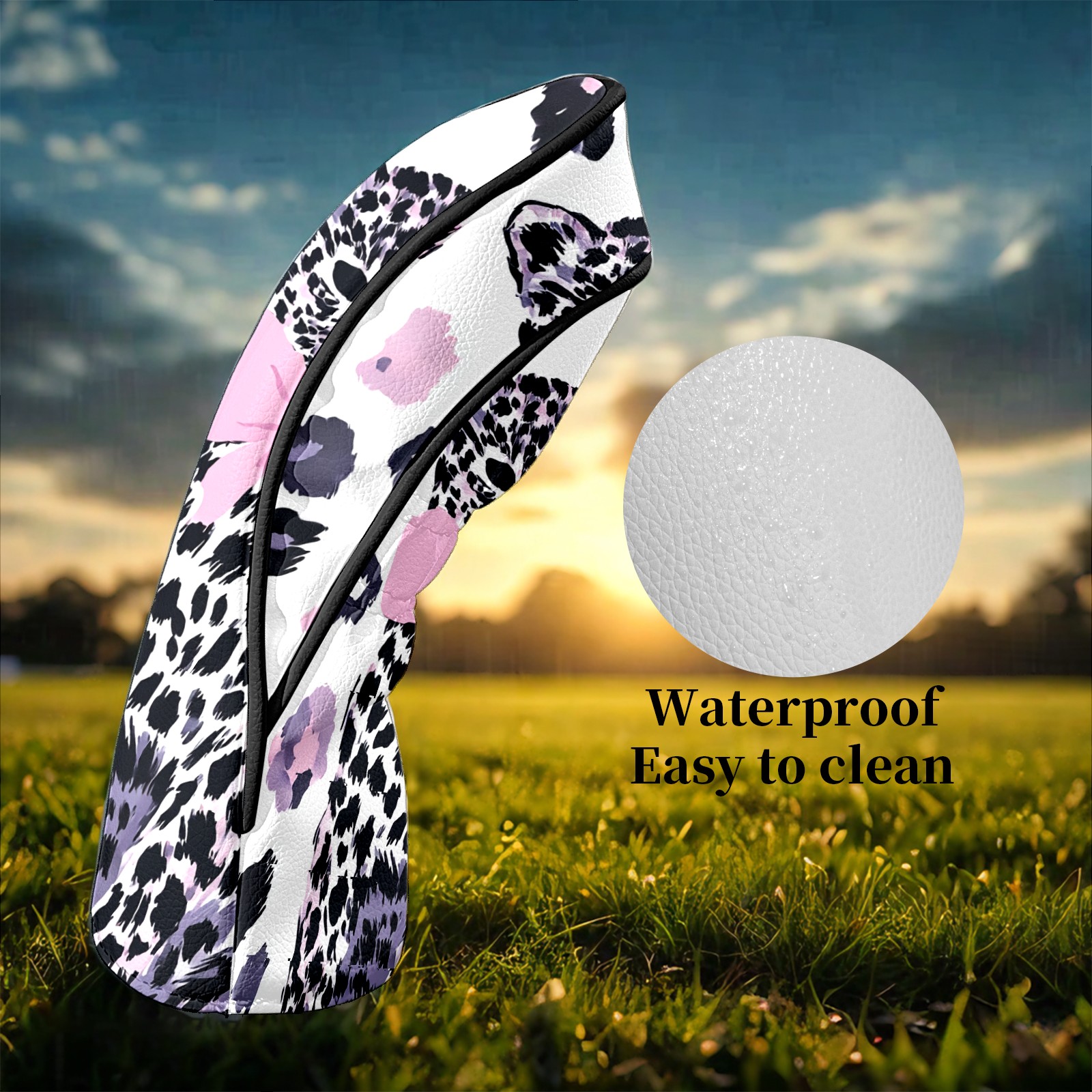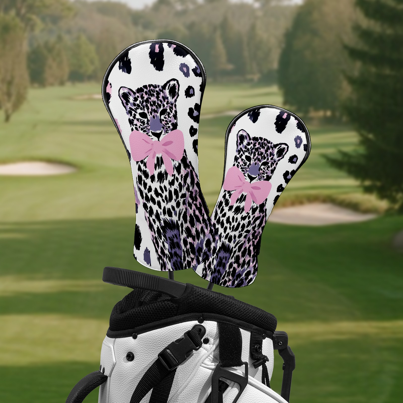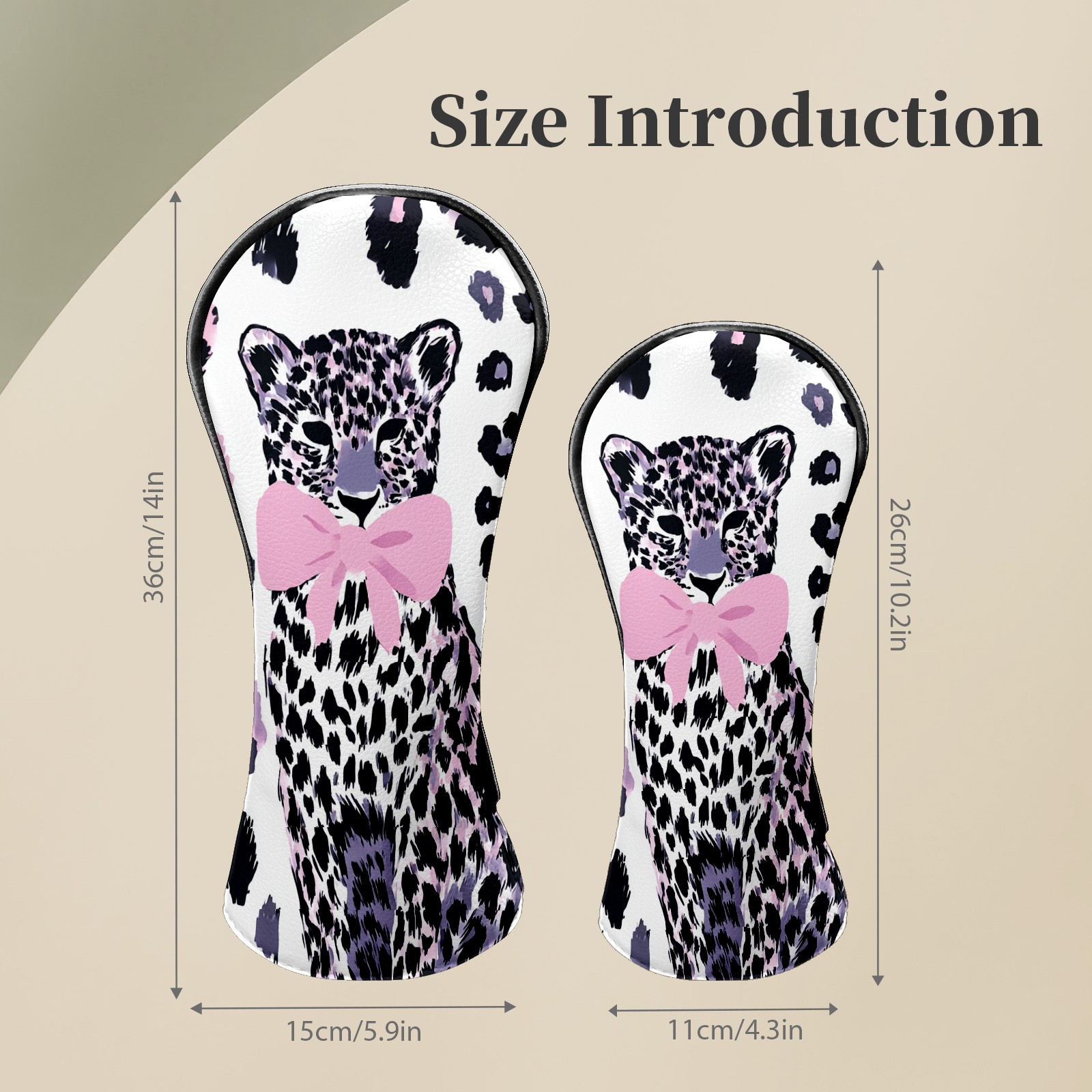 Golf Club Head Covers – Elegant Leopard Pink with Soft Plush Lining, Waterproof PU Leather for Driver & Fairway Woods | Durable, No-Slip Elastic Fit | Novelty Gift for Men & Women