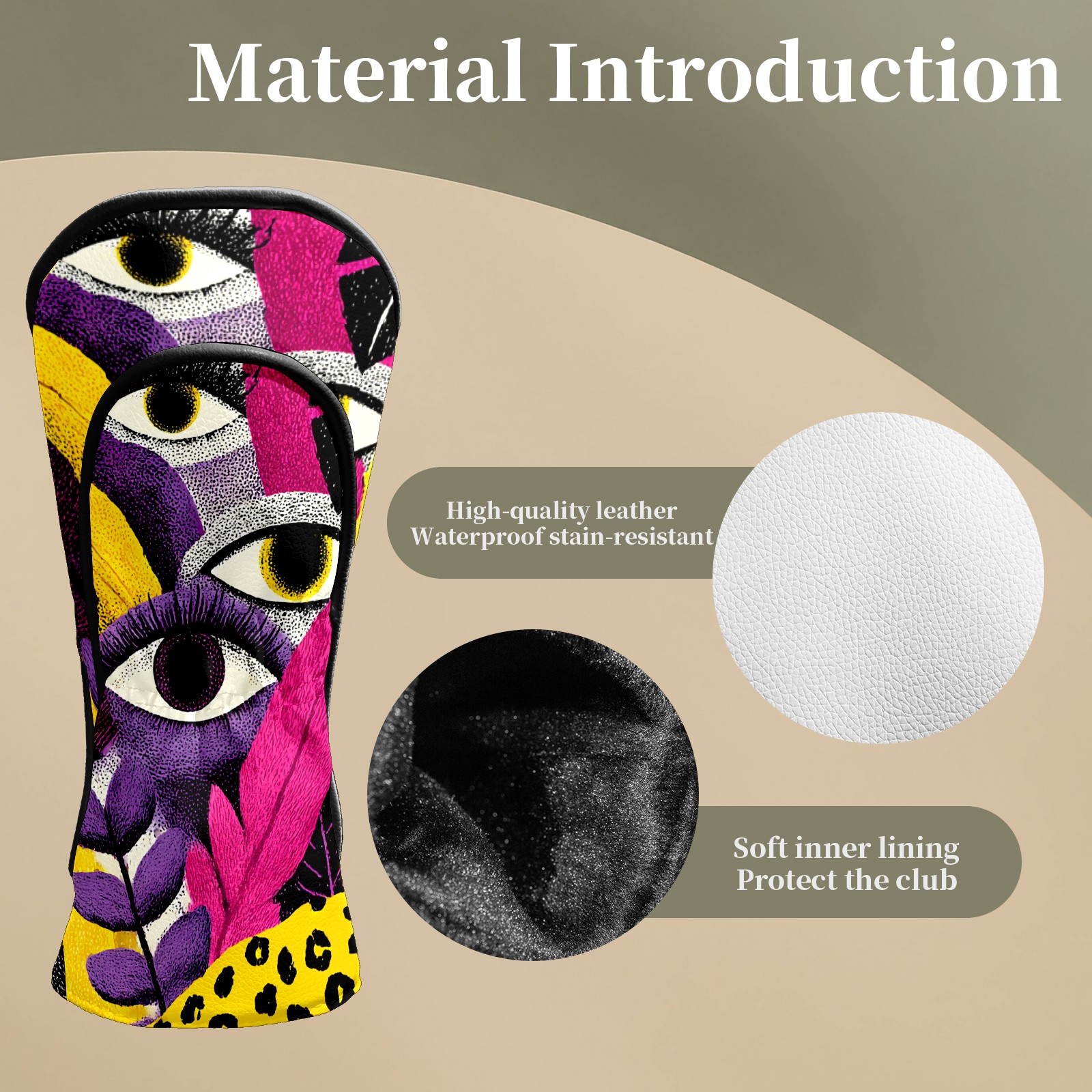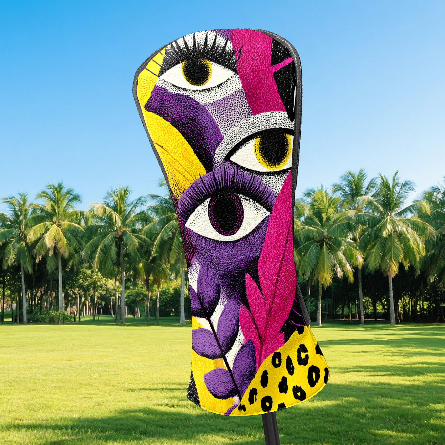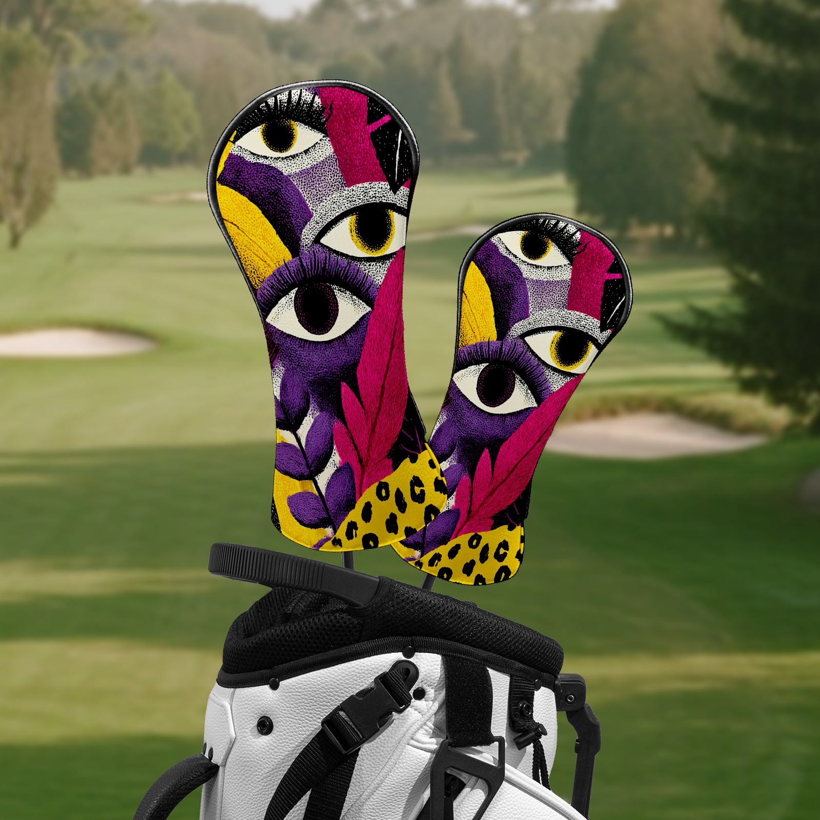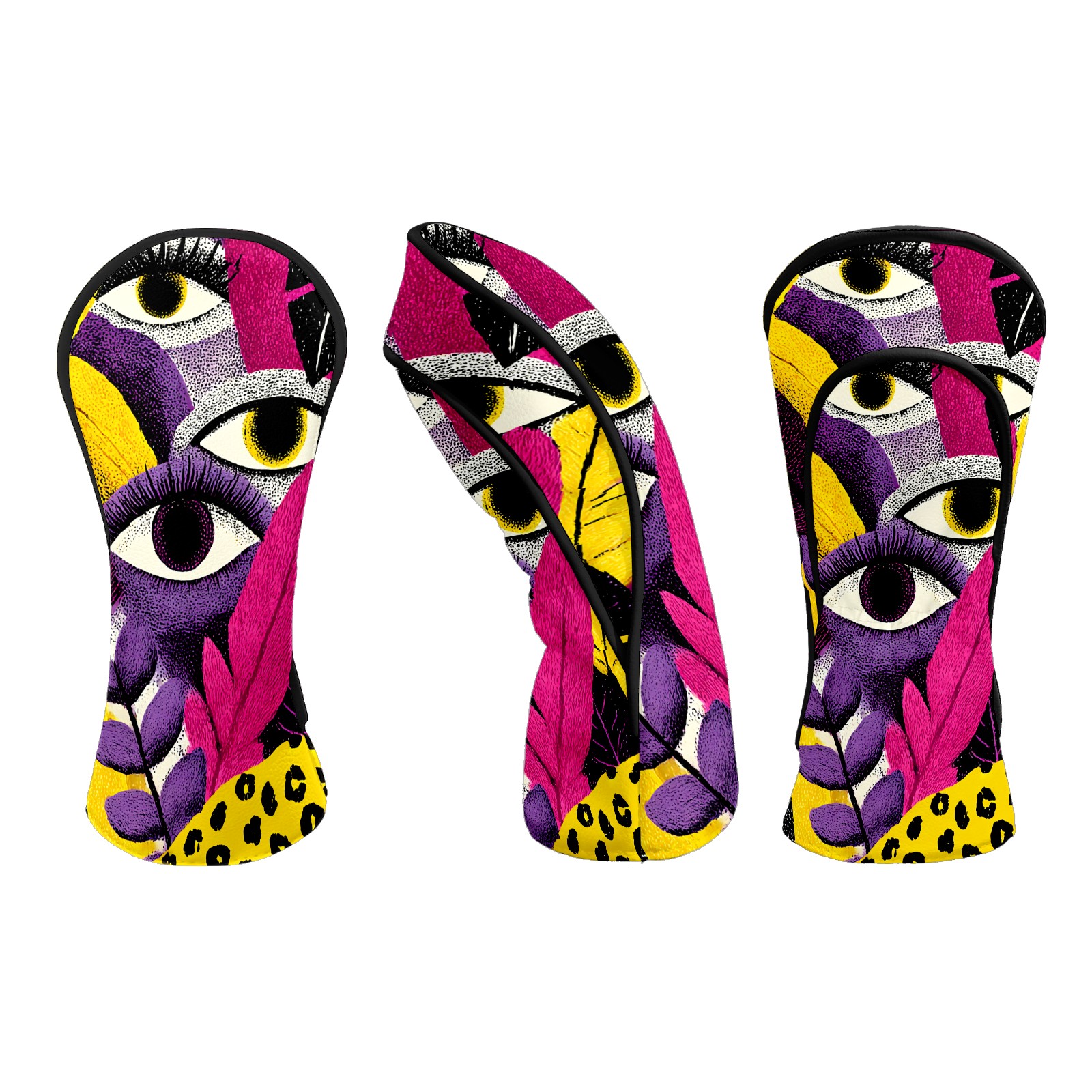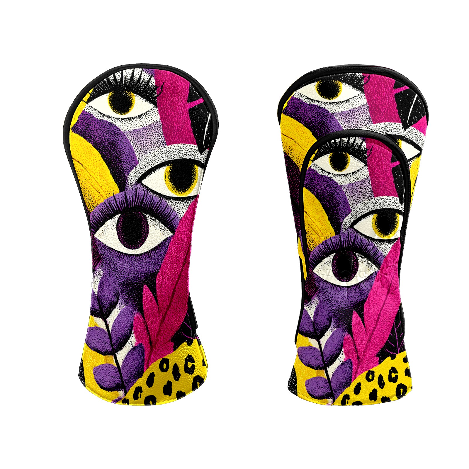 Golf Club Head Covers – Fantasy Eye Multi with Soft Plush Lining, Waterproof PU Leather for Driver & Fairway Woods | Durable, No-Slip Elastic Fit | Novelty Gift for Men & Women
