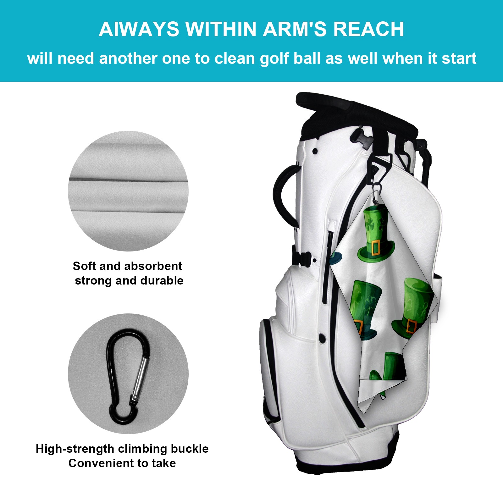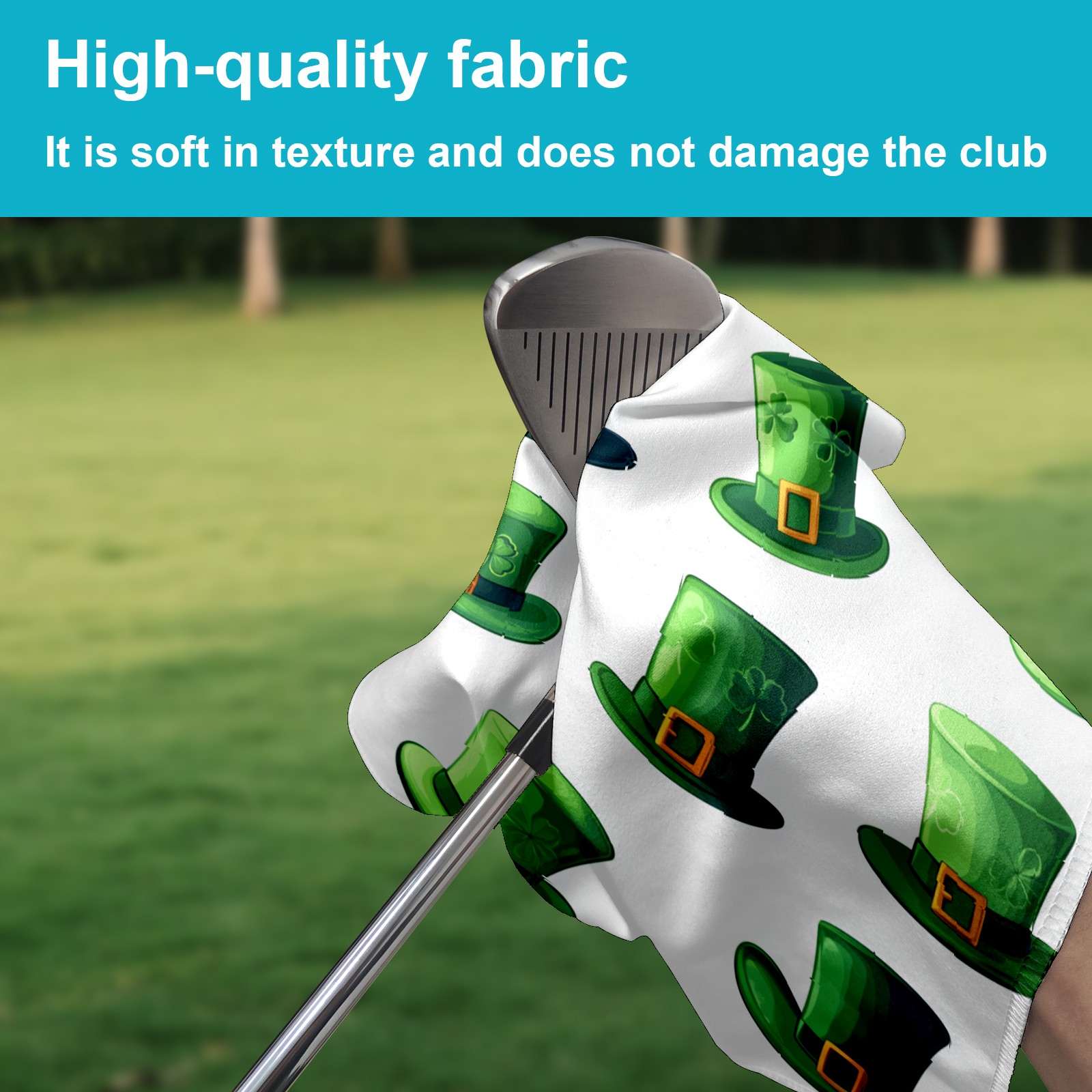 Golf Ball Towel with Absorbent and Fast Drying, Polyester Small Golf Ball Towels,for Cleaning Club Heads and Balls Green Magic Hat Pattern