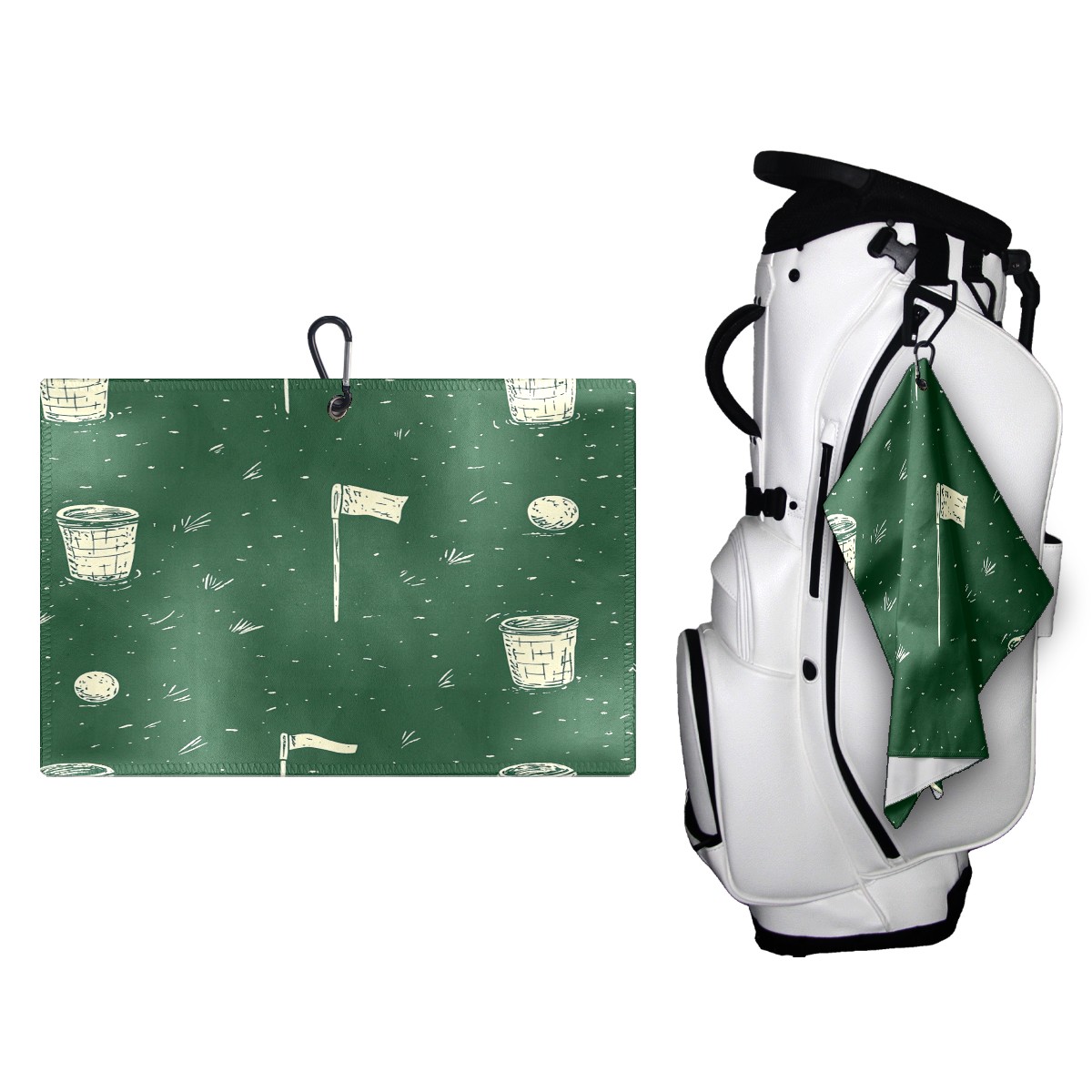 Golf Ball Towel with Absorbent and Fast Drying, Polyester Small Golf Ball Towels,for Cleaning Club Heads and Balls Golf Elements Pattern