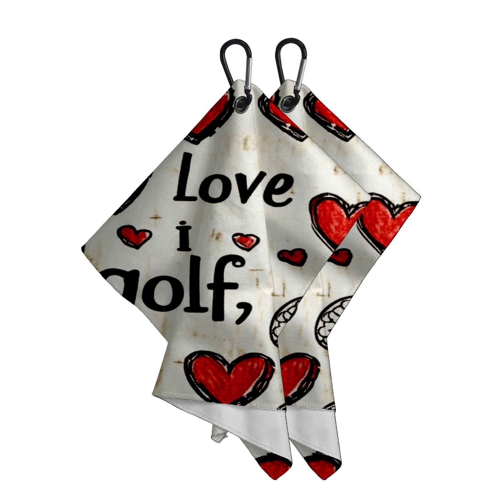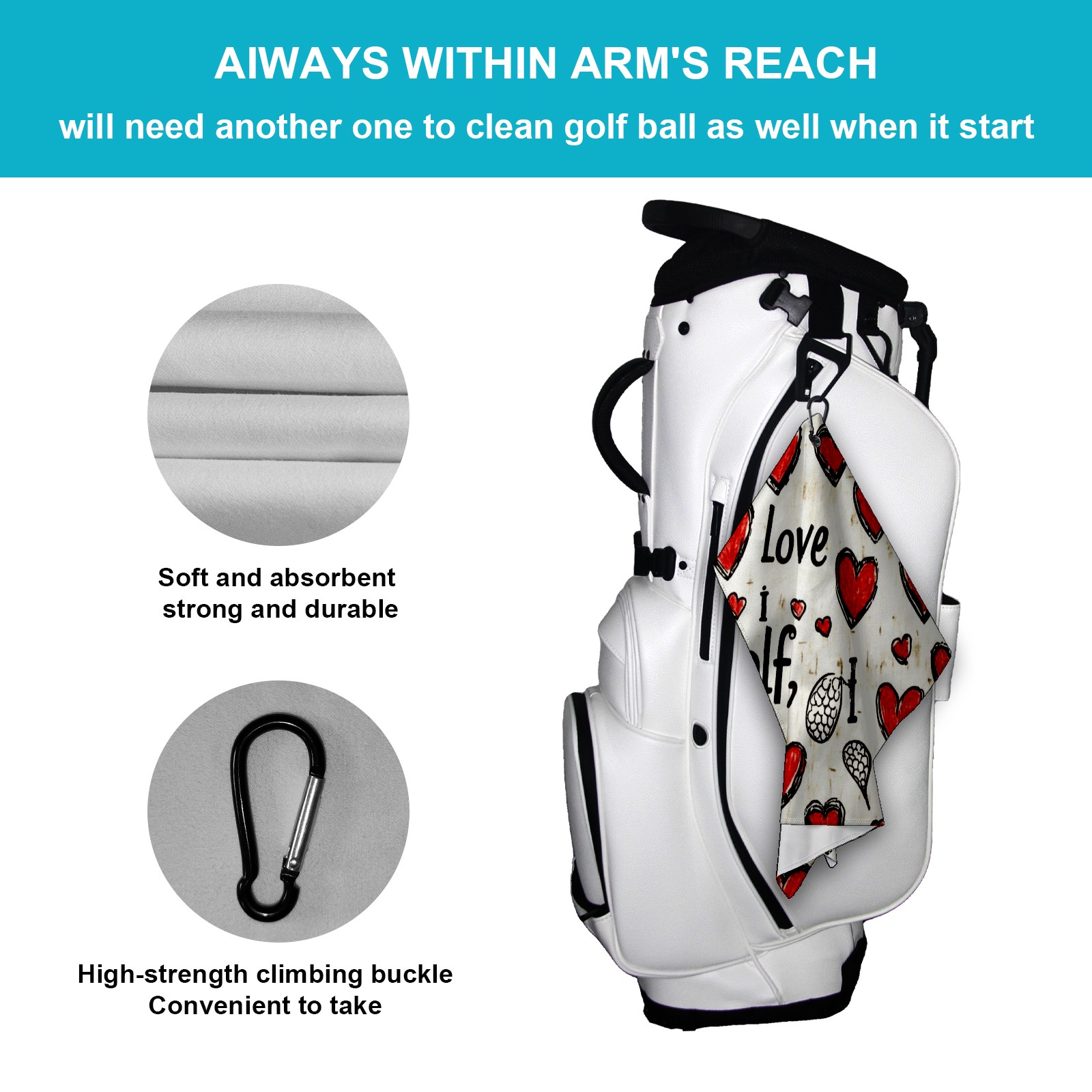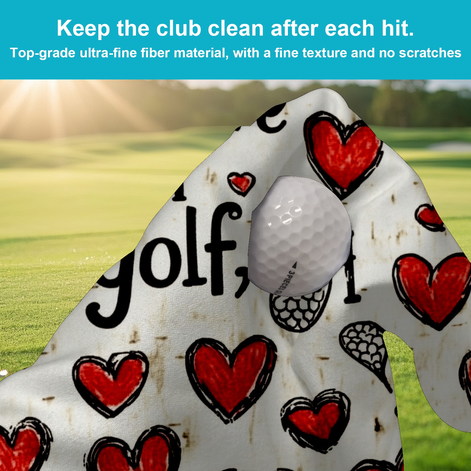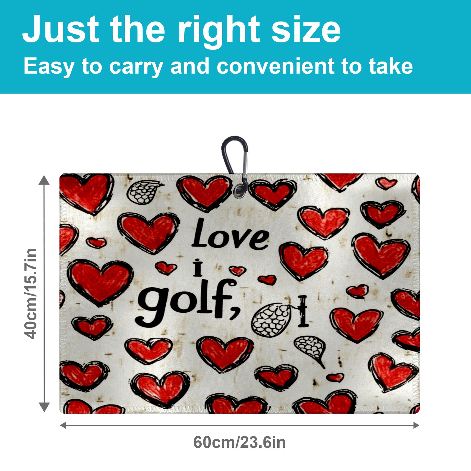 Golf Ball Towel with Absorbent and Fast Drying, Polyester Small Golf Ball Towels,for Cleaning Club Heads and Balls Red Hearts Pattern