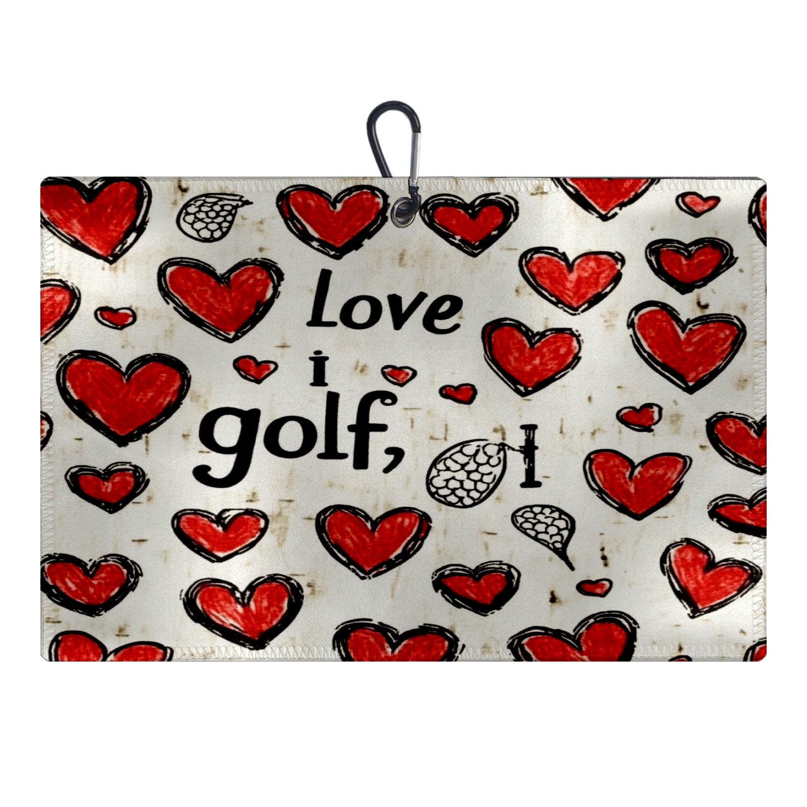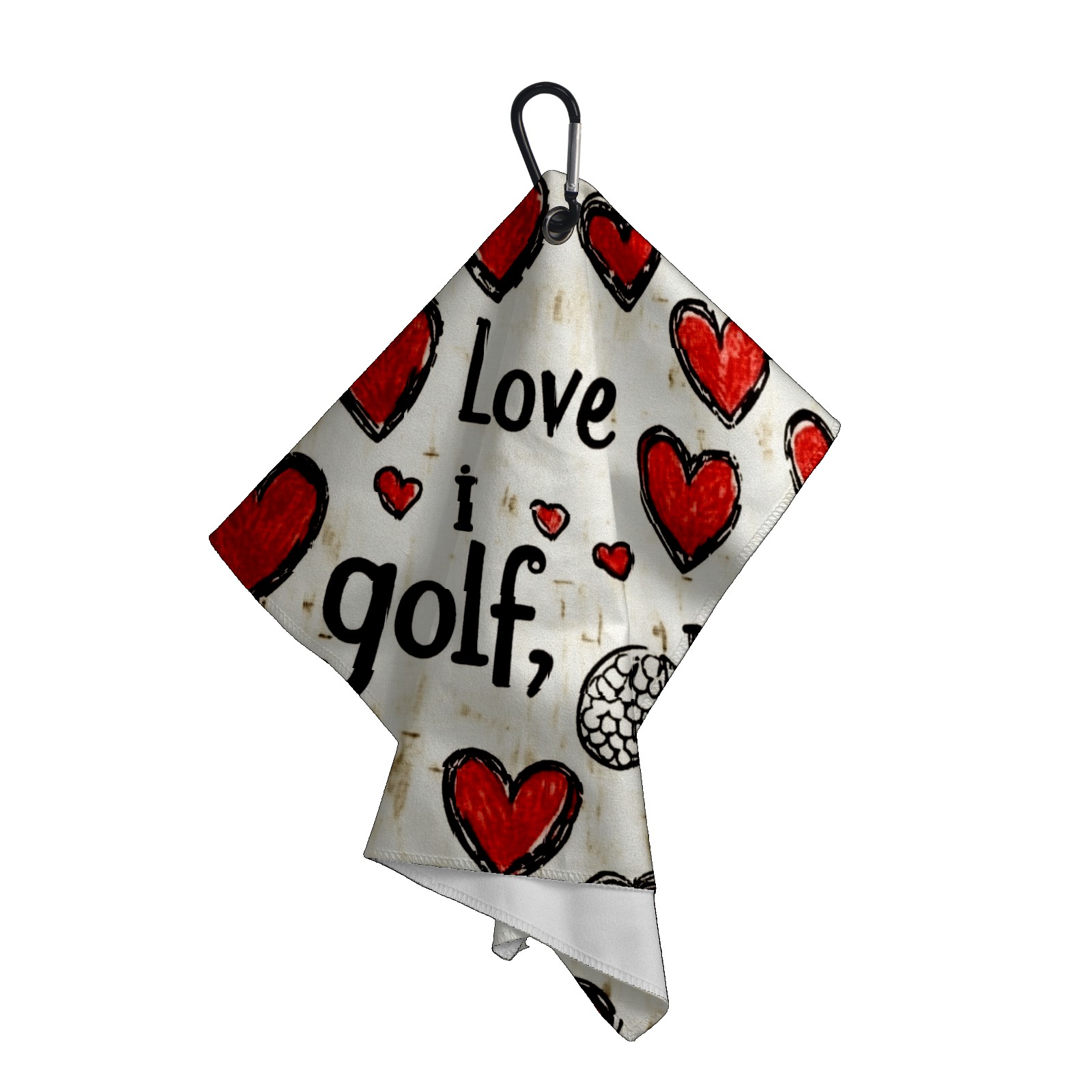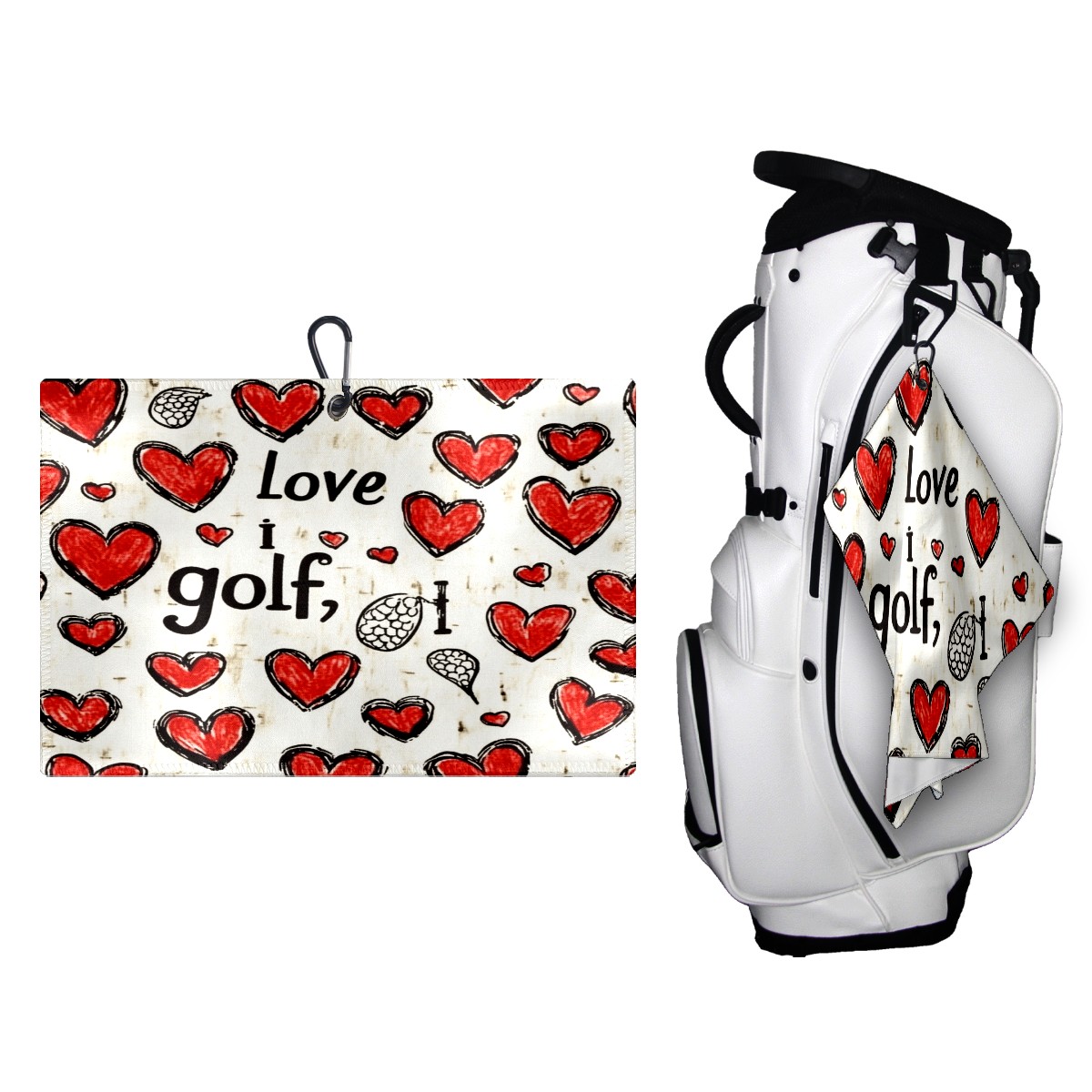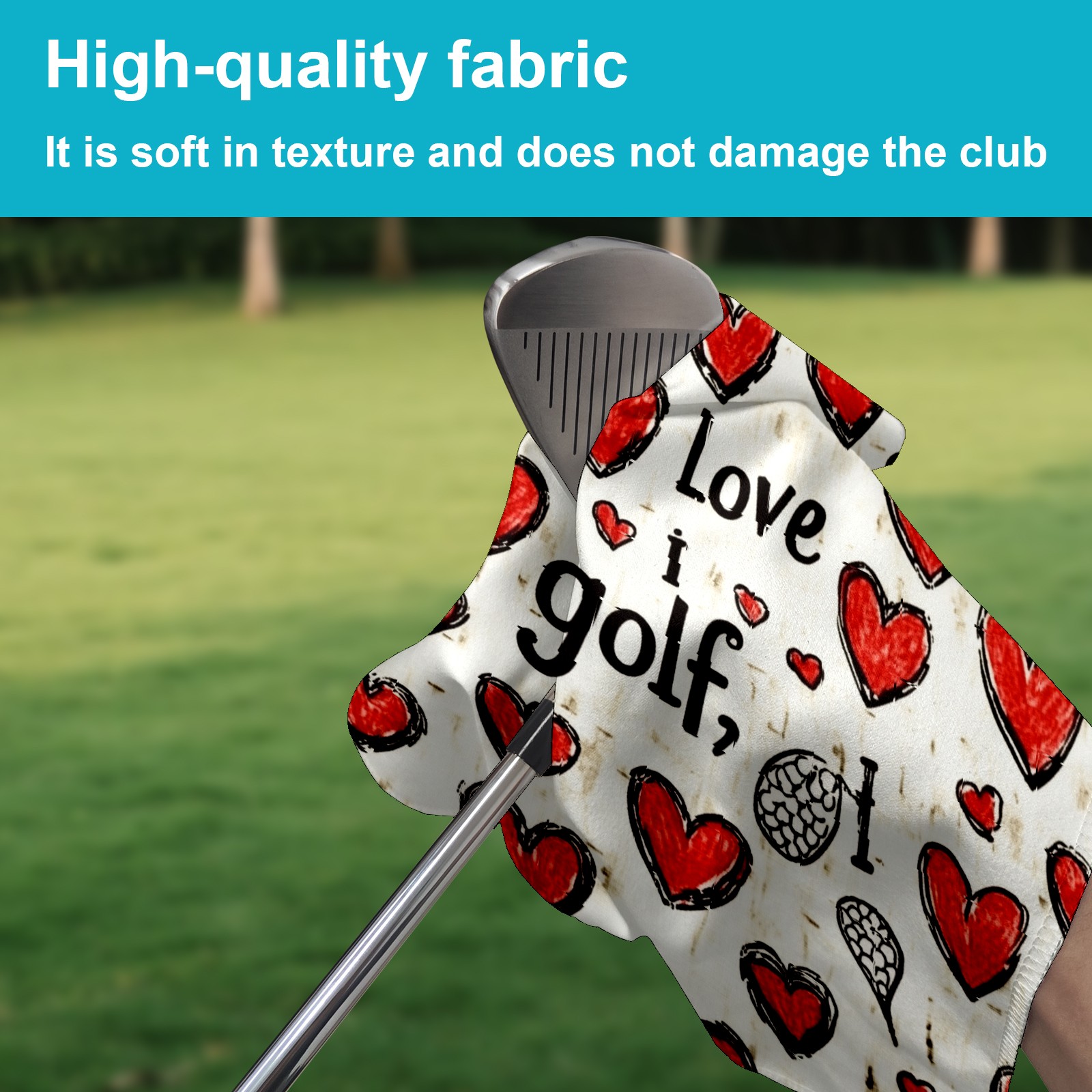 Golf Ball Towel with Absorbent and Fast Drying, Polyester Small Golf Ball Towels,for Cleaning Club Heads and Balls Red Hearts Pattern