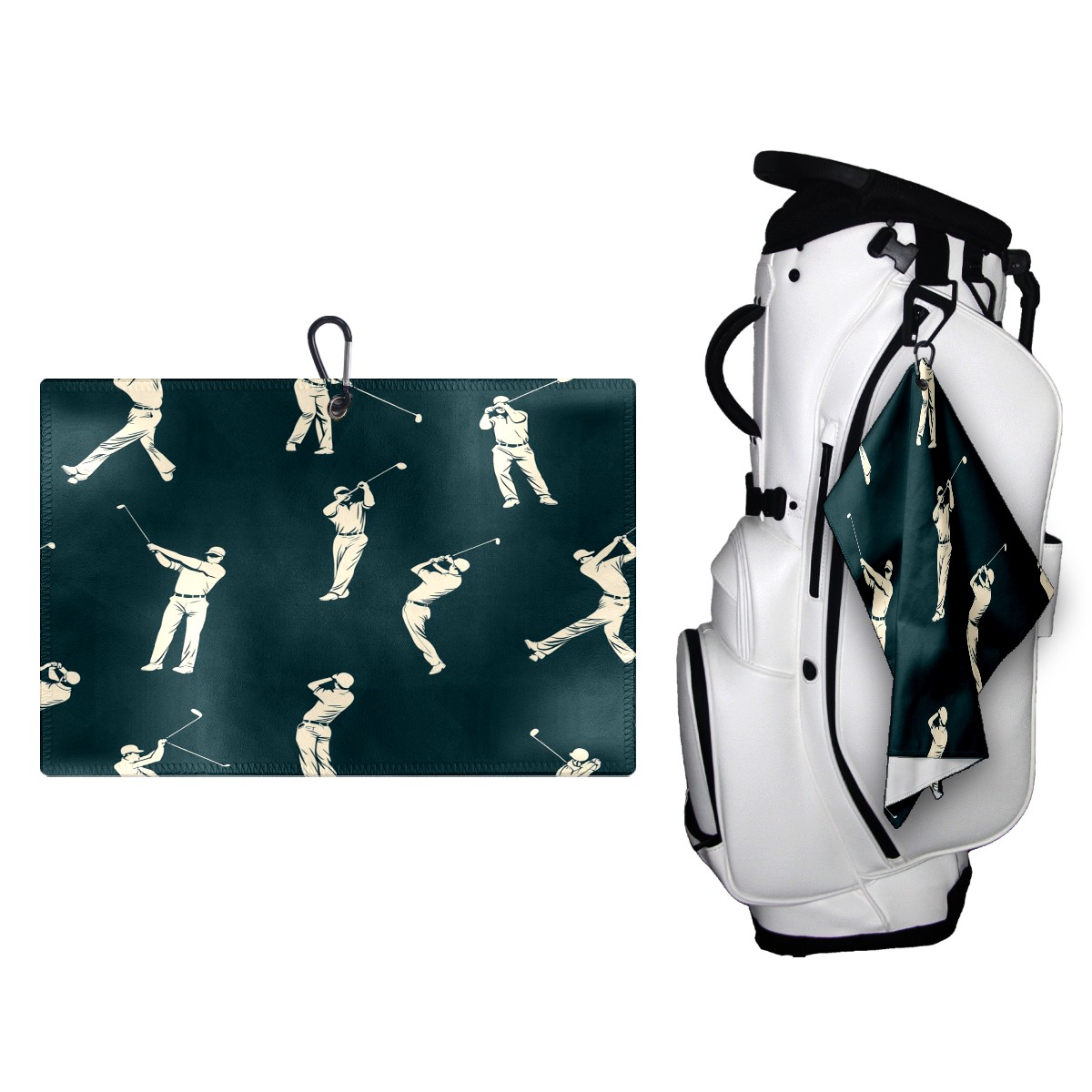 Golf Ball Towel with Absorbent and Fast Drying, Polyester Small Golf Ball Towels,for Cleaning Club Heads and Balls Green Golfers Poses Pattern