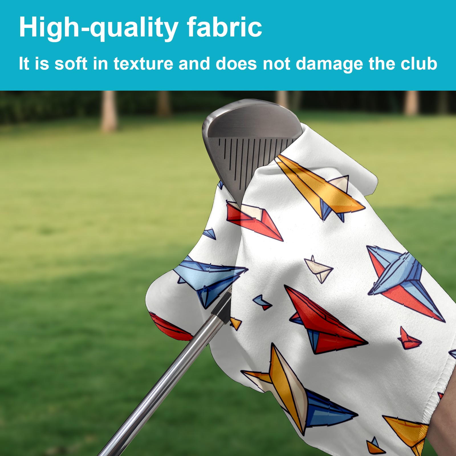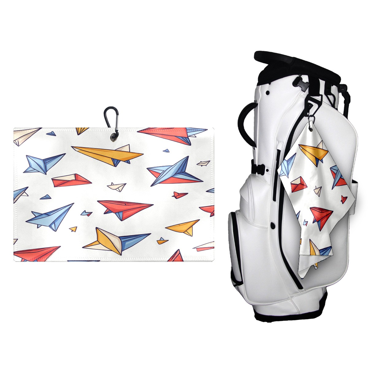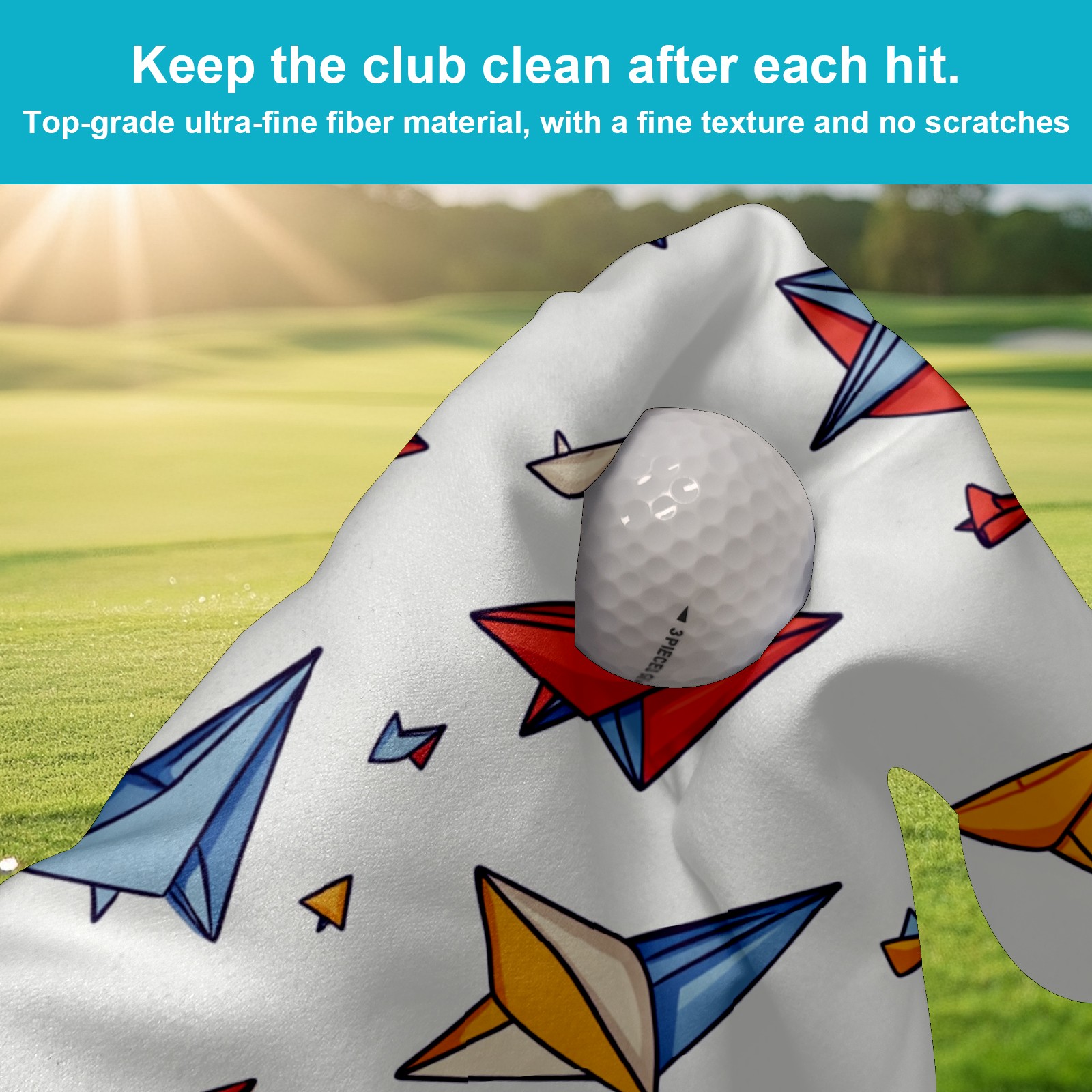 Golf Ball Towel with Absorbent and Fast Drying, Polyester Small Golf Ball Towels,for Cleaning Club Heads and Balls Colored Paper Airplane Pattern